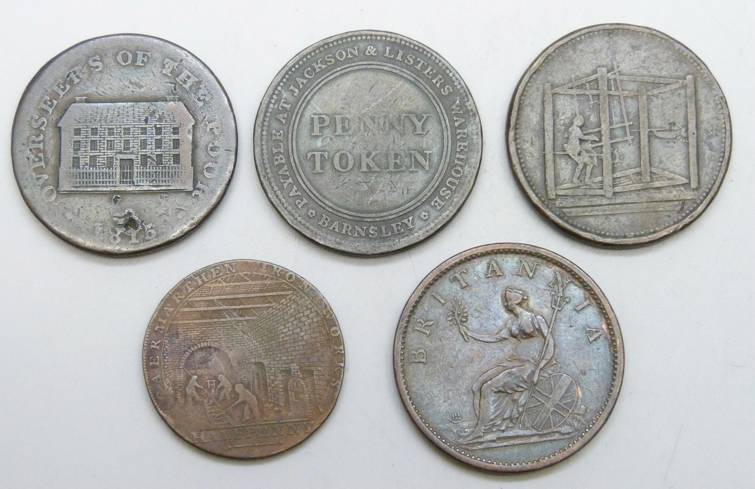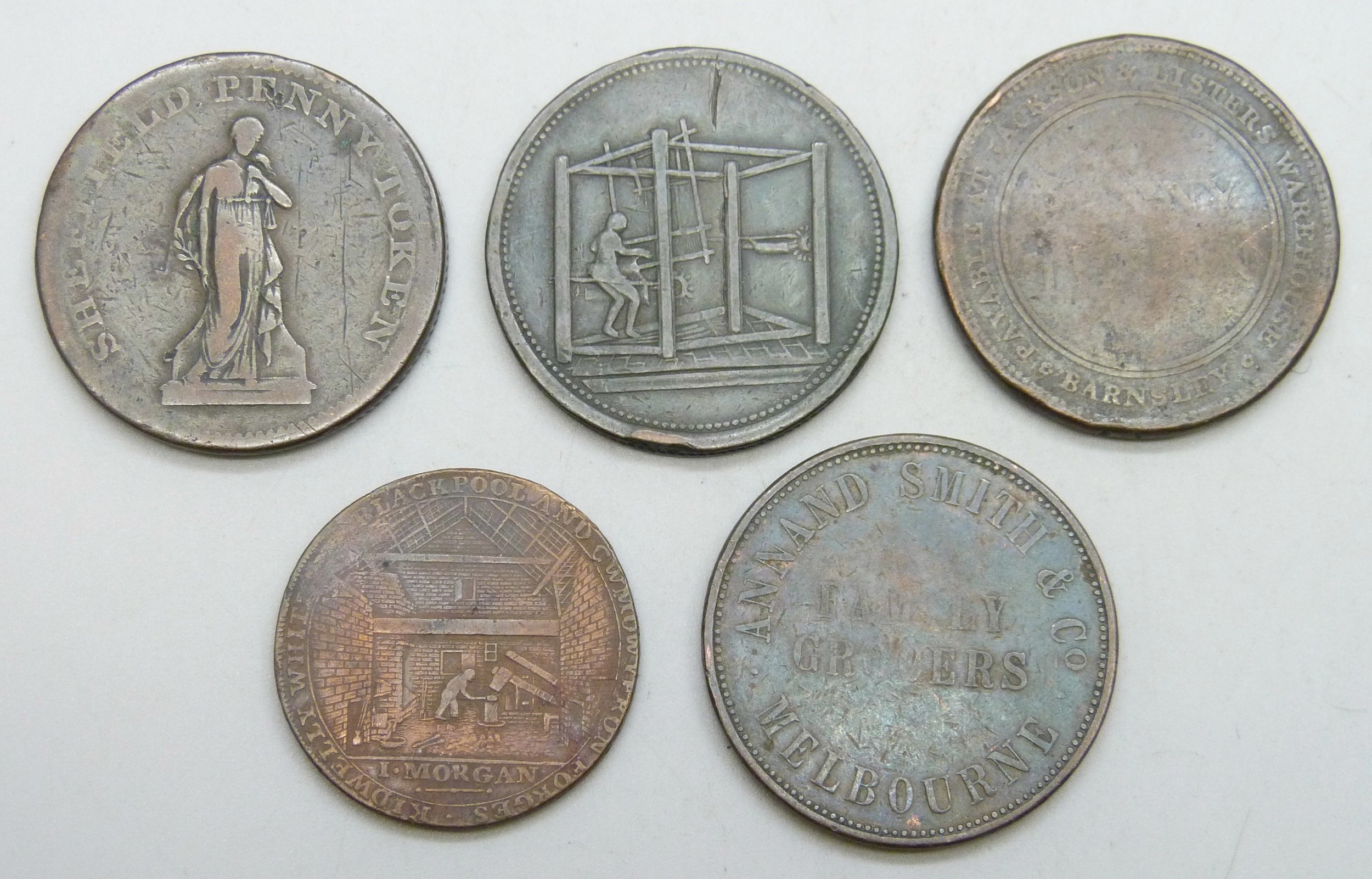 Five 19th century tokens
