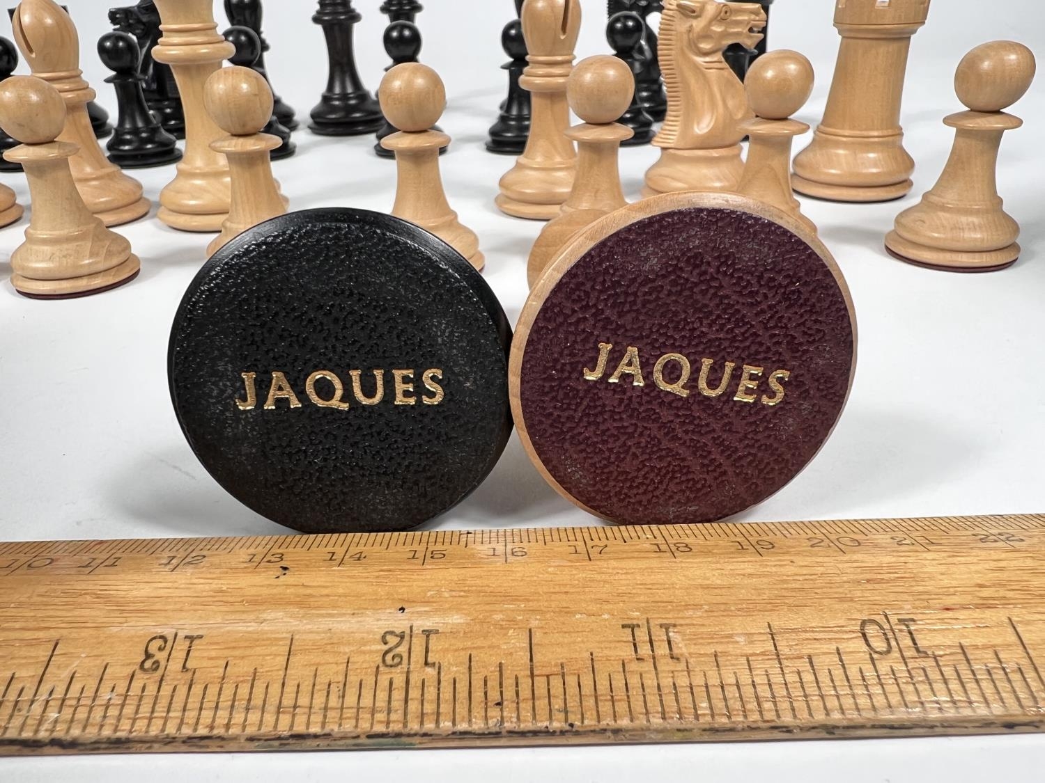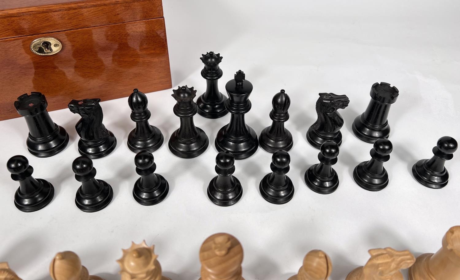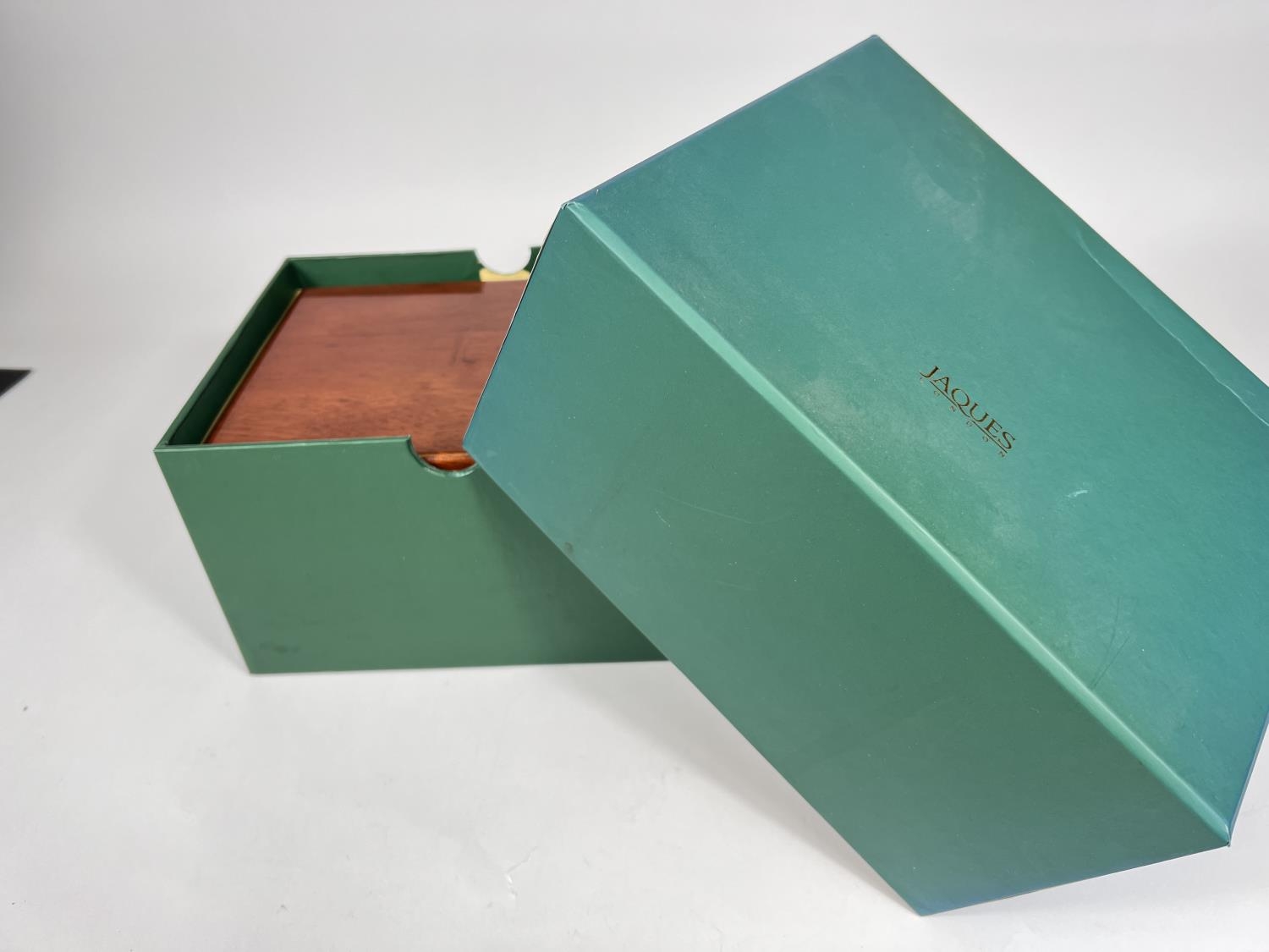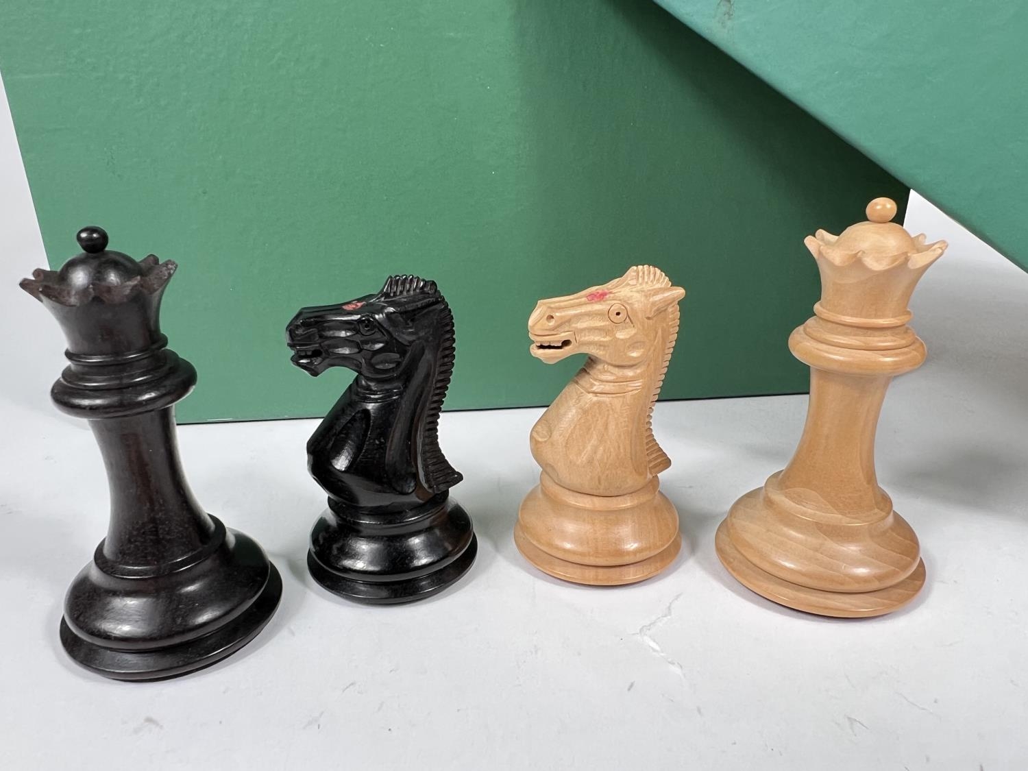 A modern Jaques Staunton chess set, in storage box with certificate, weighted bases, King height 9cm; Chess clock and boxed Mahjong set