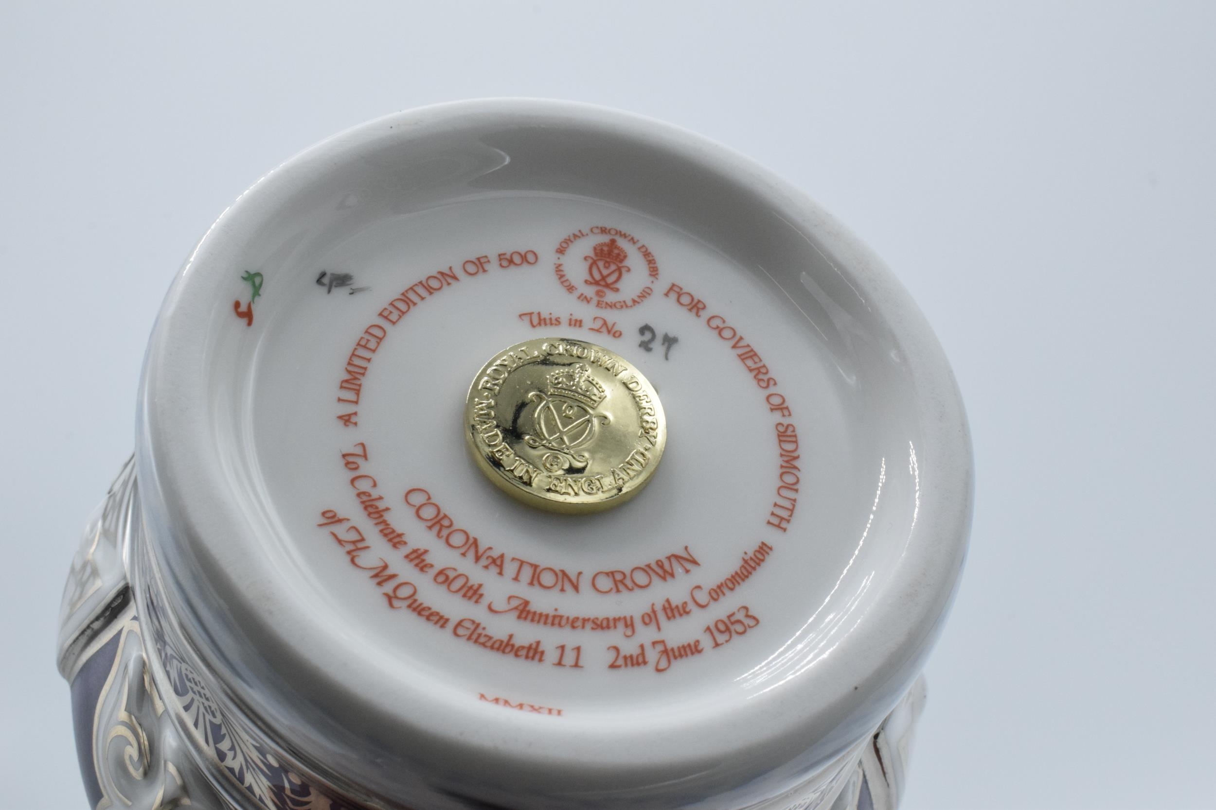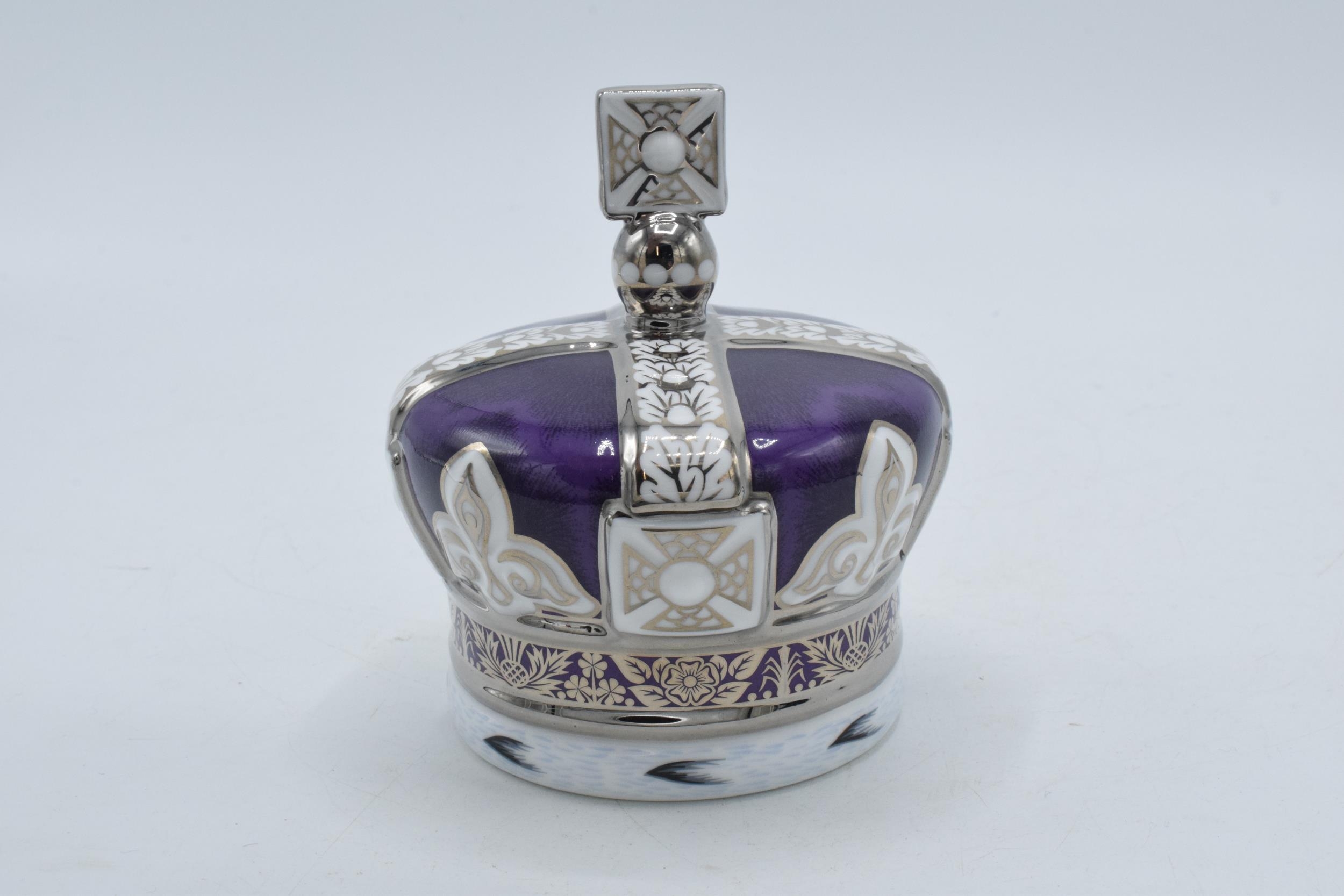 Royal Crown Derby paperweight, Coronation Crown, number 27 of a limited edition of 500 commissioned by Goviers of Sidmouth to commemorate the 60th Anniversary of the Coronation of HM Queen Elizabeth II 1953 - 2013, gold stopper, certificate, boxed.