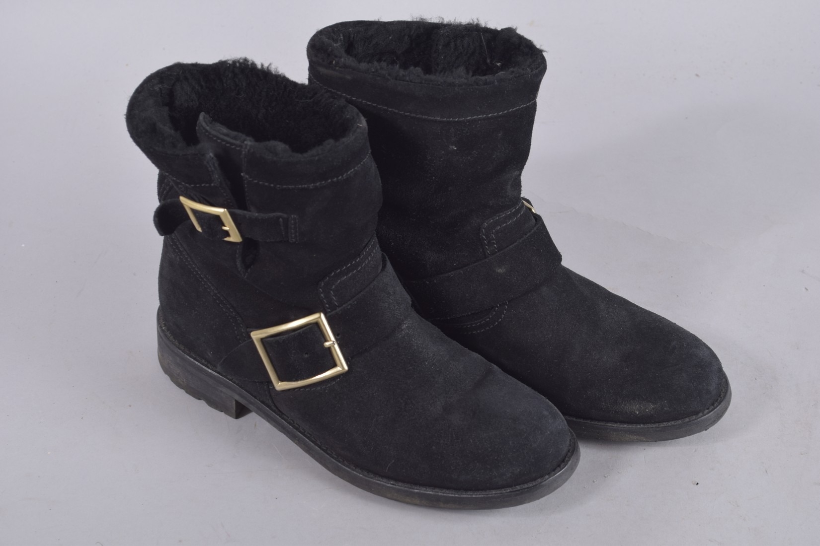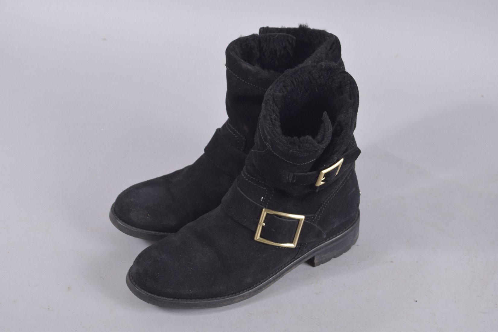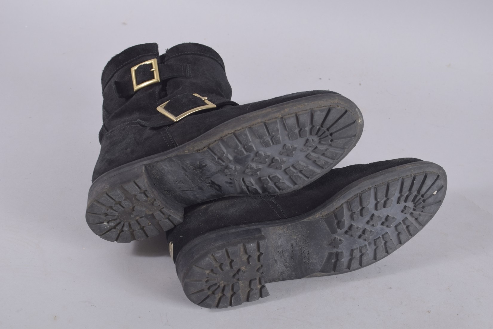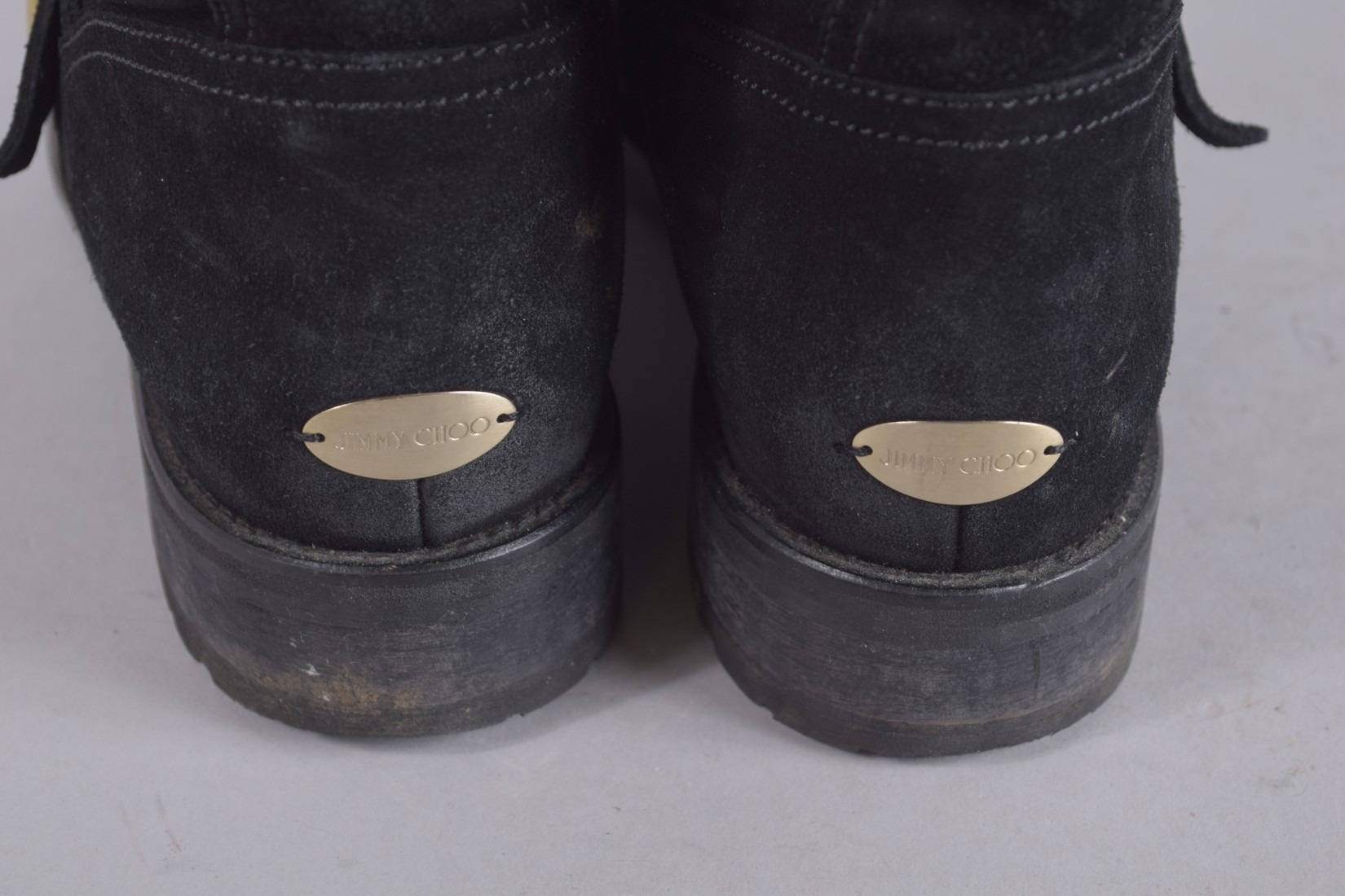 A PAIR OF JIMMY CHOO BLACK ANKLE BOOTS, size 37. Signs of wear.