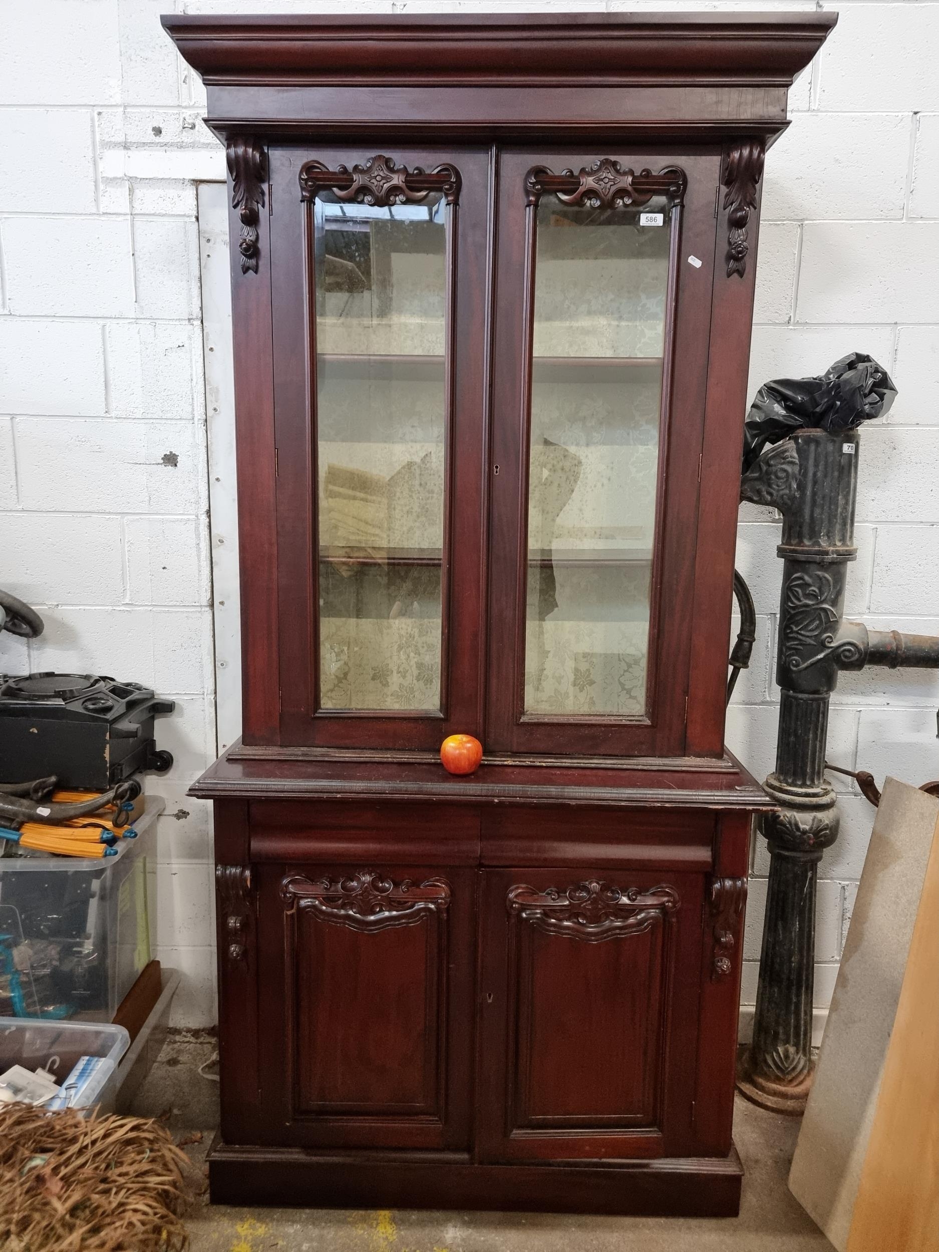 Star Lot : Super Victorian mahogany double door glazed bookcase. Super clean example. In 2 parts for easy transport. Really nice piece.