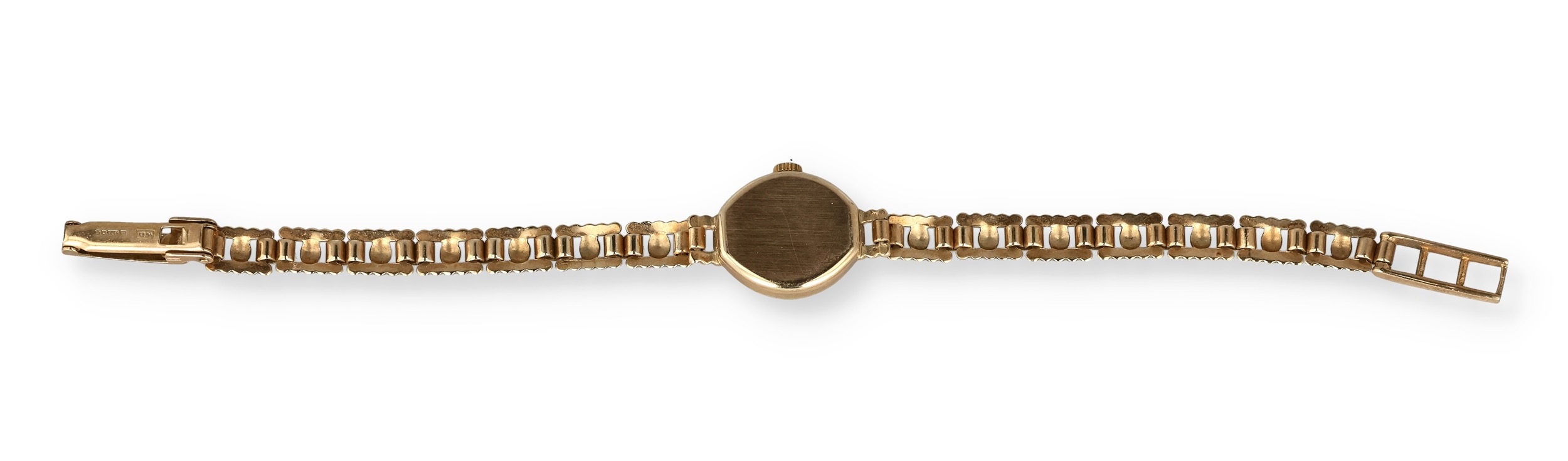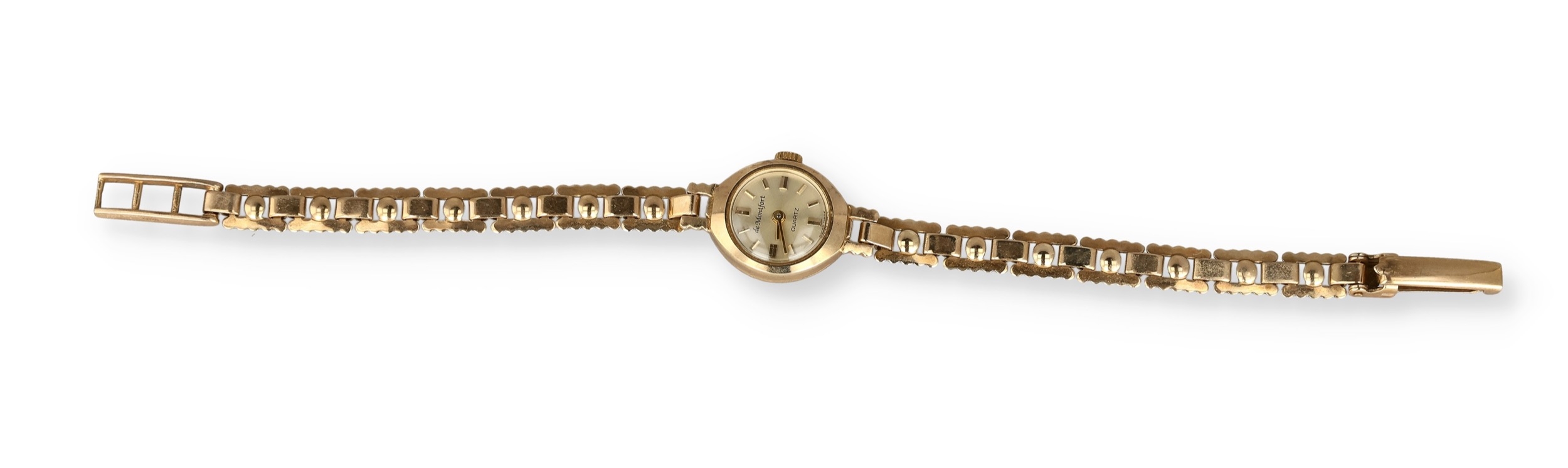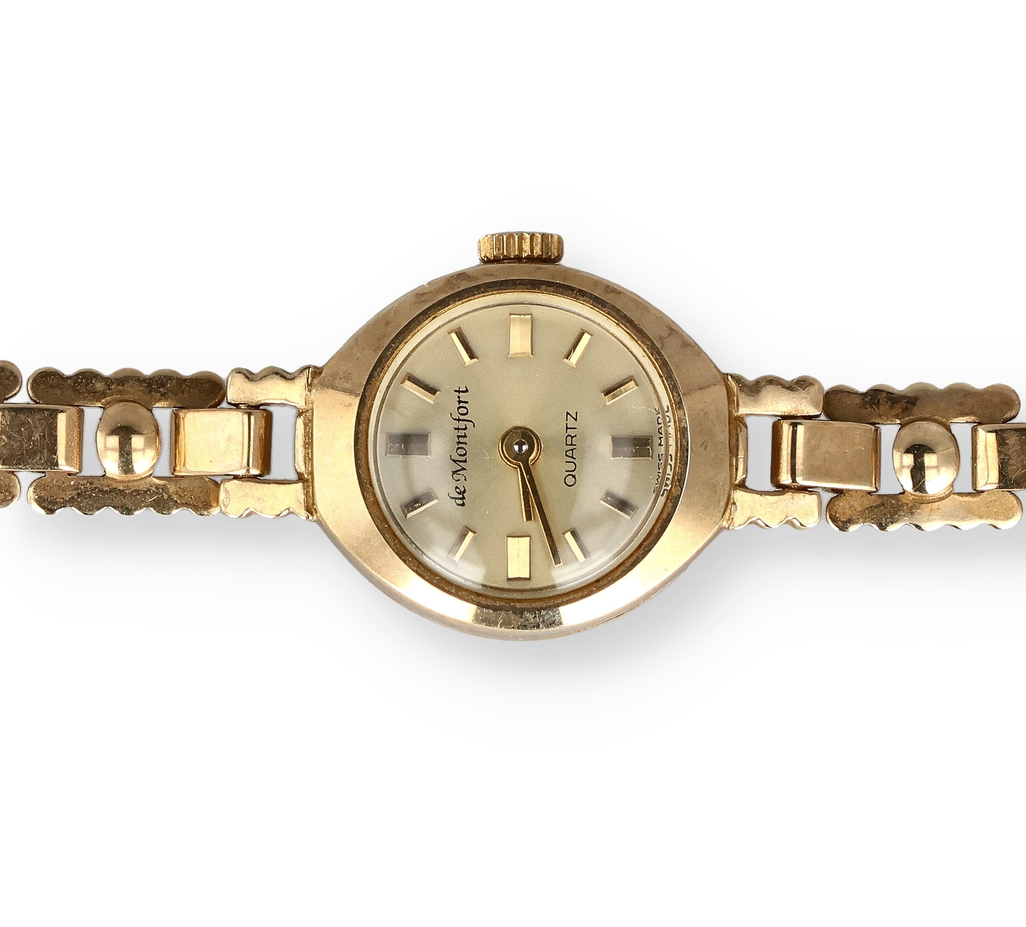A LADIES 9CT GOLD DE MONTFORT WRISTWATCH AND BRACELET