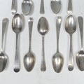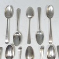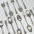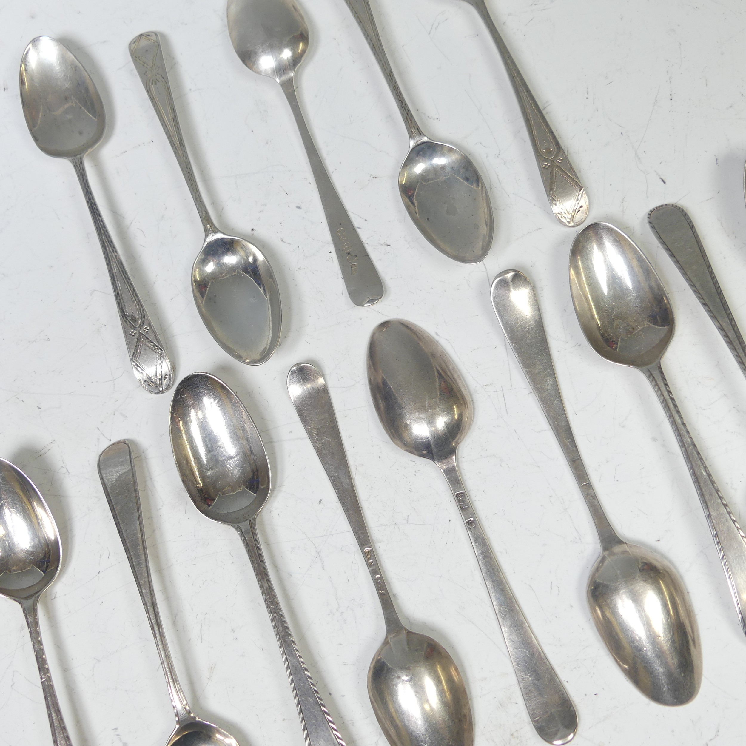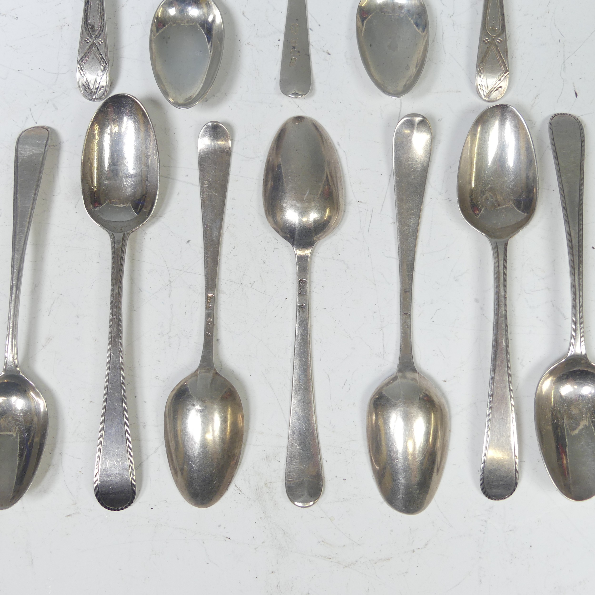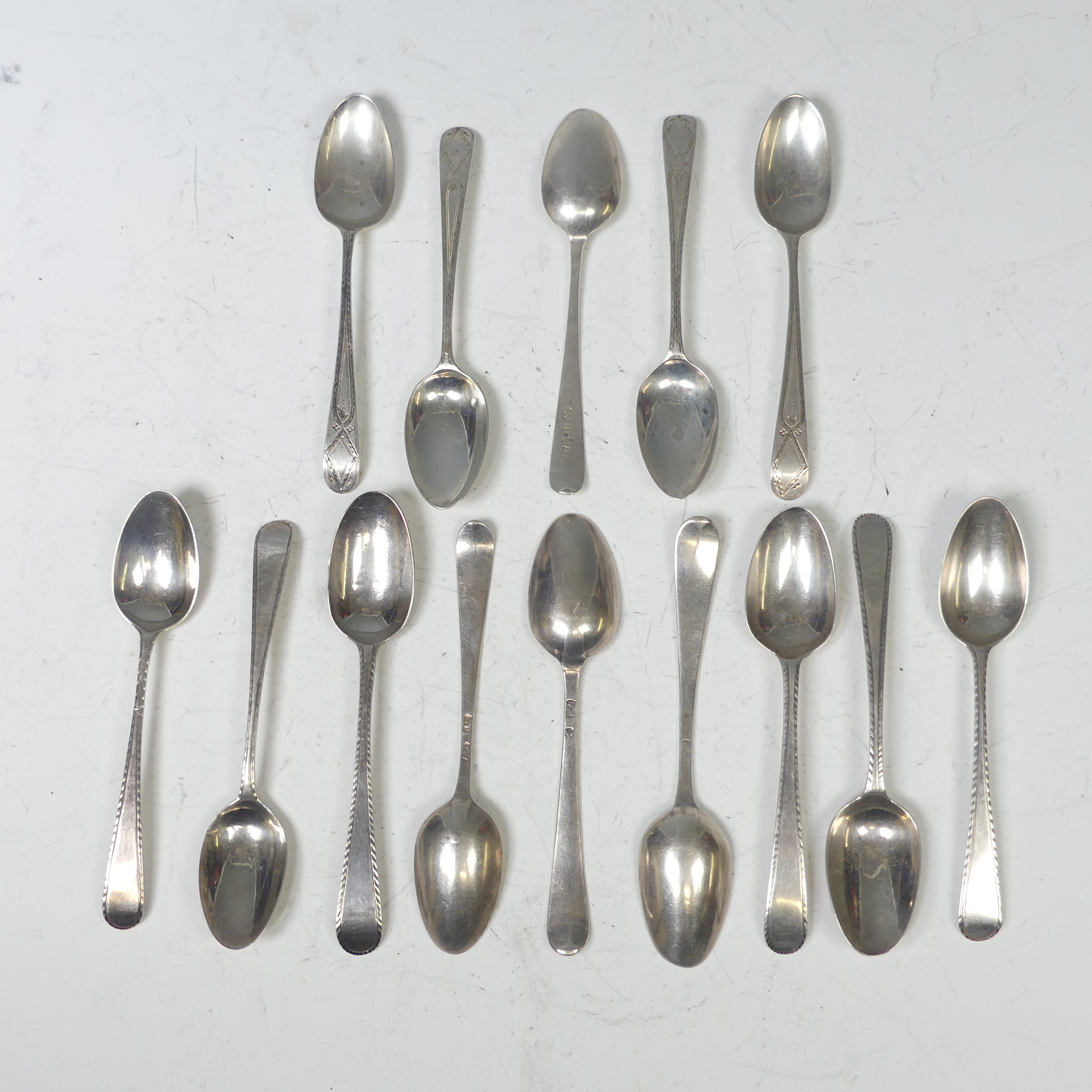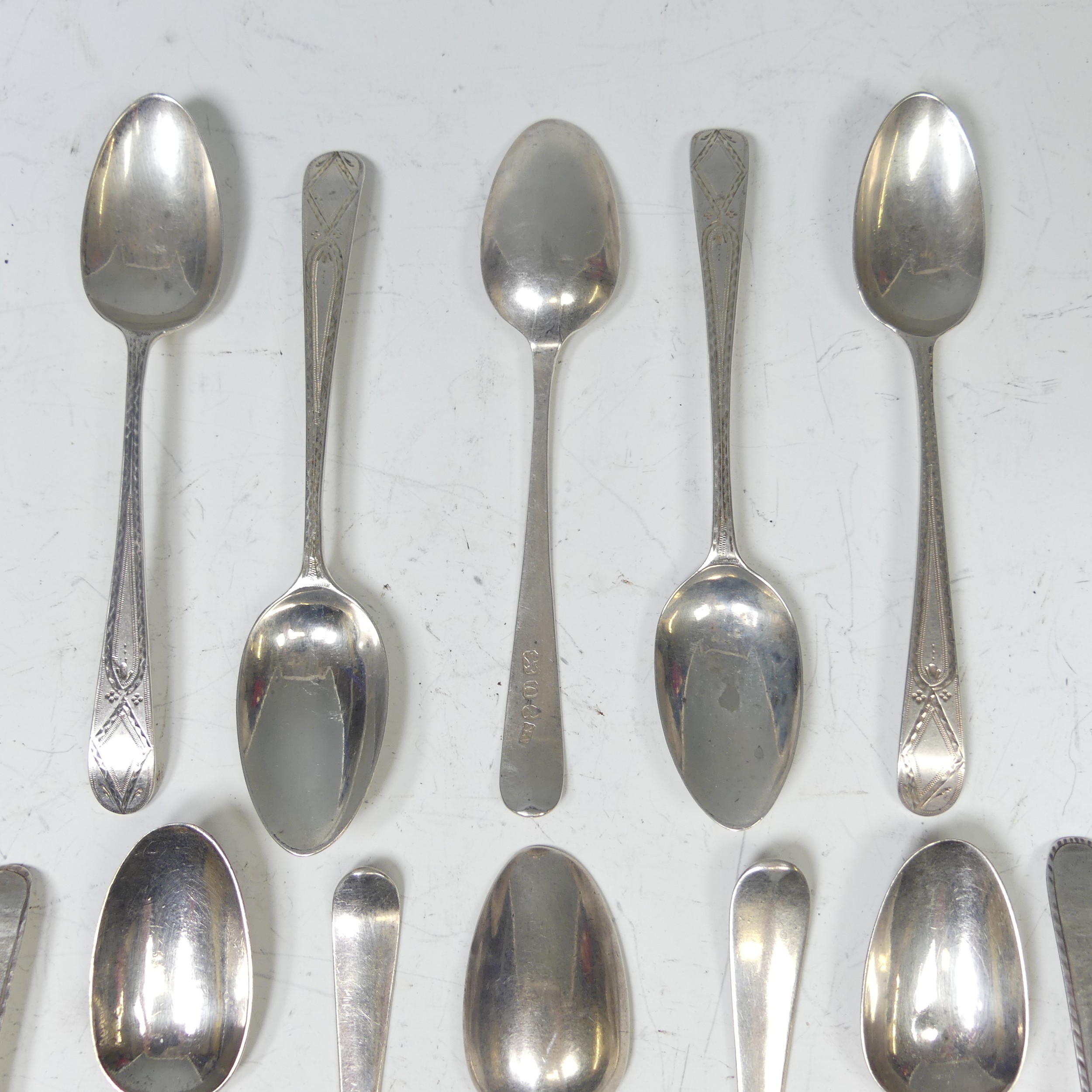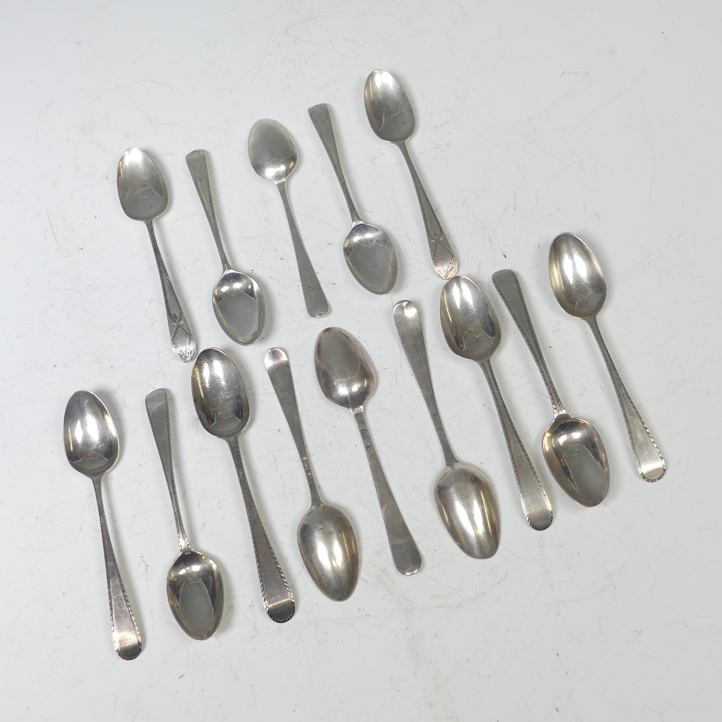 A set of six George III silver Teaspoons, by Hester Bateman, c.1770's, Old English pattern with bright cut decoration, 12cm long, together with a set of five silver teaspoons by Stephen Adams II, London 1788 and three others various, approx. total weight 5.3ozt (a lot)