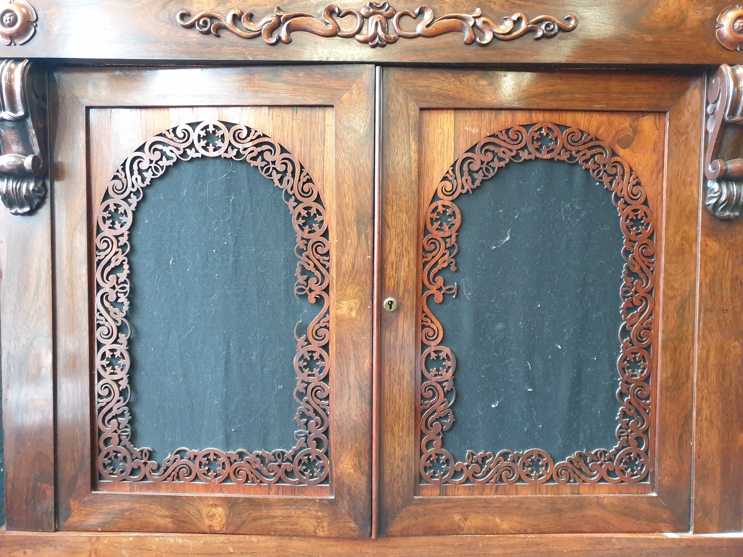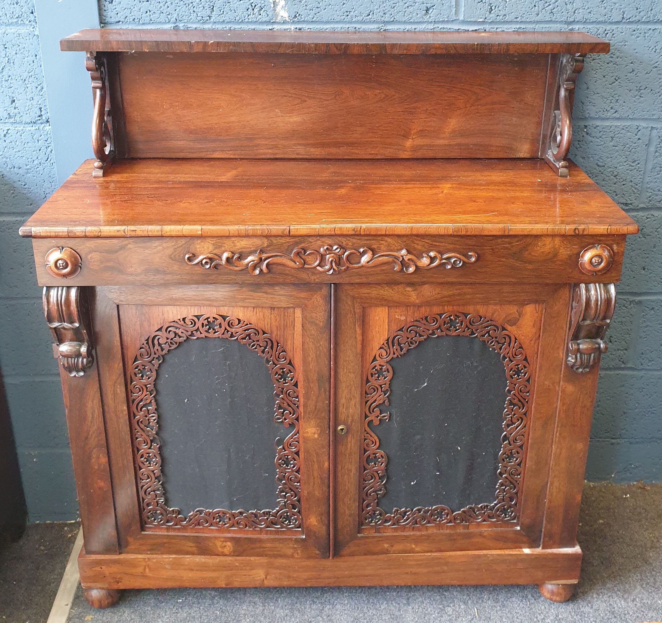 Victorian Rosewood Sideboard with Carved Detail, H:95/125 x W:112 x D:44cm