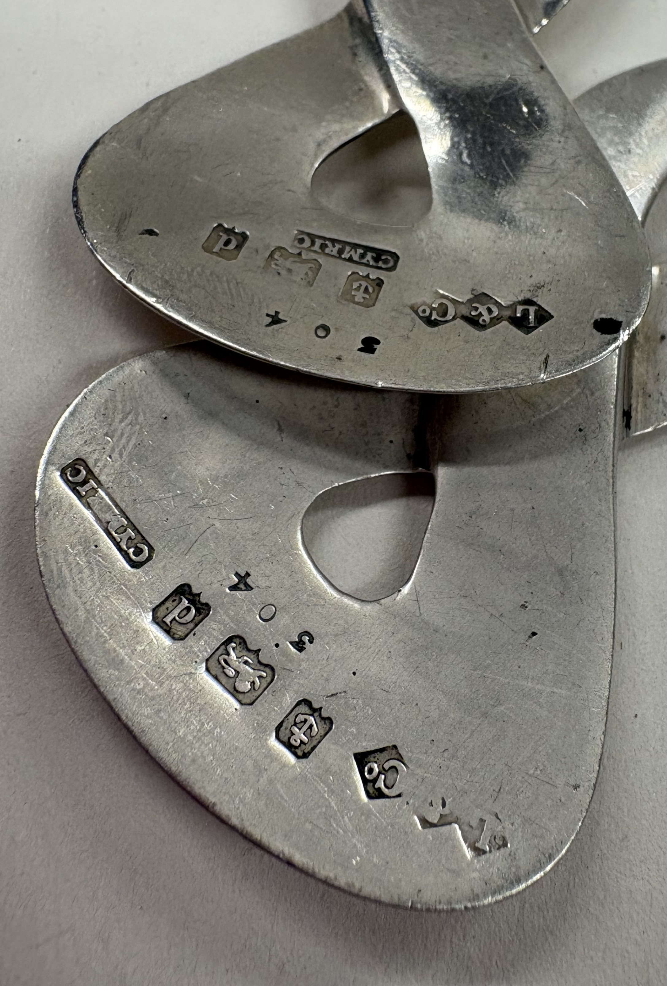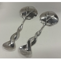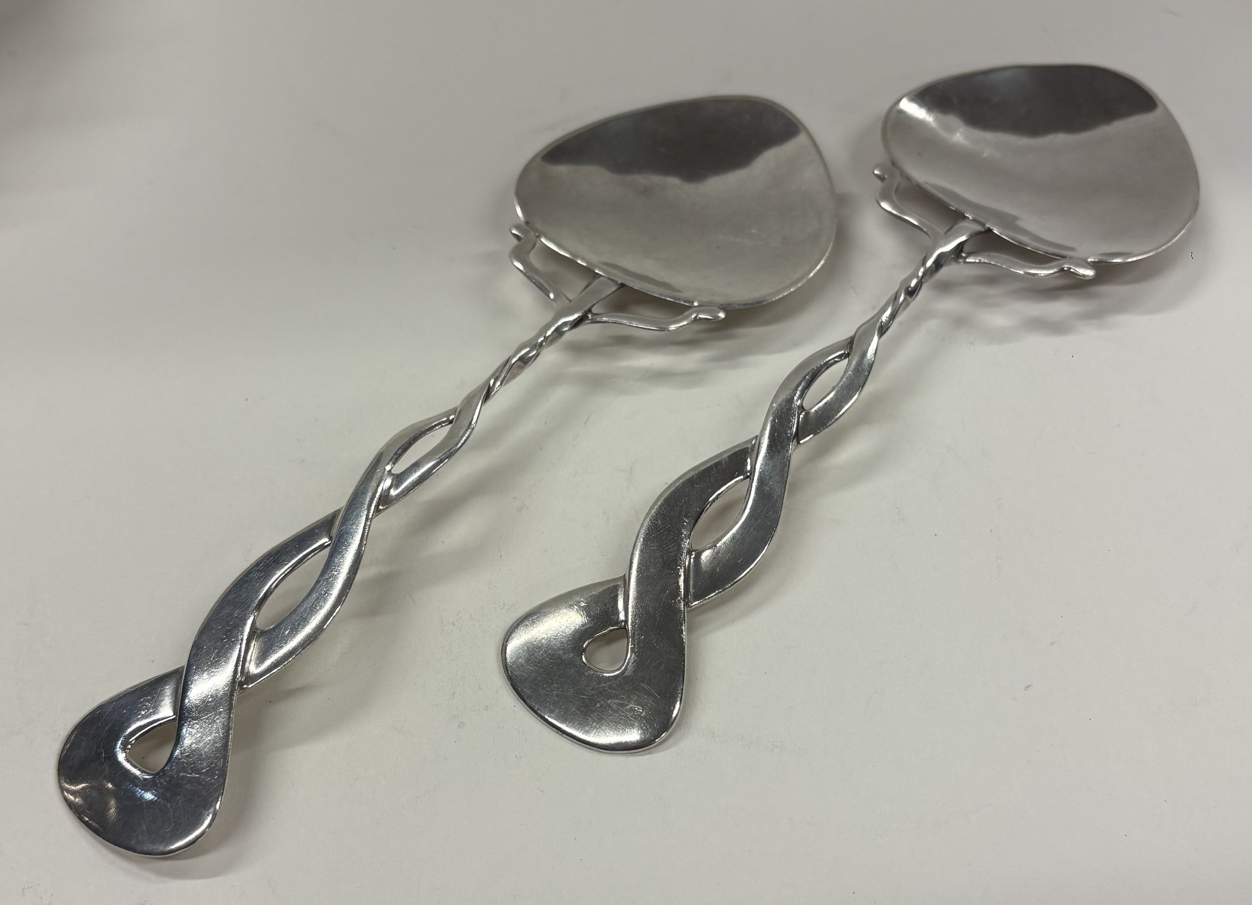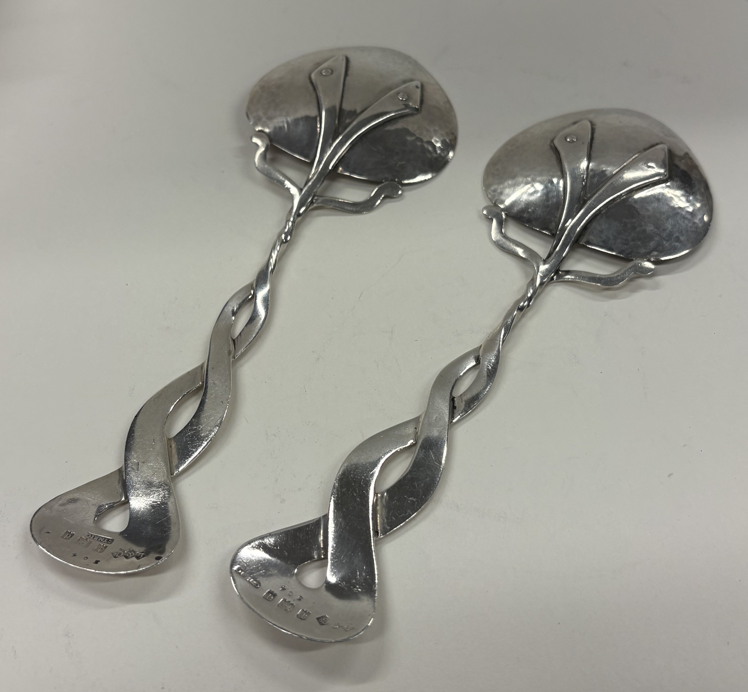 A rare pair of Art Nouveau silver servers, bearing Cymric marks. Birmingham 1903. By Liberty & Co. Approx. 140 grams. Est. £800 - £1200.