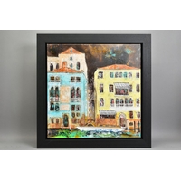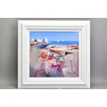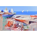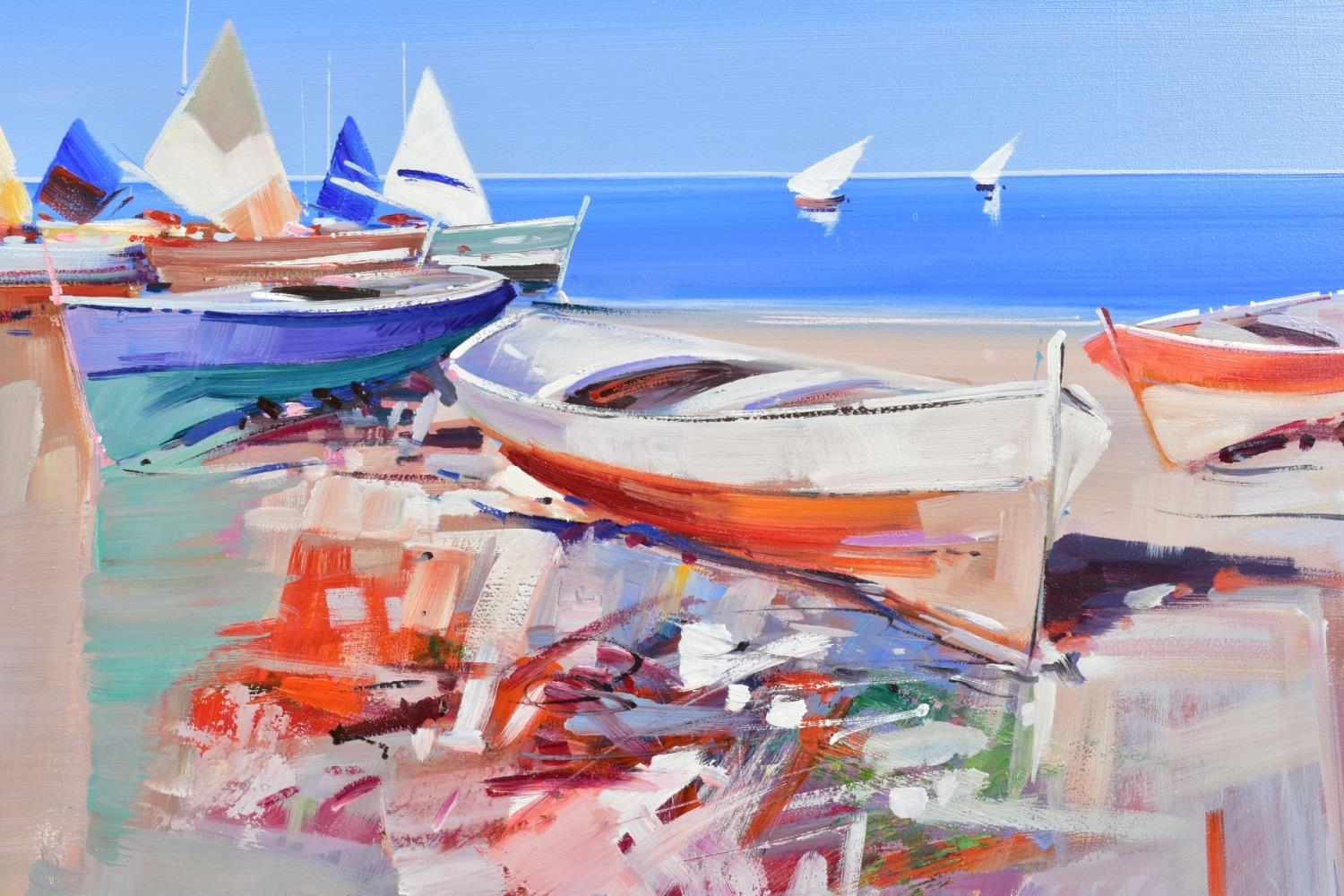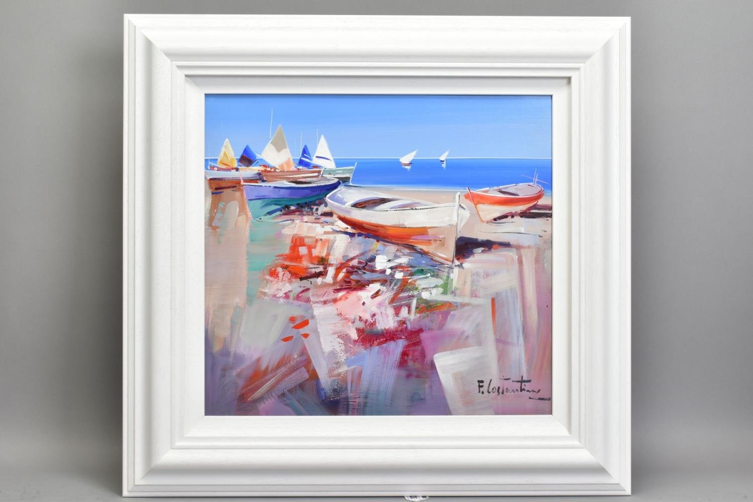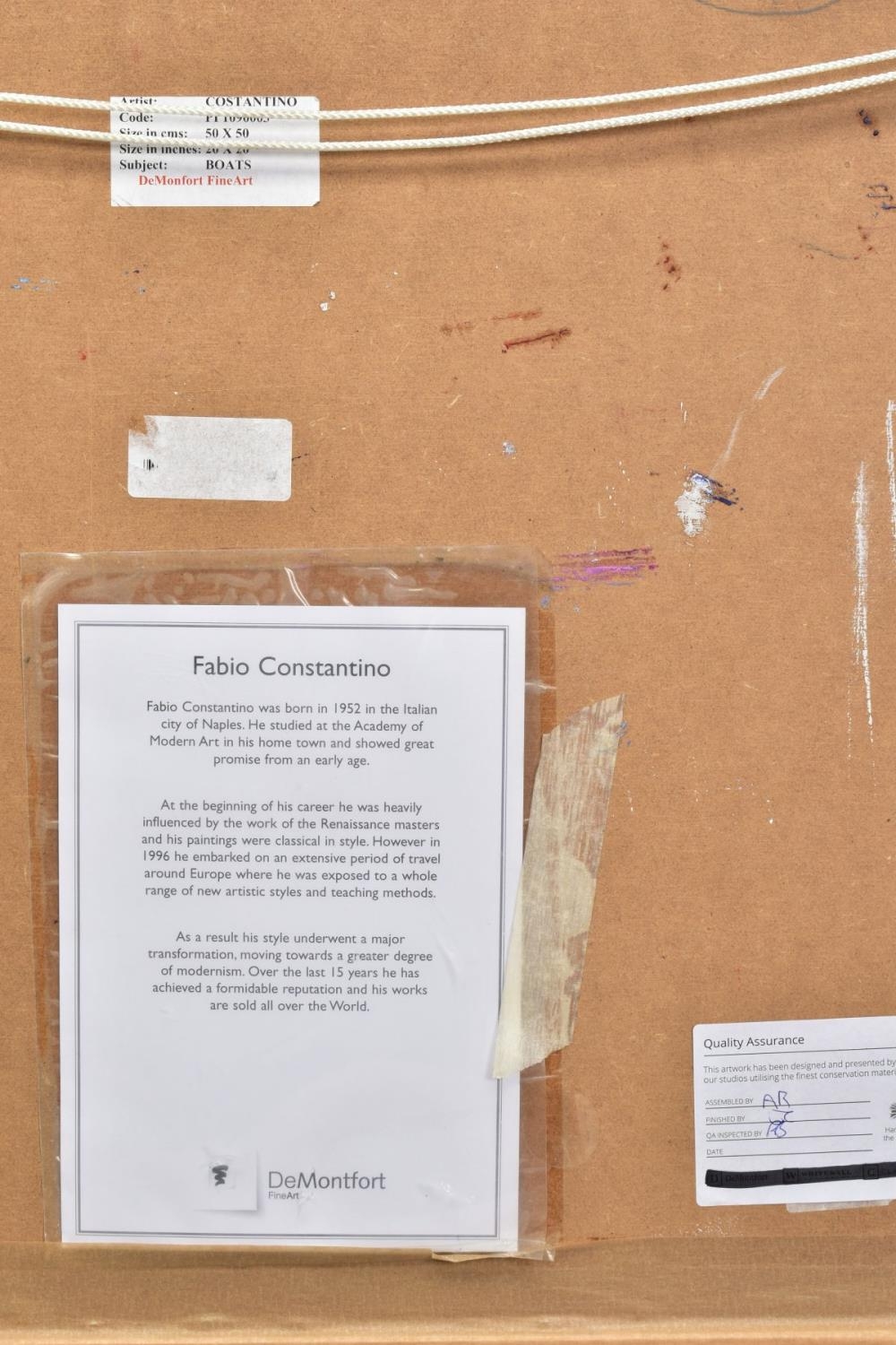 FABIO COSTANTINO (ITALIAN 1952), 'STILL HARBOUR IV', sailing boats on a beach at low tide, signed bottom right, oil on board, framed, approximate image size 45cm x 48cm, frame 68cm x 71cm (condition: dirty marks to frame) (A)