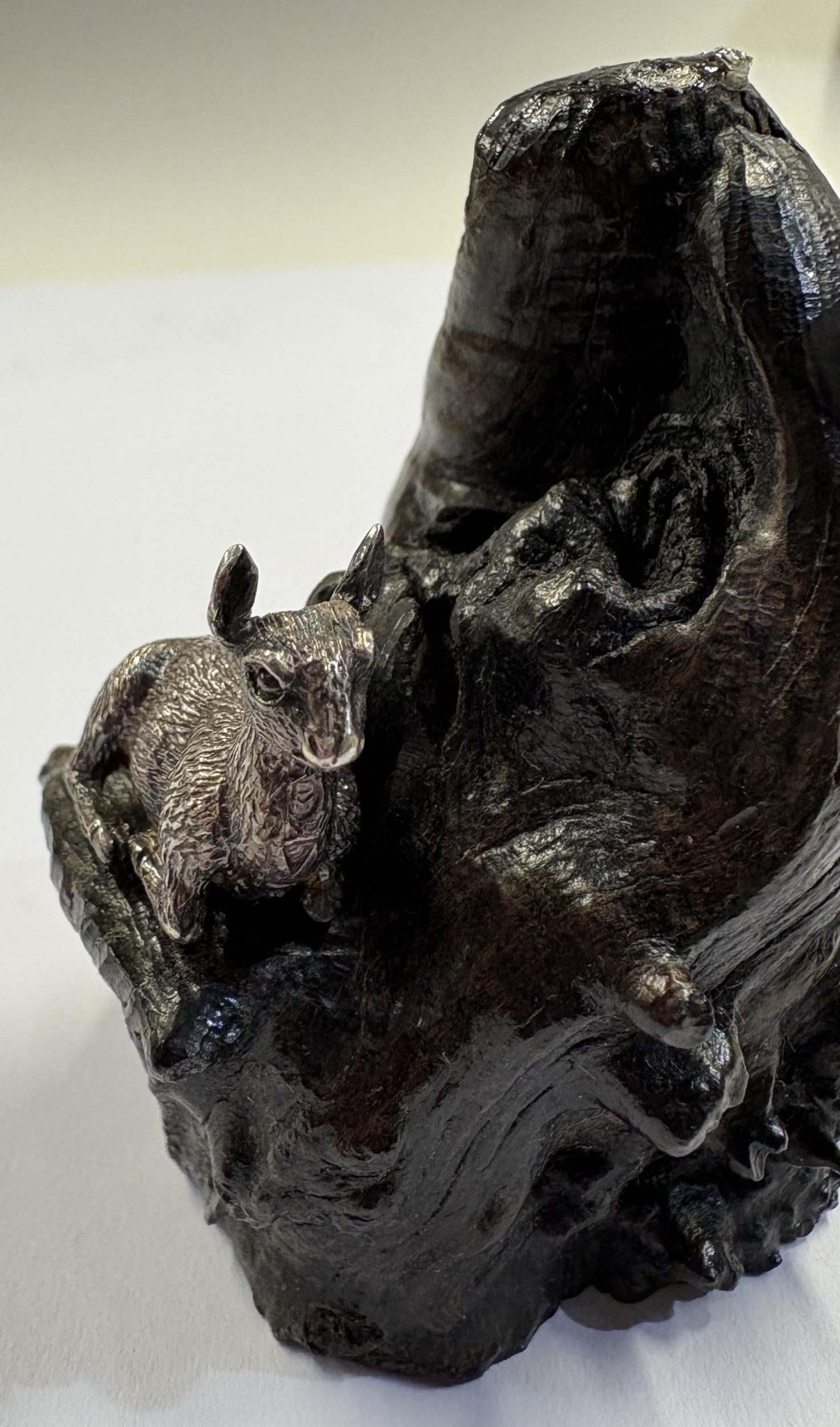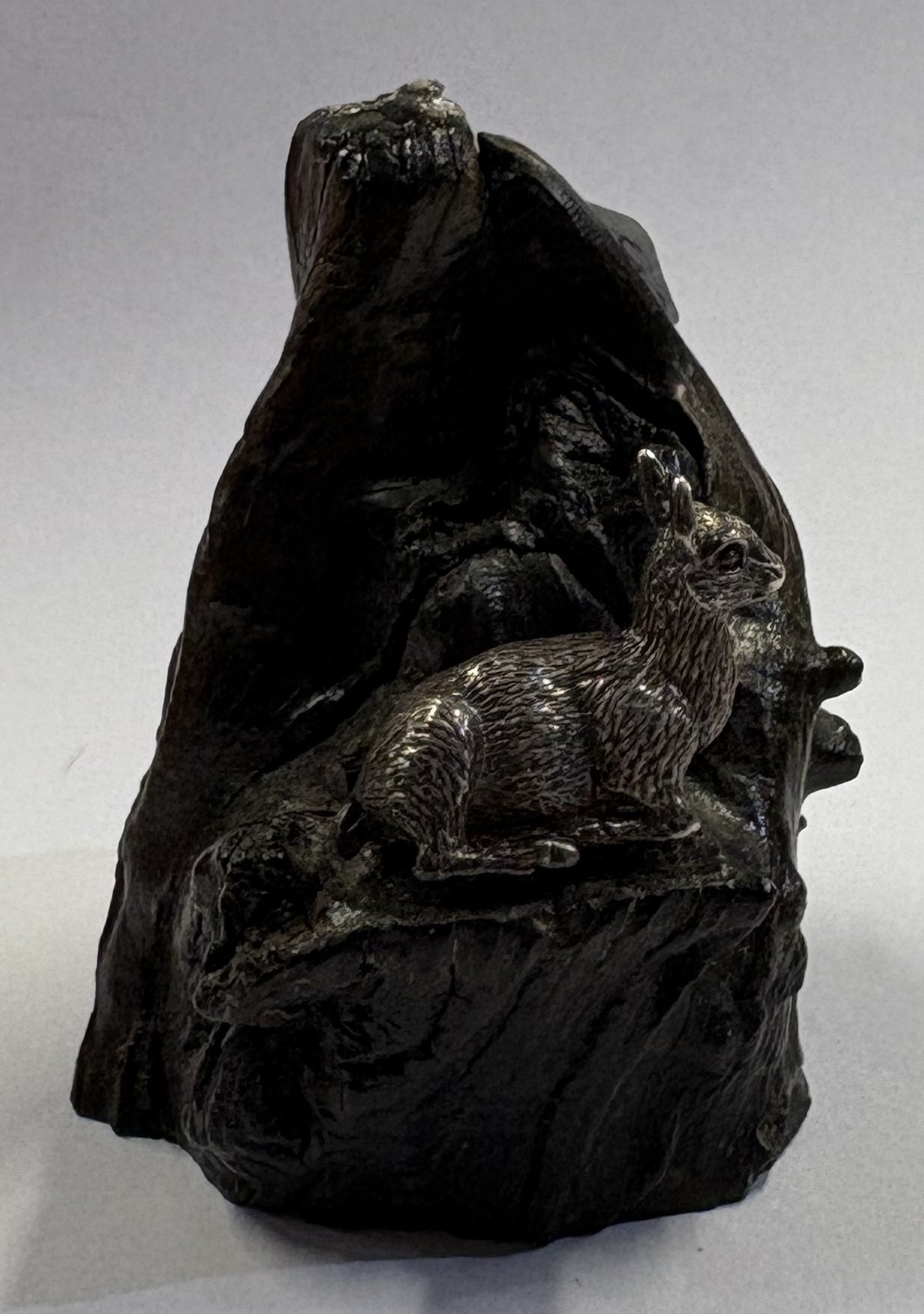 A silver figure of a fawn on plinth. Approx. 82 grams of gross weight. Est. £80 - £120.