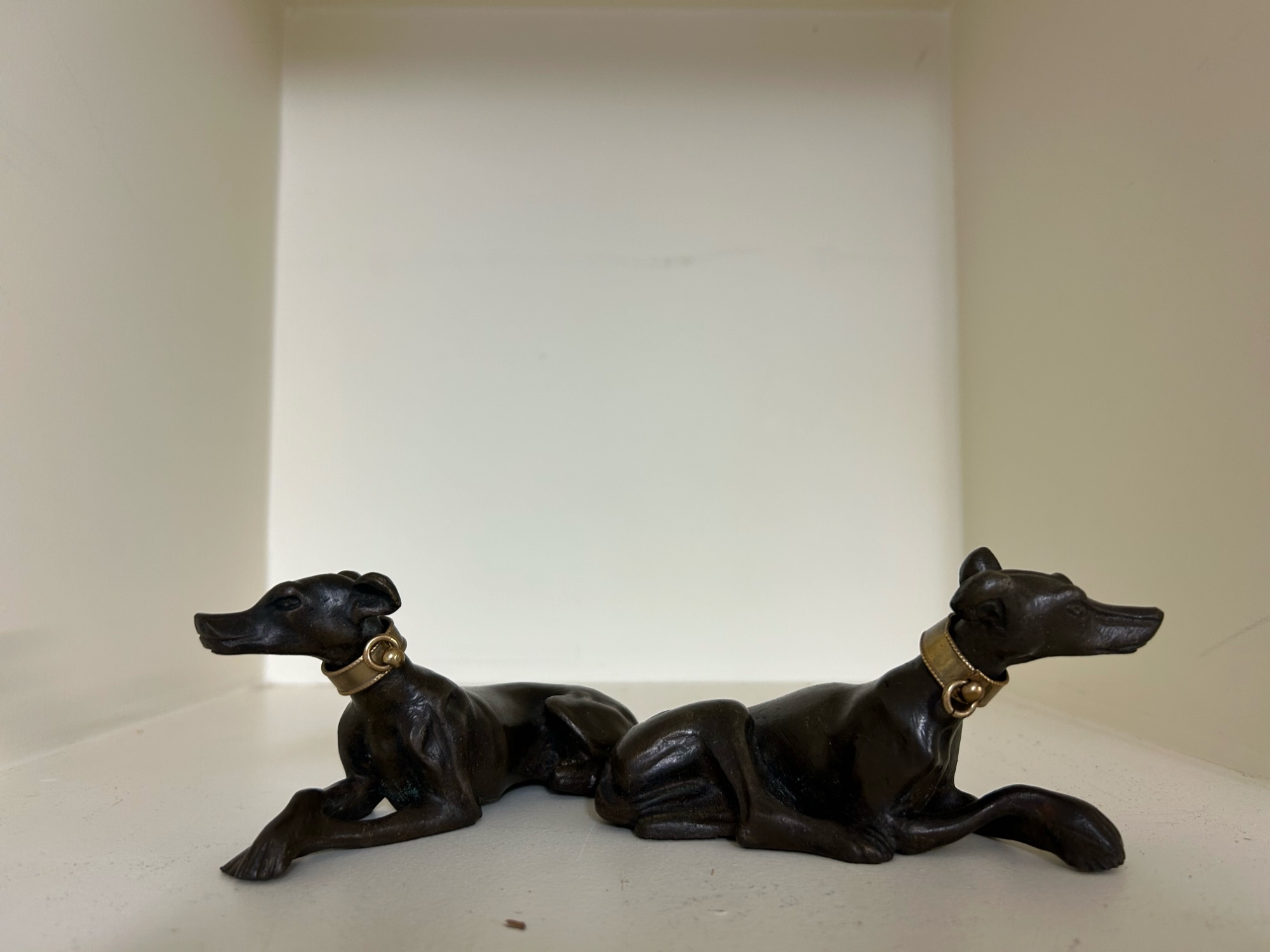 Modern, A pair of elegant bronze greyhounds