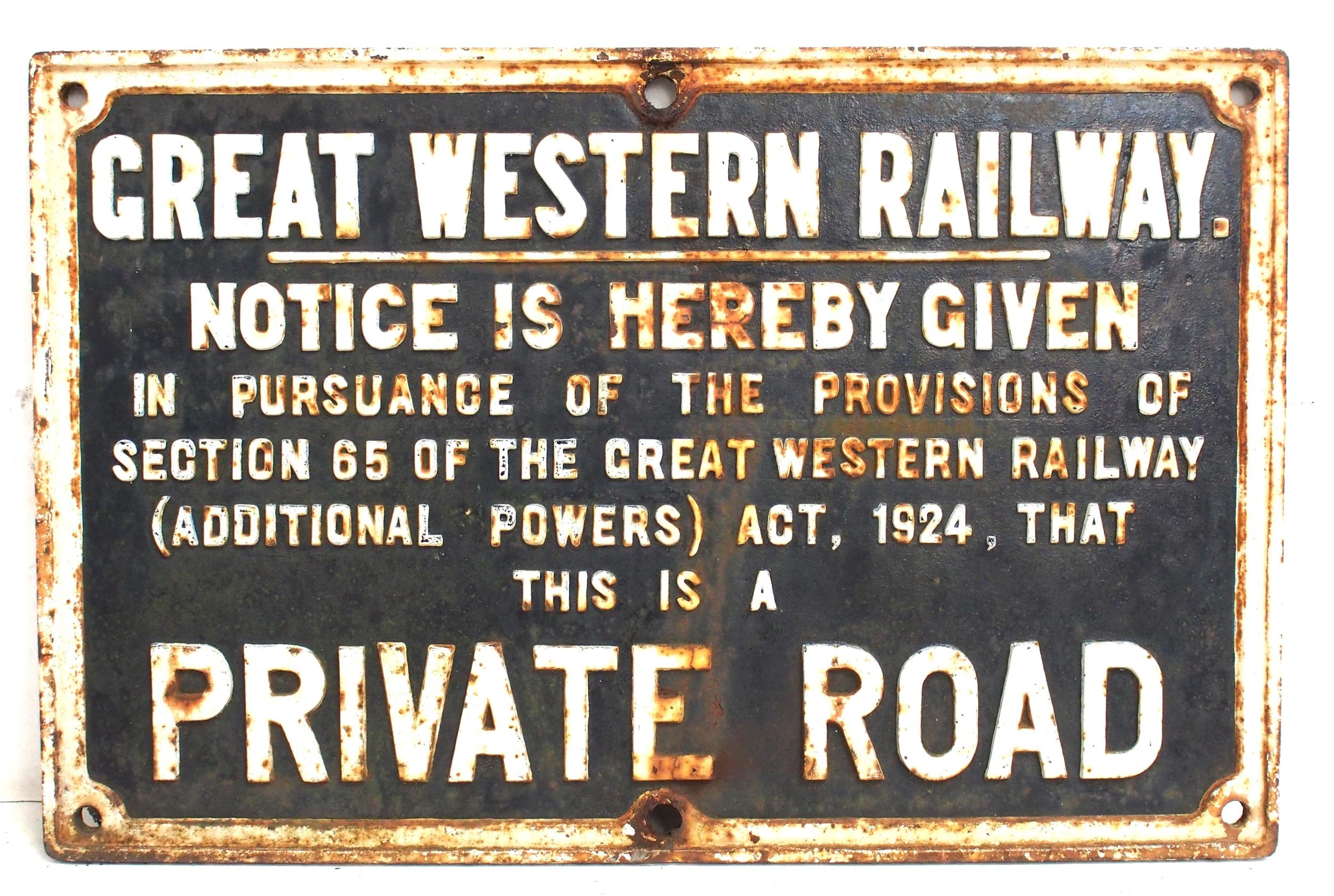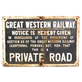 GWR C/I notice "PRIVATE ROAD" - with the attractive border, 25"x 16¼", ex service condition. (Dispatch by Mailboxes/Collect from Banbury Depot)