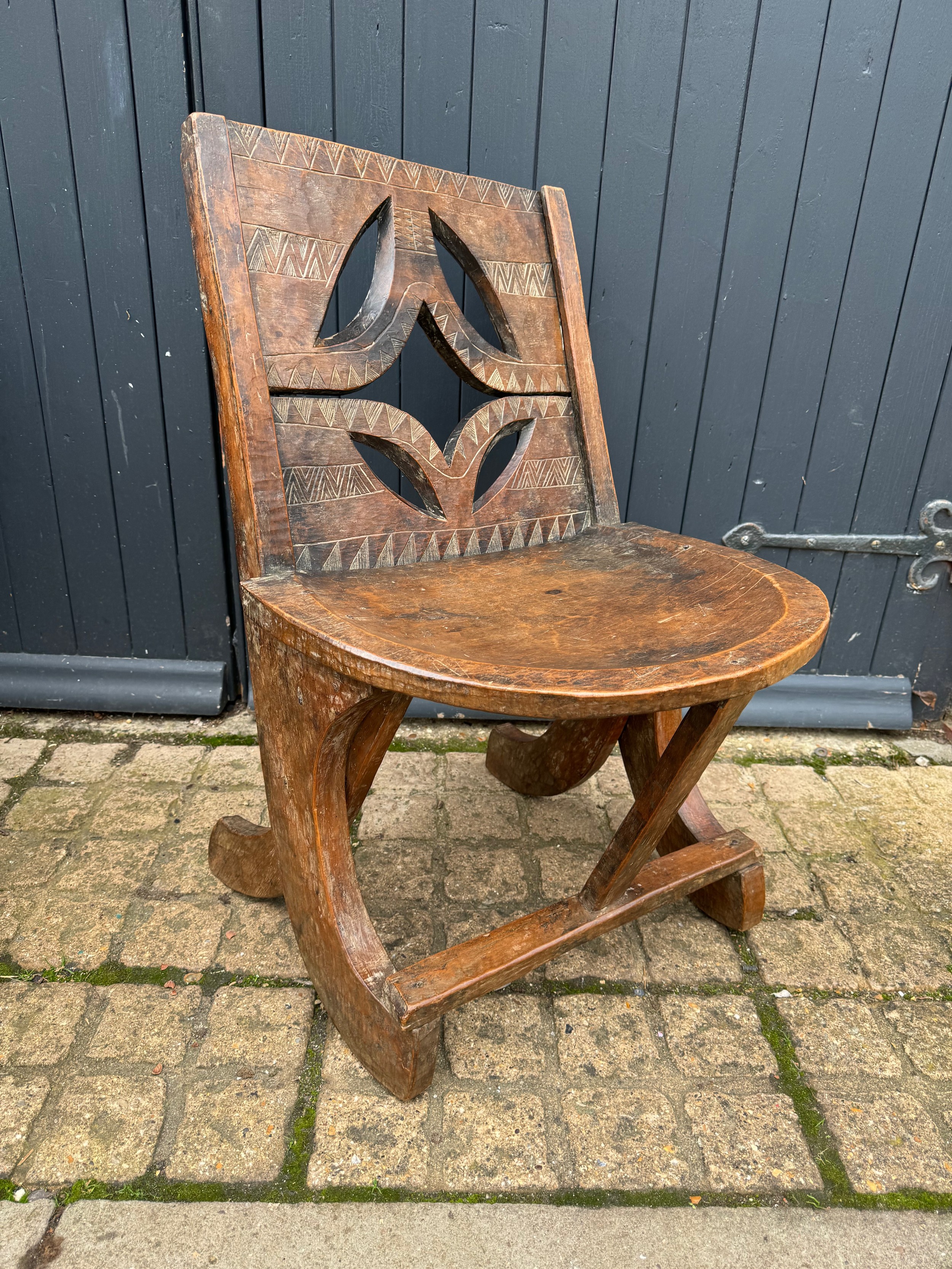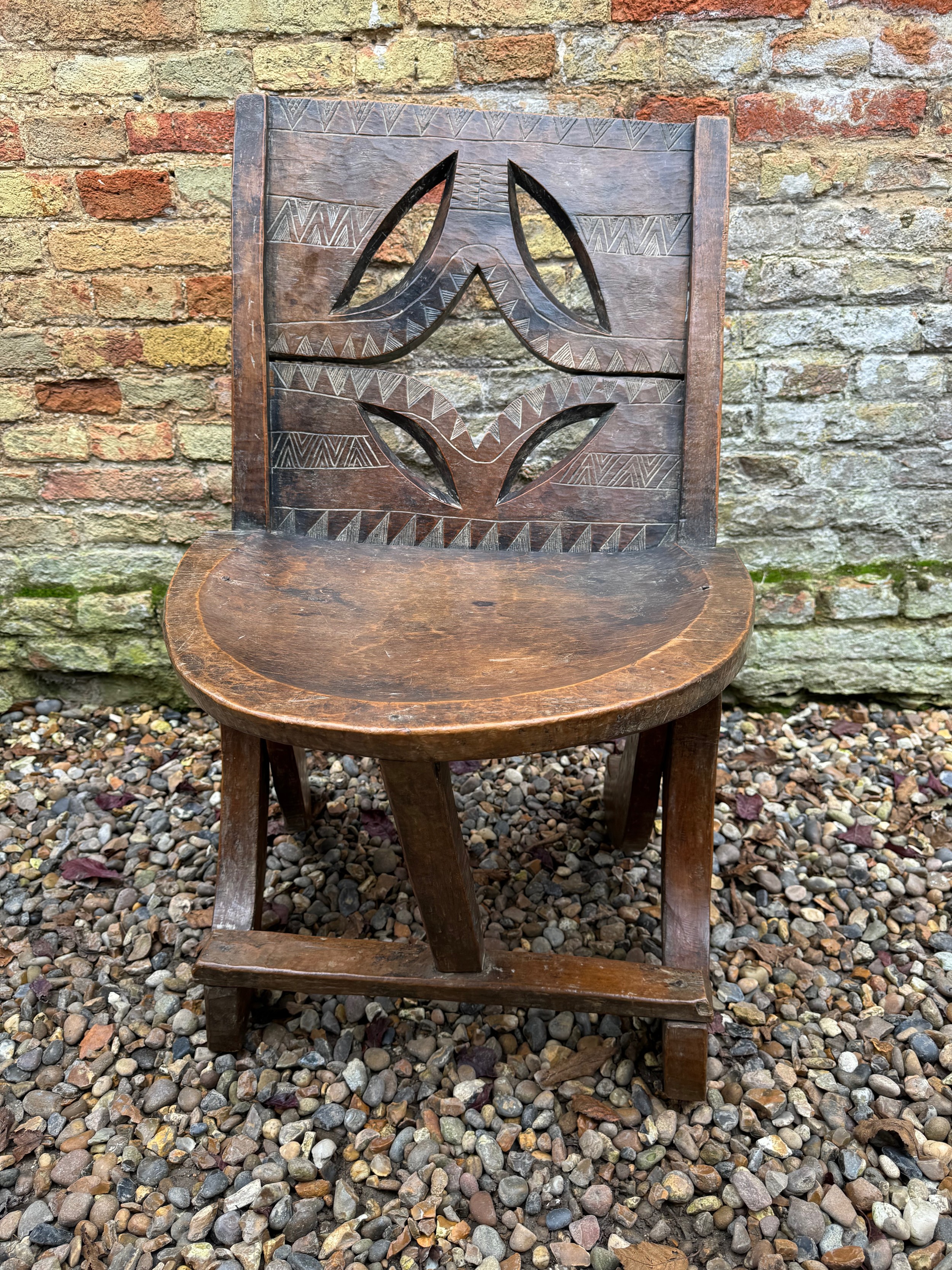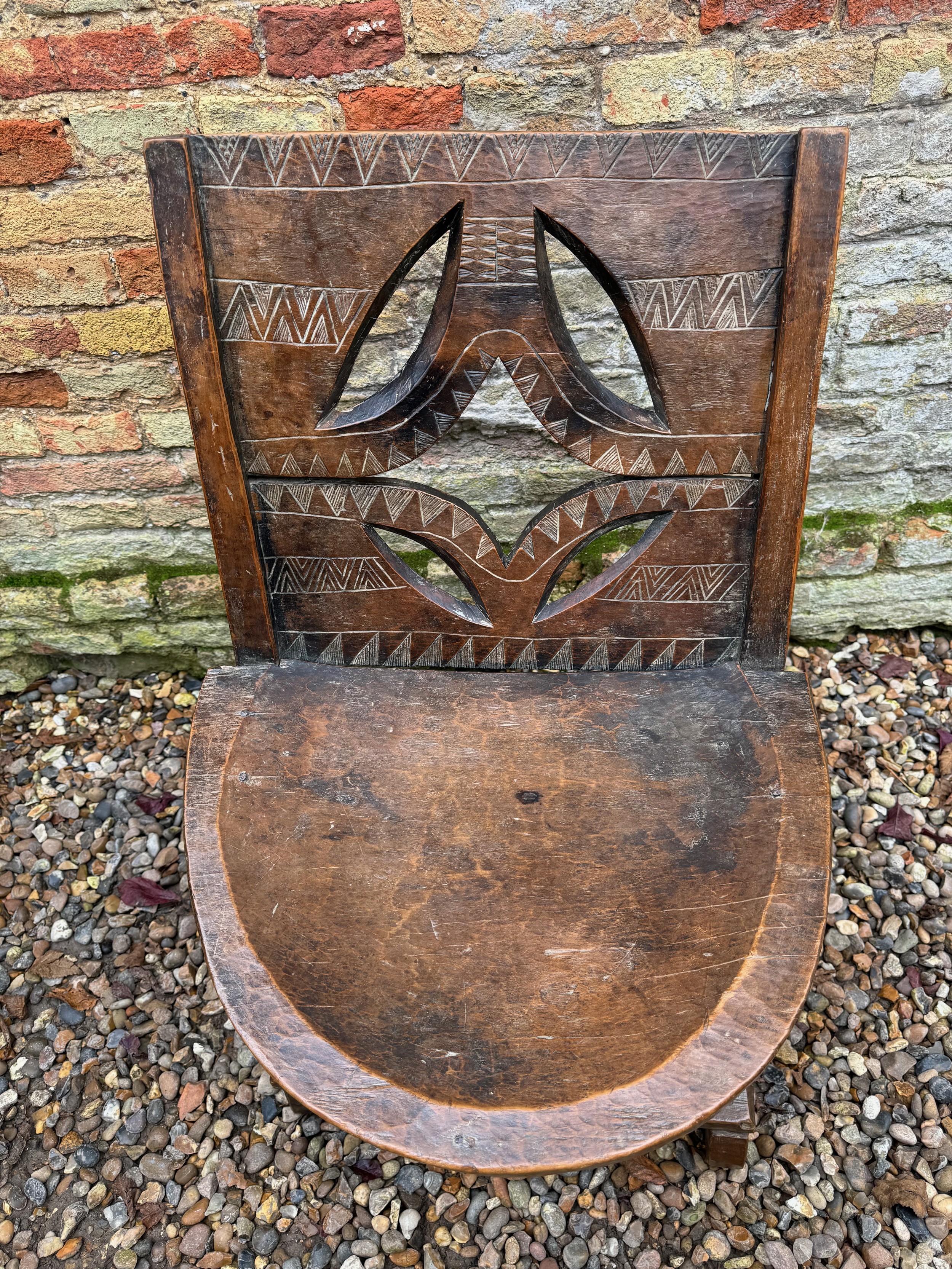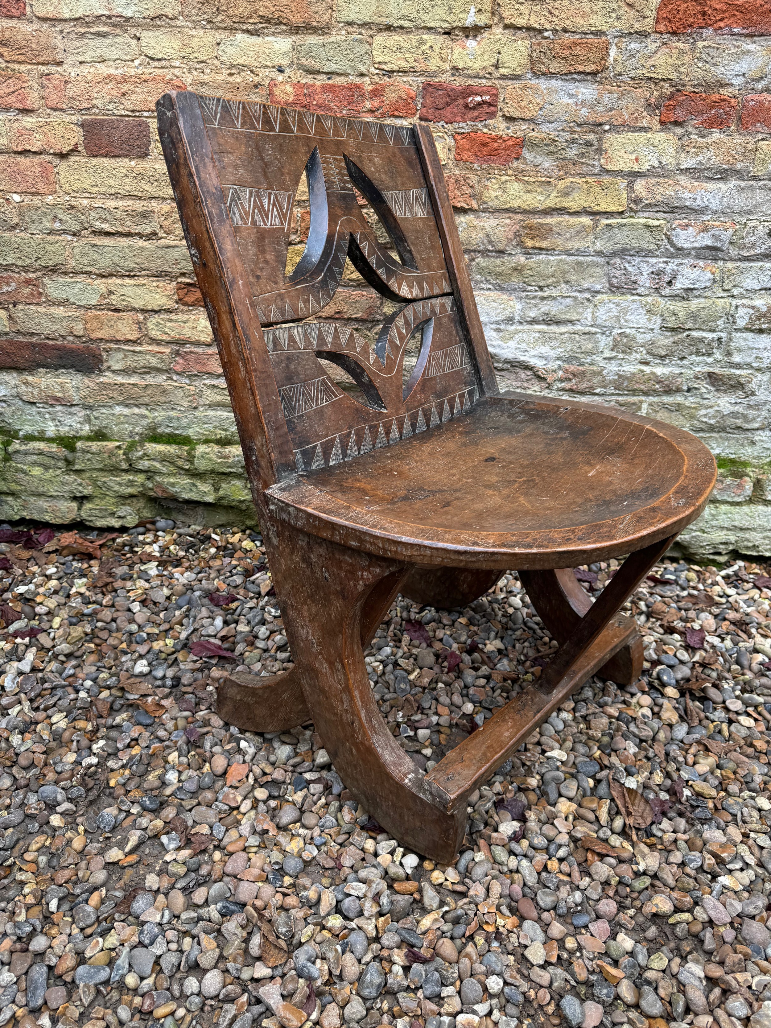 Tribal Art, Ethic furniture, hand decorated hardwood chair by the Oromo People of Etheopia.