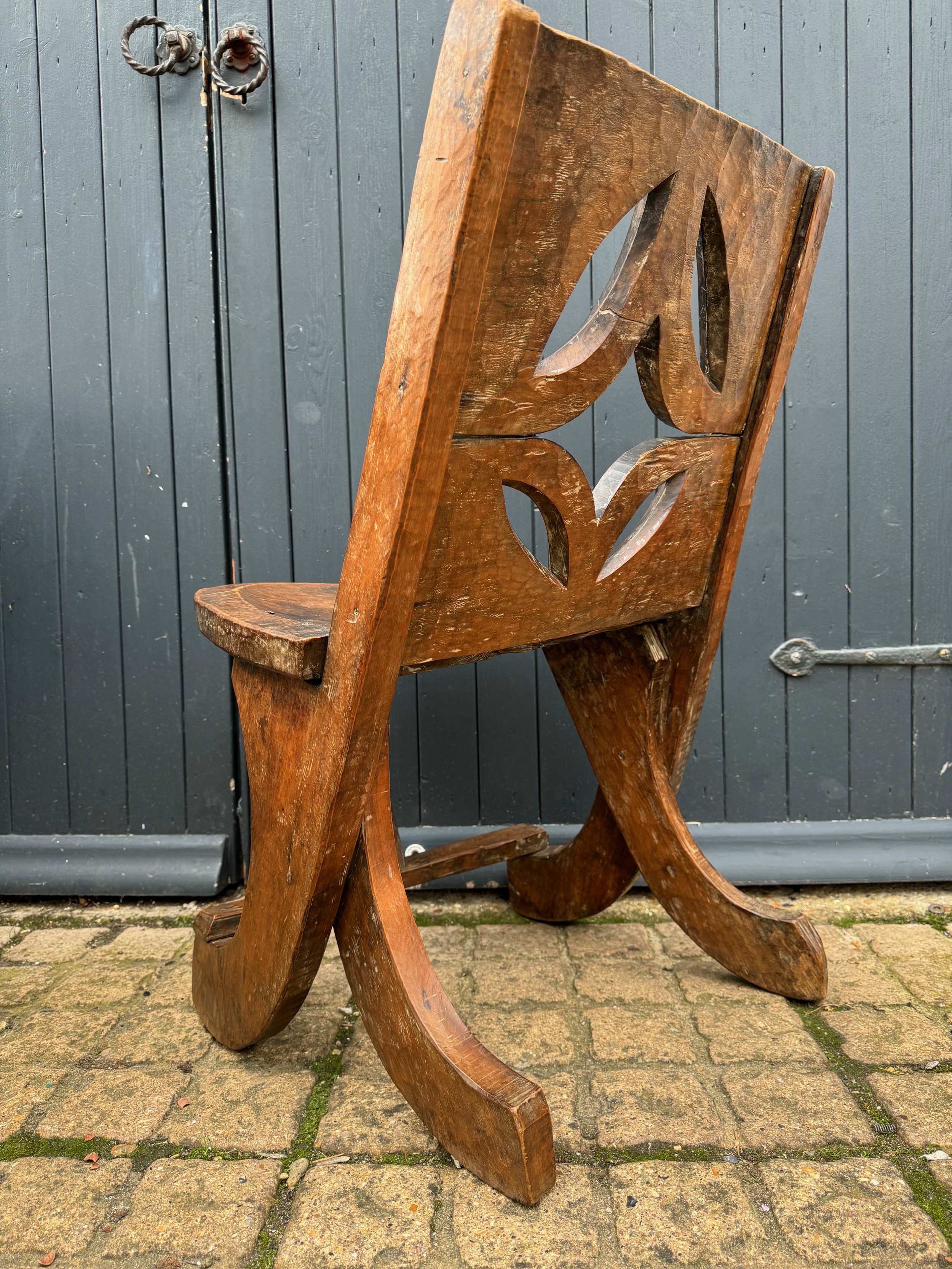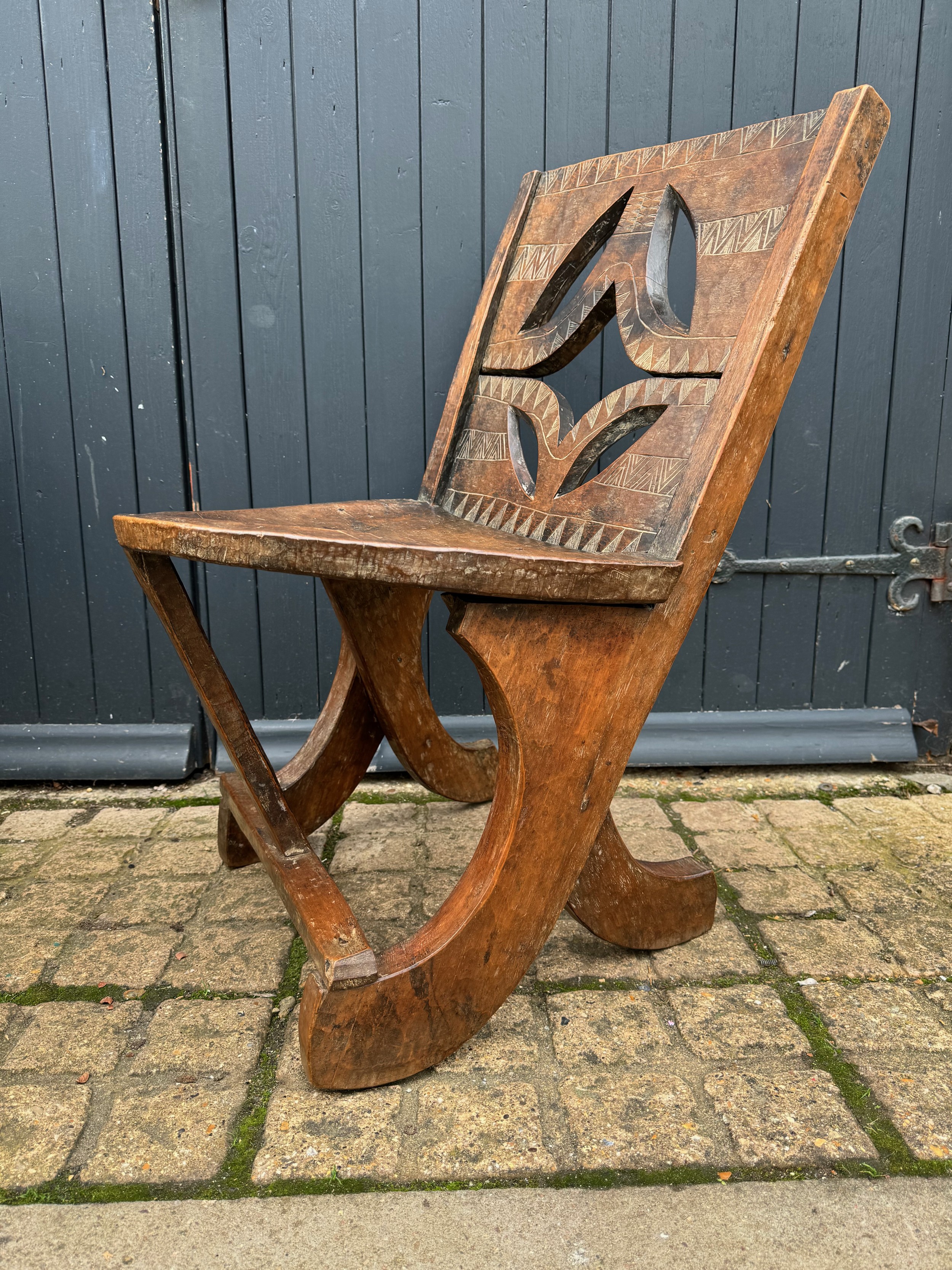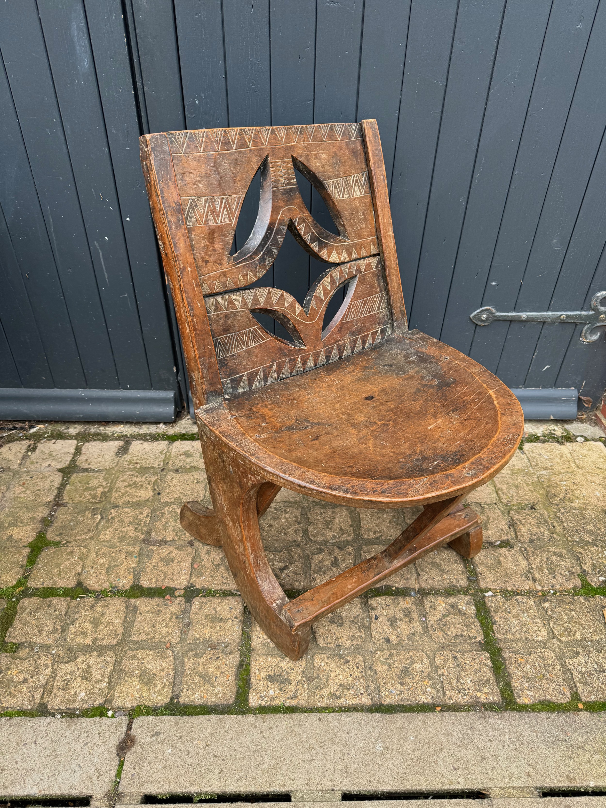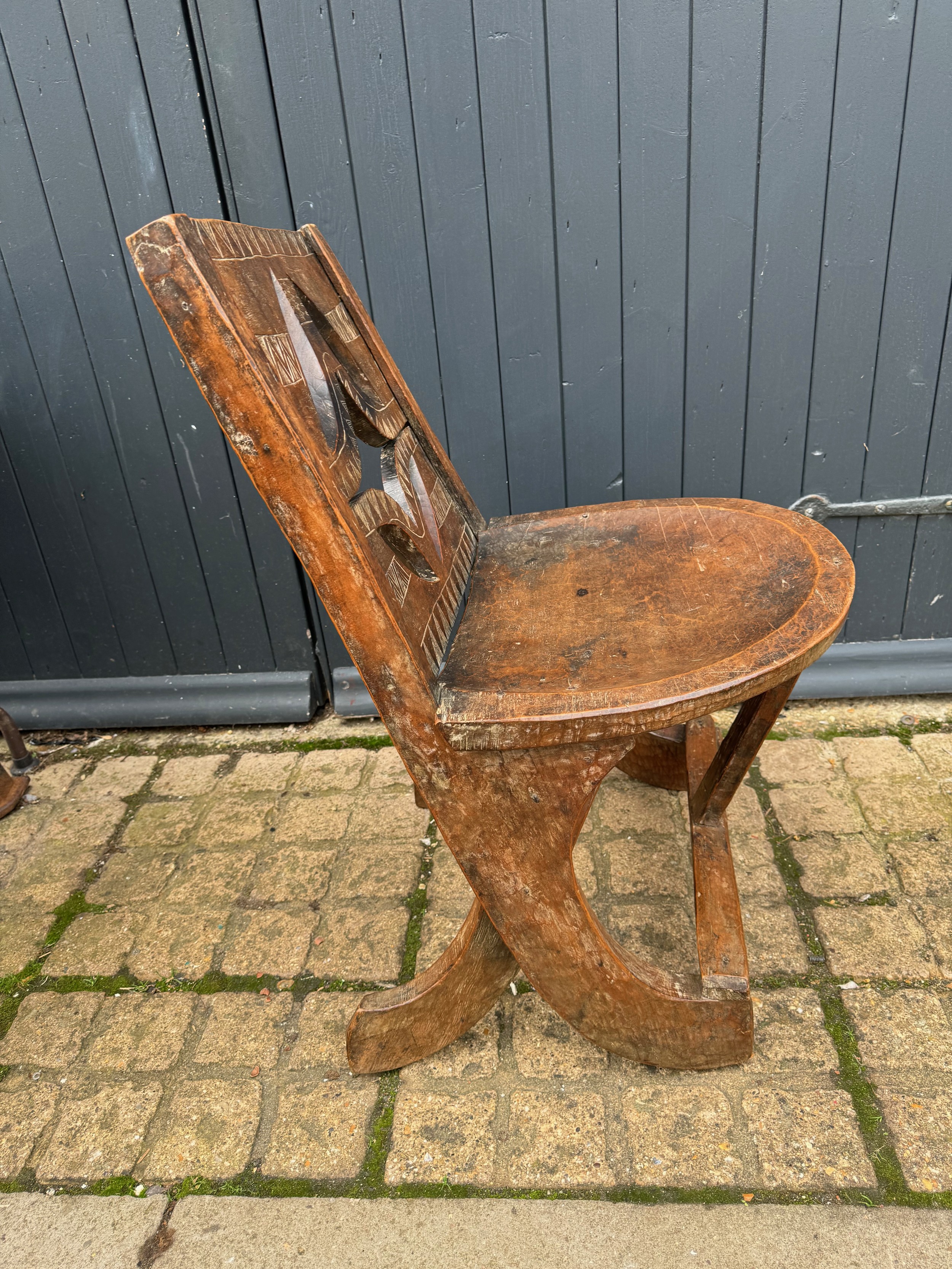 Tribal Art, Ethic furniture, hand decorated hardwood chair by the Oromo People of Etheopia.