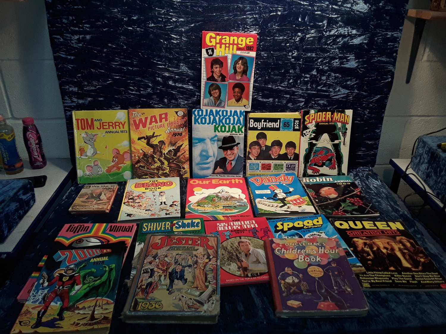 Selection of vintage annuals including spider man ,2000 AD and beano
