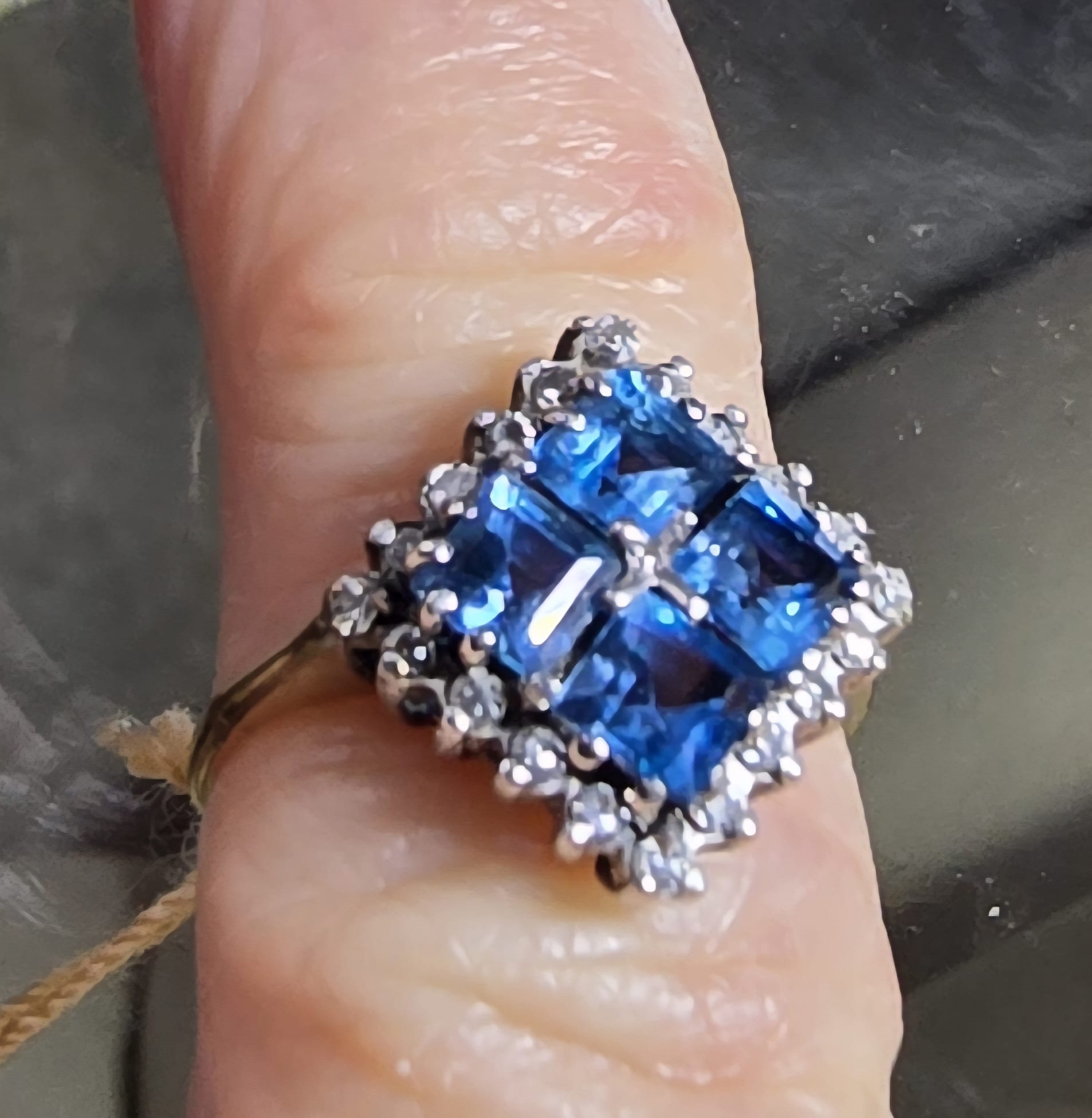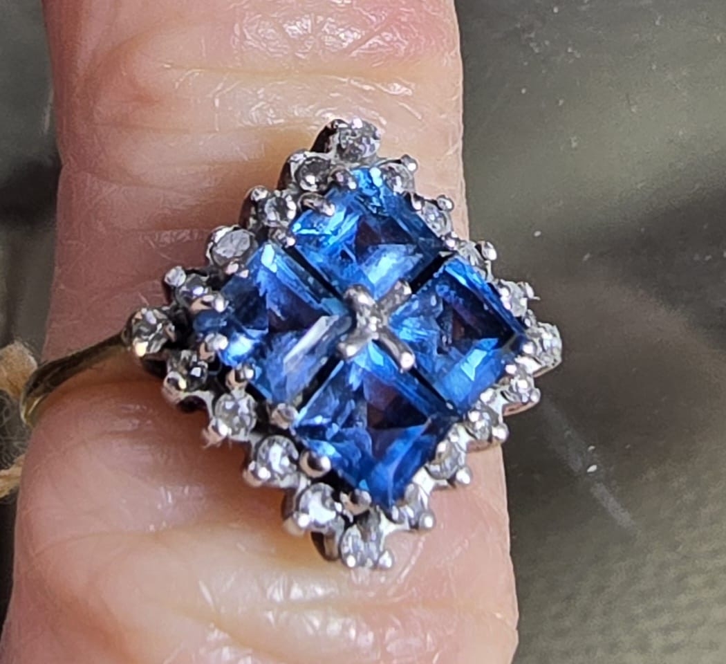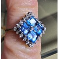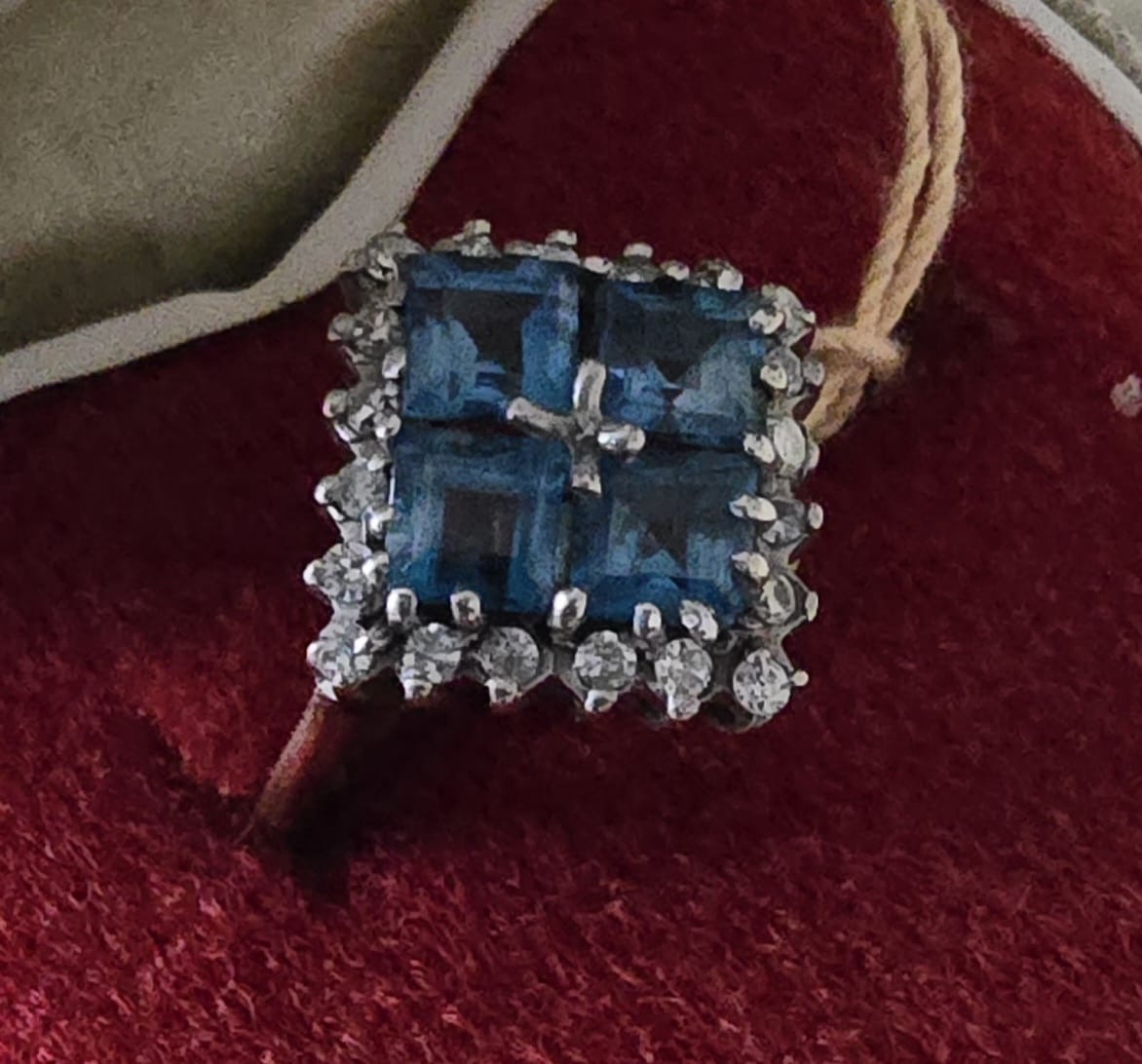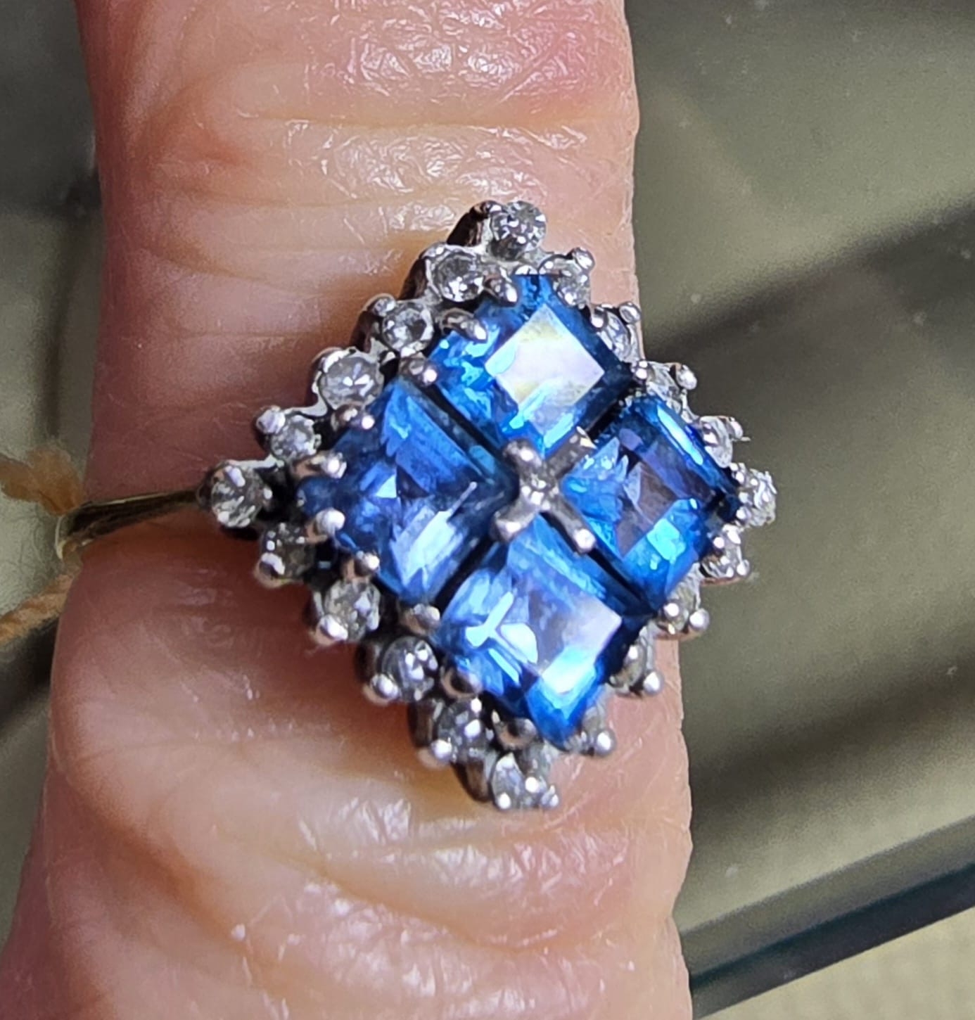 Stunning Art Deco 9k Diamond & Topaz small size F Ring.