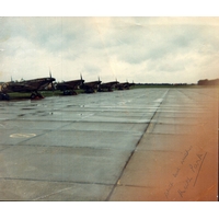 Multi-signed Handley Page Halifax III Radlett 1944 black and white greetings card. Signed by 13. Amongst signatures are Fellowes, De Hoop, Bell, Smith and more.