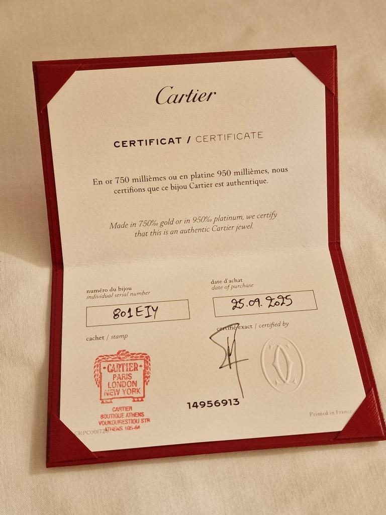 Nb. This was very recently purchased BRAND NEW from Cartier Store in September 2025, (we have seen the original purchase receipt), because is has NEVER WORN, therefore we can't allow people to touch or try on, which the discerning purchaser will appreciate.