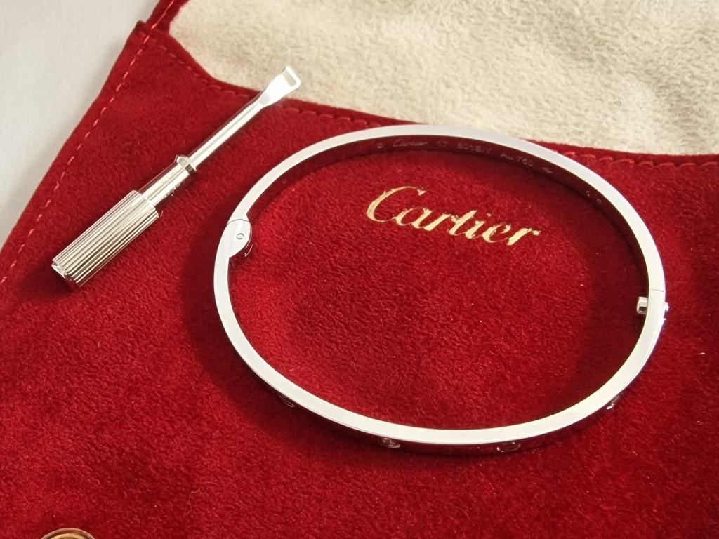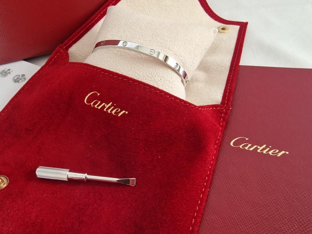 Cartier Love Bracelet; 18ct White Gold with 6 x Diamonds, Size: 17, with Matching White Gold Screwdriver, In Original Cartier Felt Pouch with Certificate of Authenticity and Red Cartier Bag.