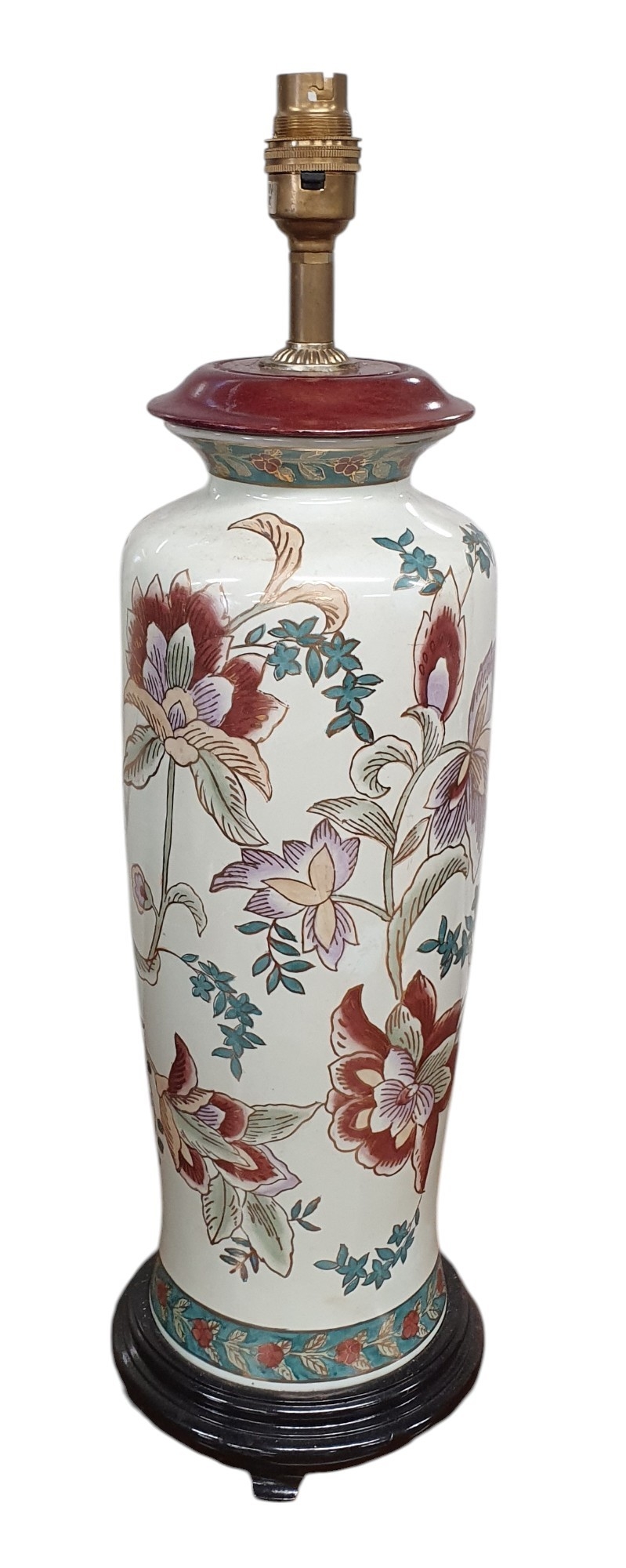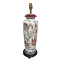 A green ground Oriental Table Lamp with painted decoration. H 51 cm approx.