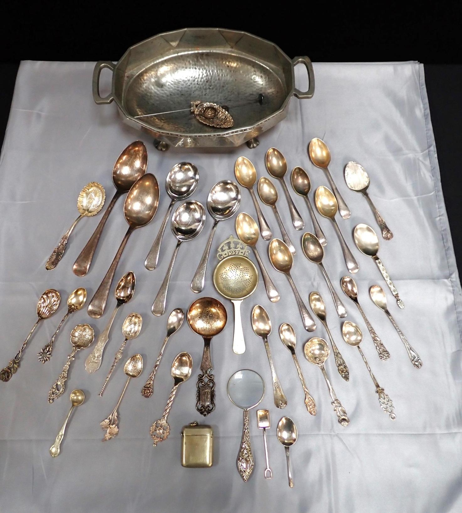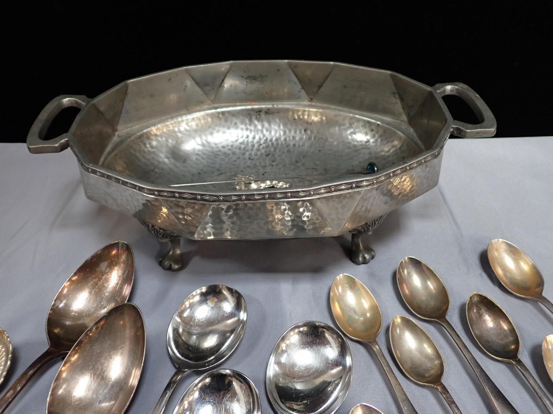 A COLLECTION OF PLATED WARESmostly cutlery, with a Craftsman pewter dish
