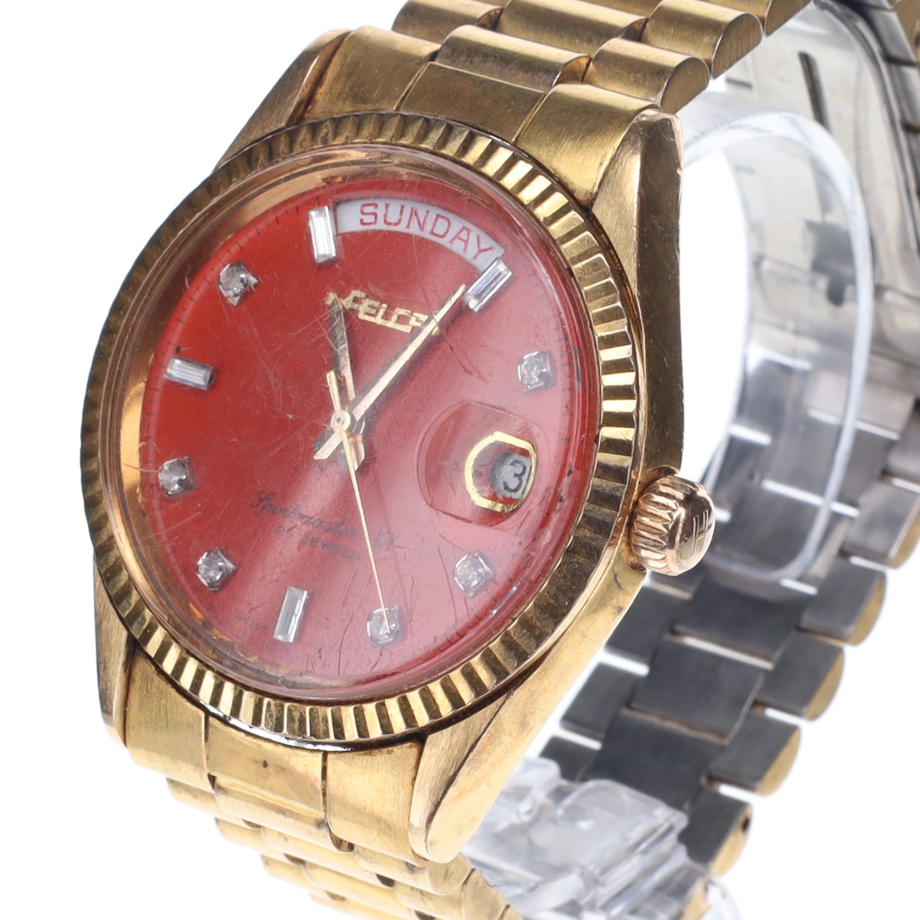 Dial signed 'Felca Sportmaster XX 25 Jewels' in gold and black font.