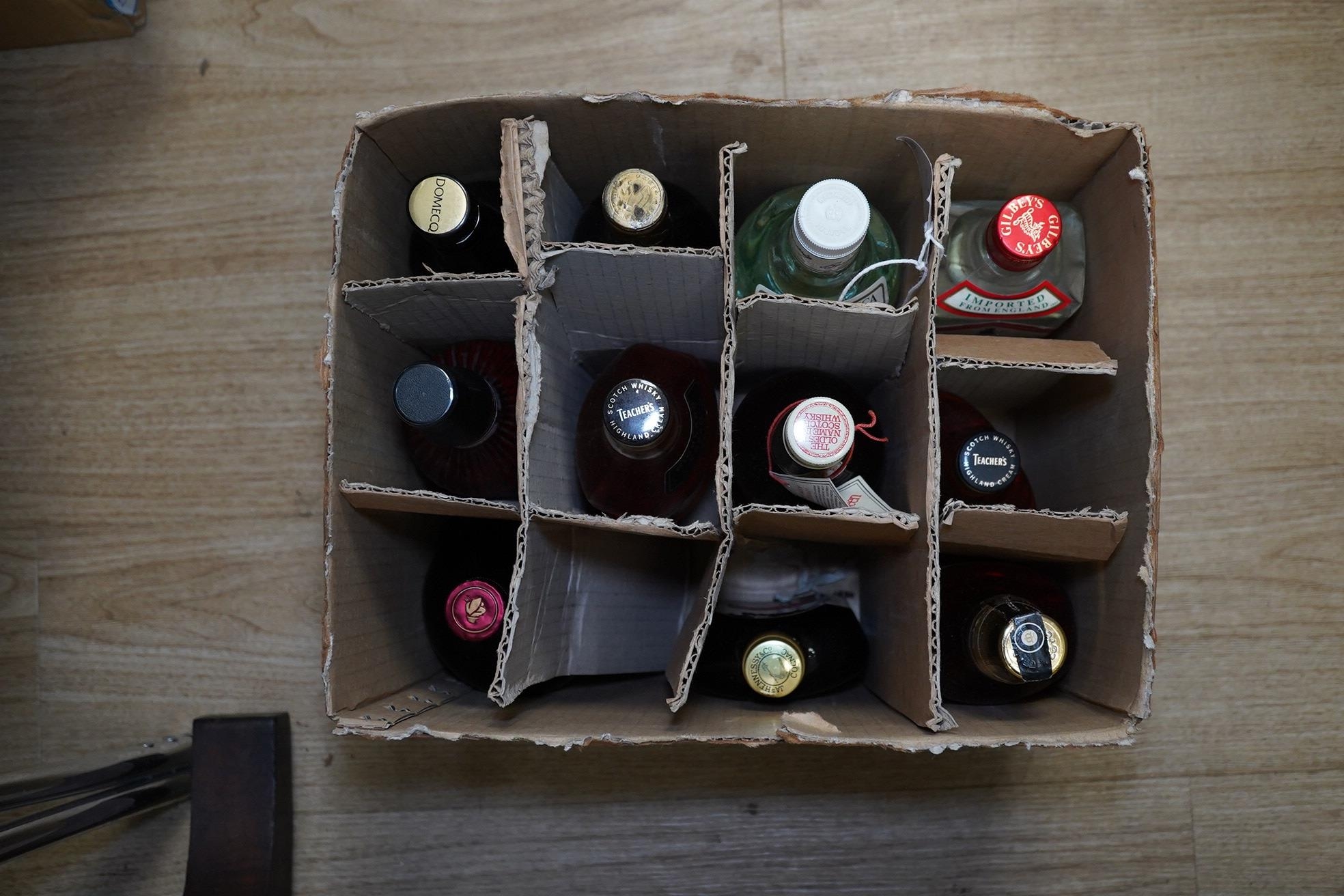 Nine bottles of spirits and two Sherry's. Condition - storage unknown