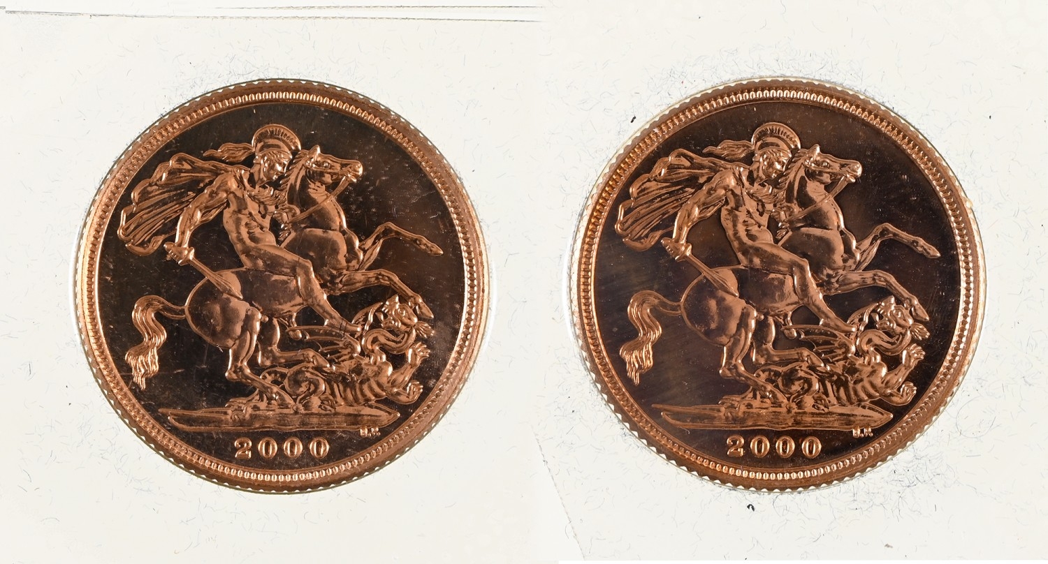 Gold coins. Sovereign 2000 BC, encapsulated (2)