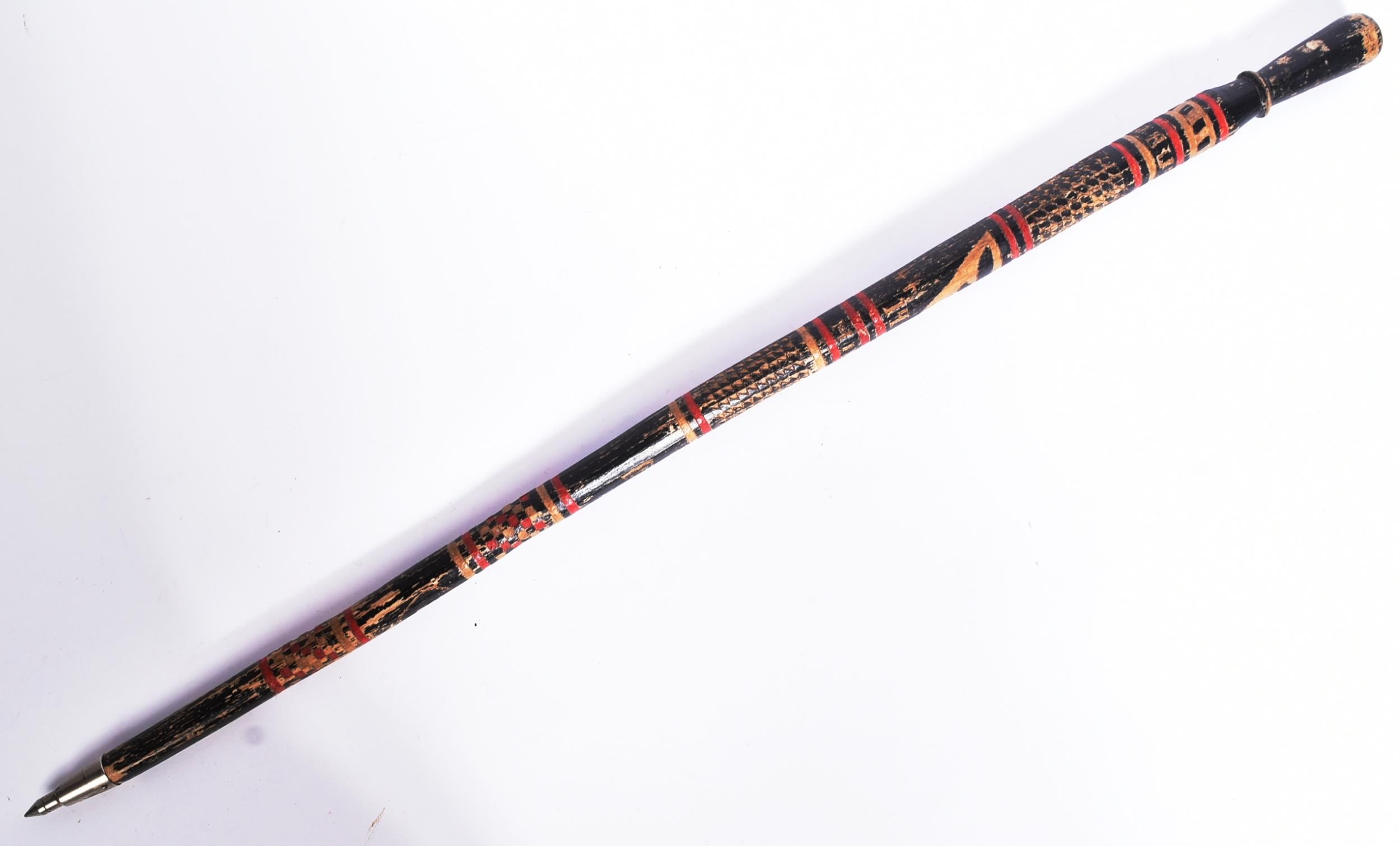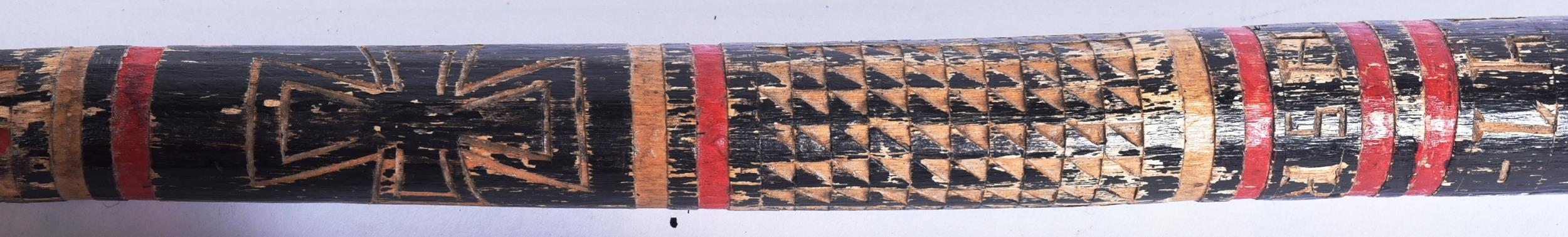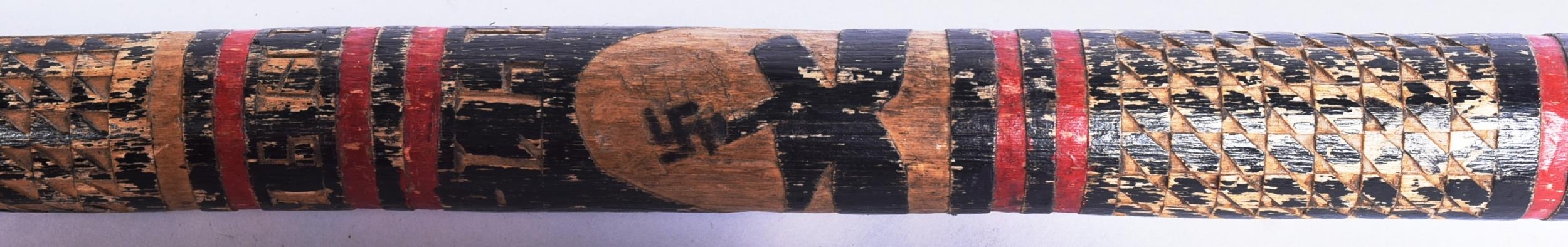 A WWII Second World War Third Reich Nazi German Wolchow stick. Hand carved from trees on the Wolchow River in Russia. Carved with images of the Iron Cross and Imperial Eagle along with Russia 1941. Measures approx 92cm.