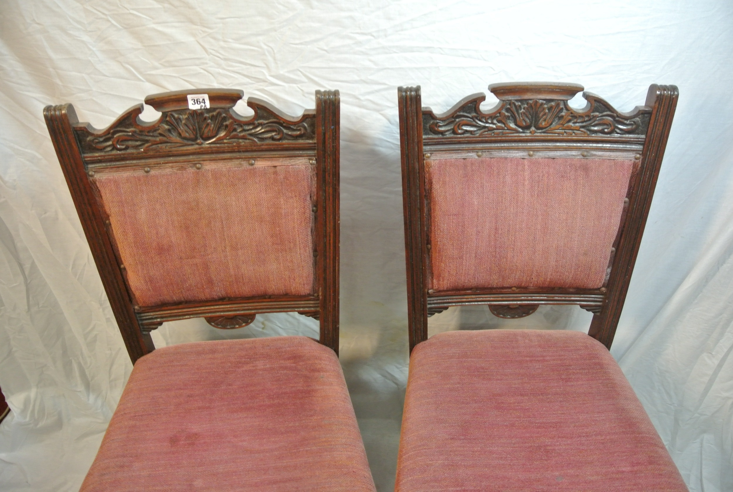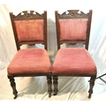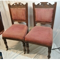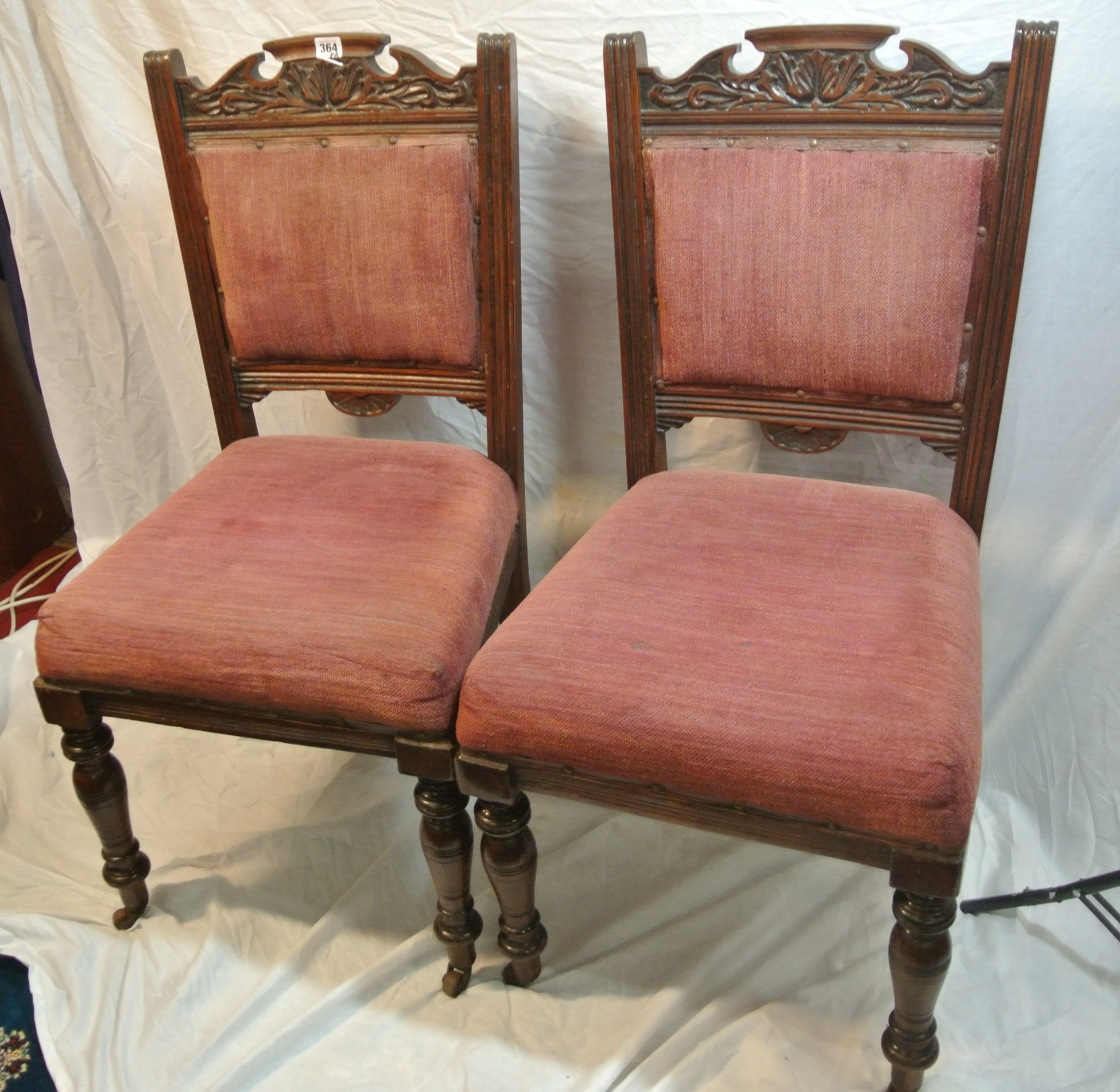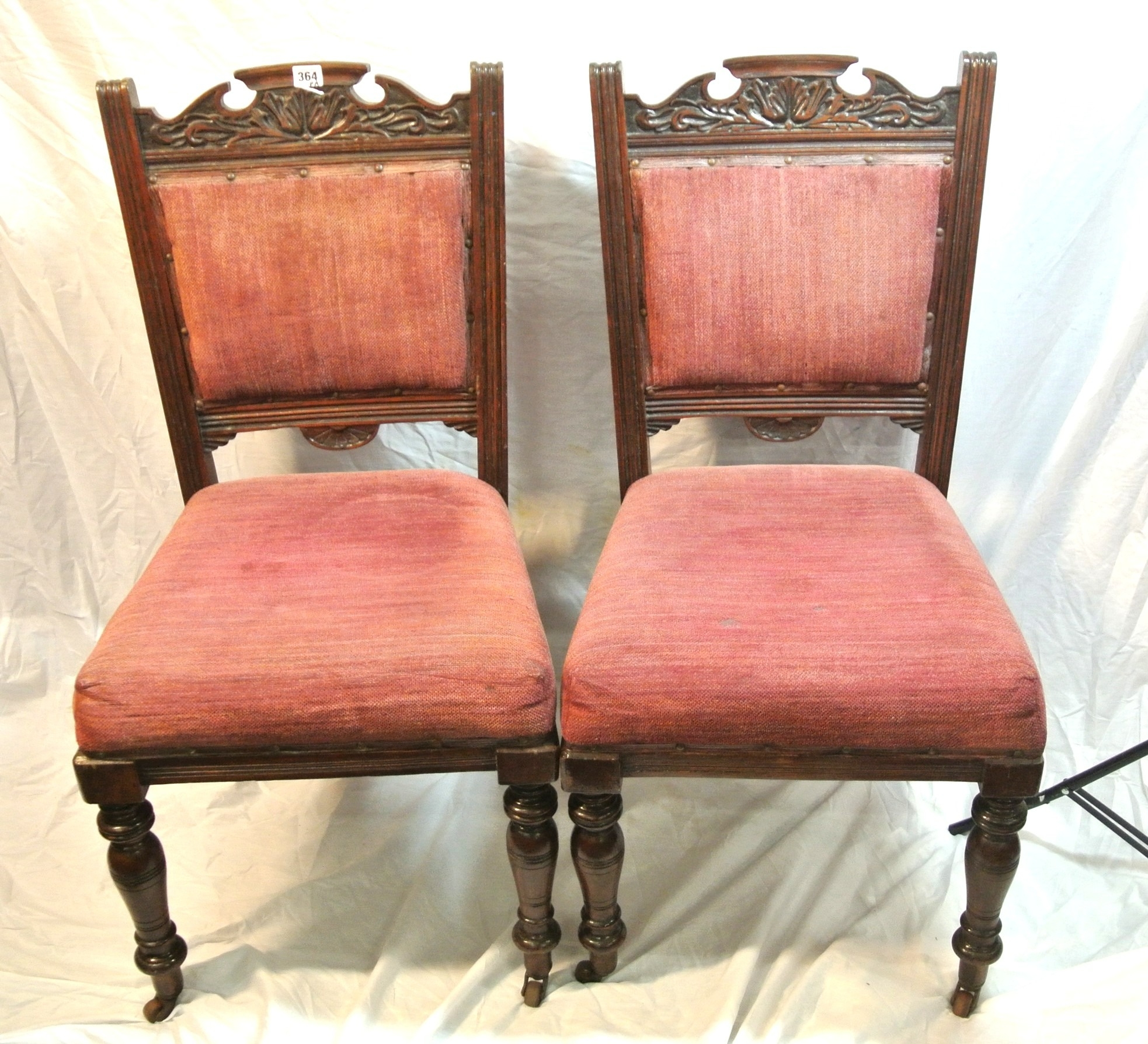 Pair of Victorian mahogany occasional or bedroom chairs with upholstered backs and seats, on turned legs with casters
