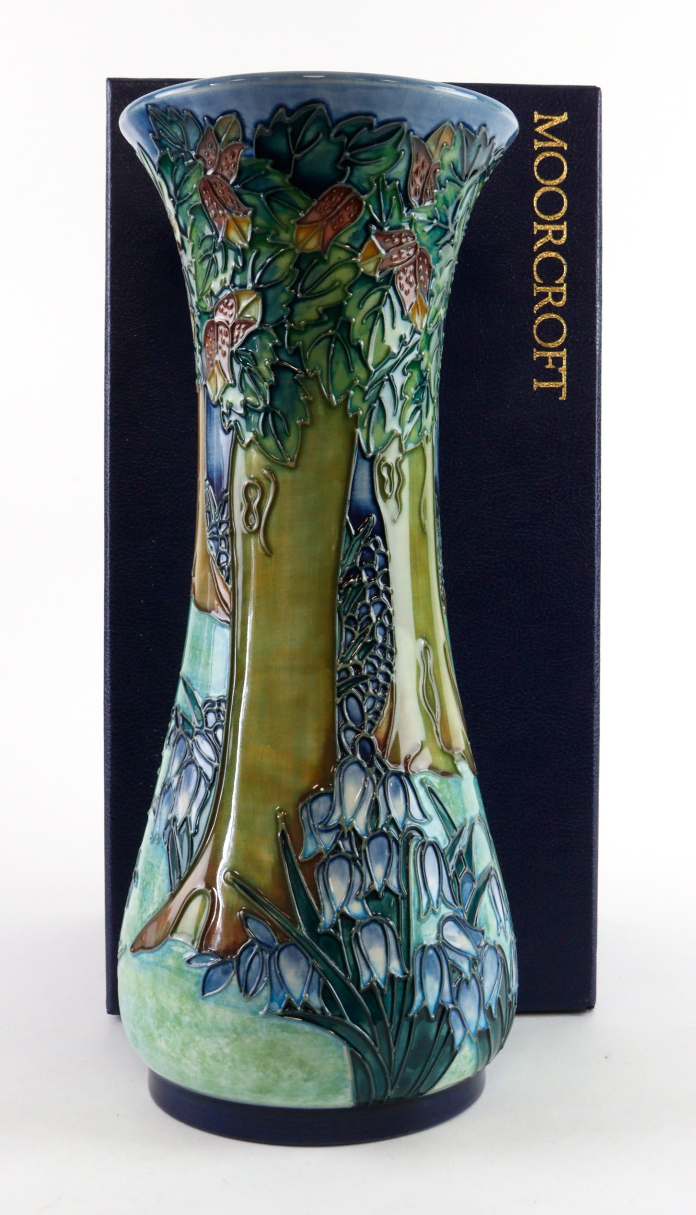 Moorcroft 'Vereley' pattern vase, dated 1997, makers marks to base, height 31cm approx., contained in a Moorcroft box