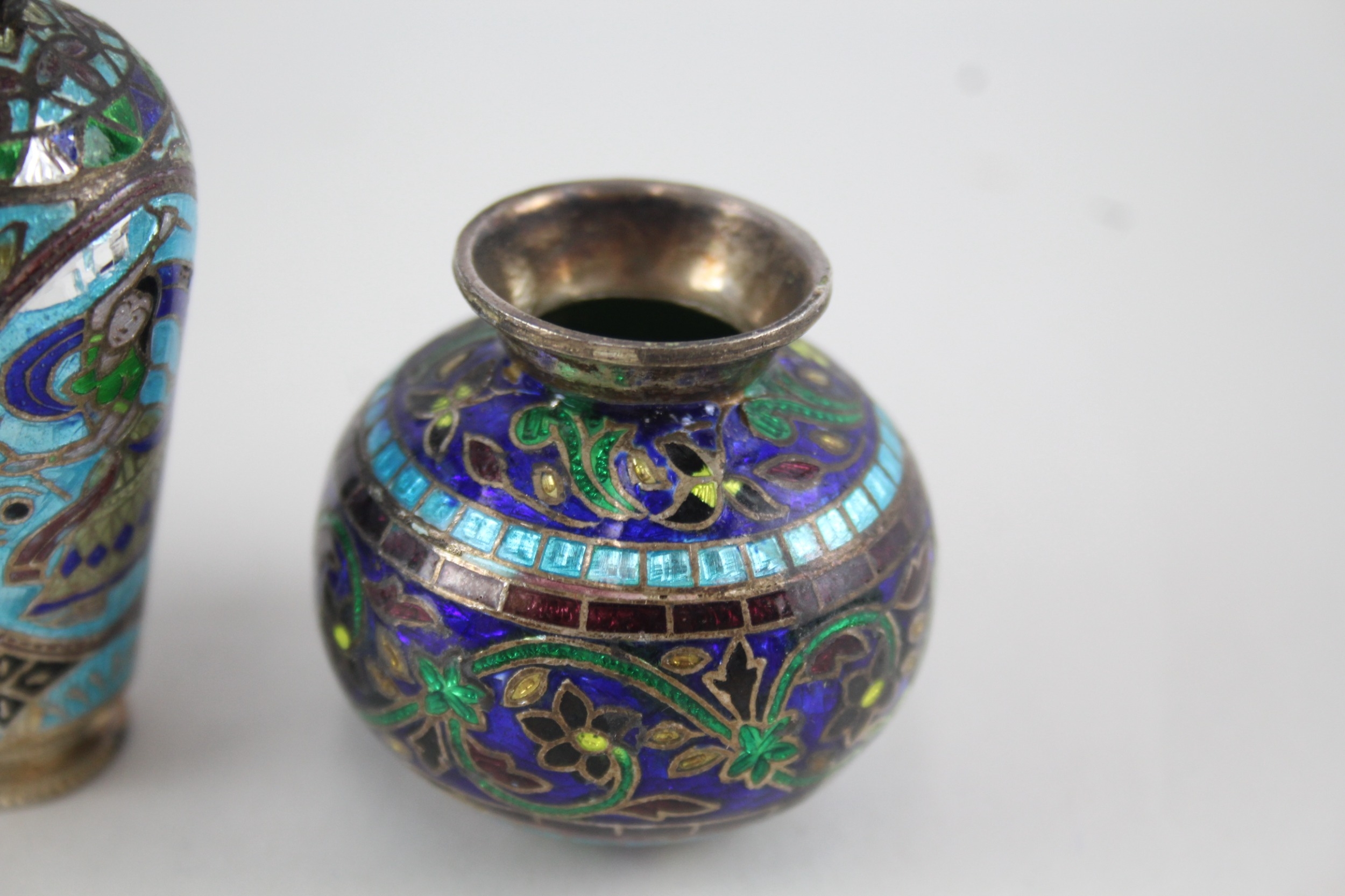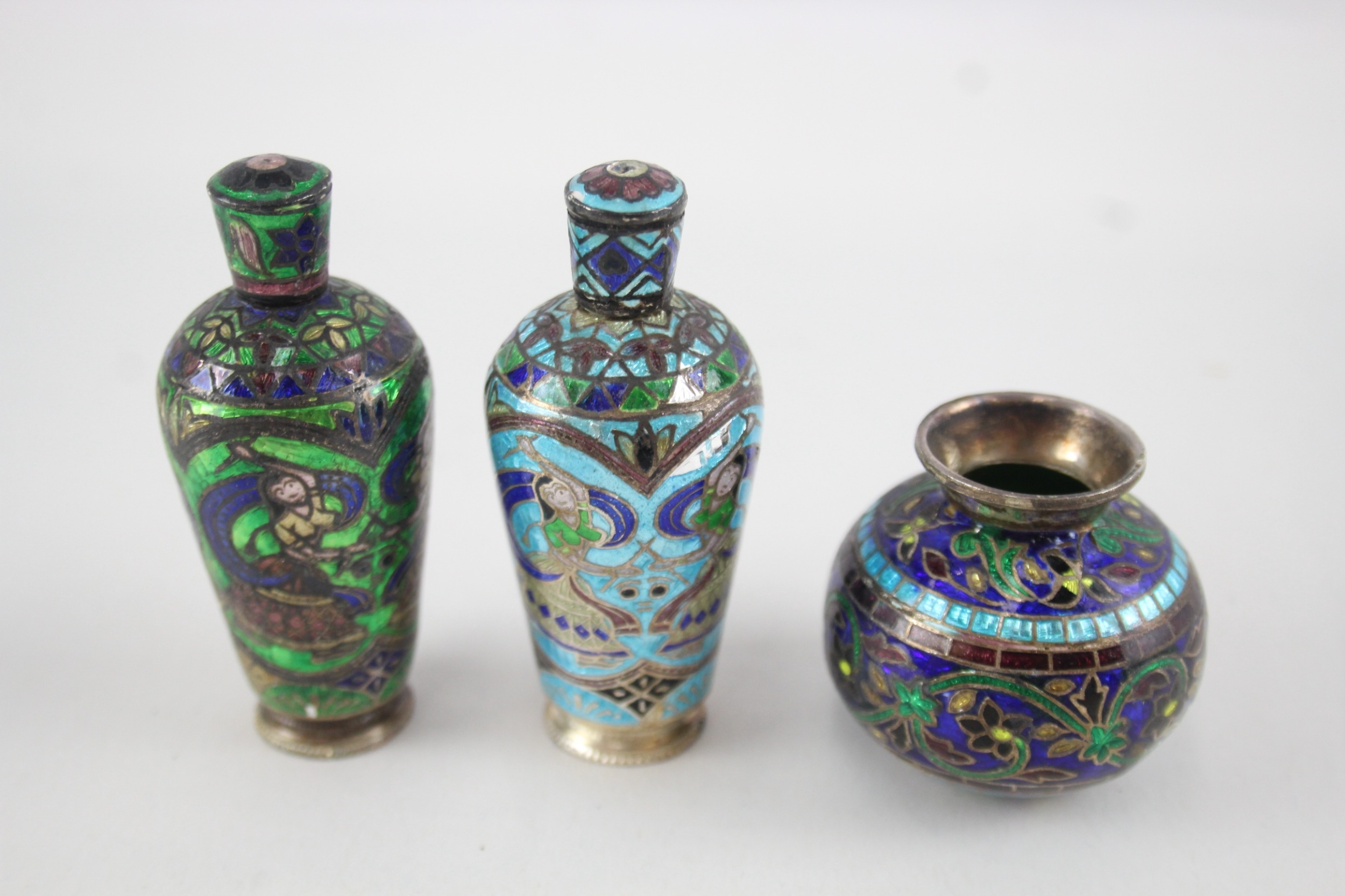 3 x Vintage .925 Sterling Silver Enamelled Pill ?/ Trinket Boxes Inc Vase (121g)