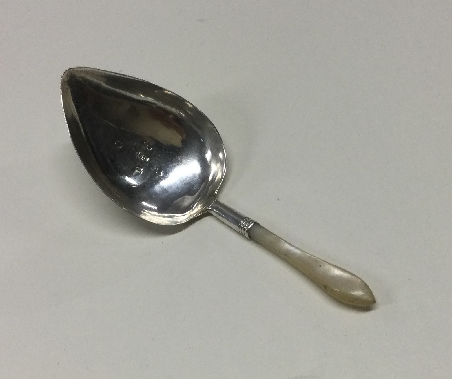 A George III silver and MOP caddy spoon. Birmingham 1806. By William Pugh. Approx. 6 grams. Est. £60 - £80.