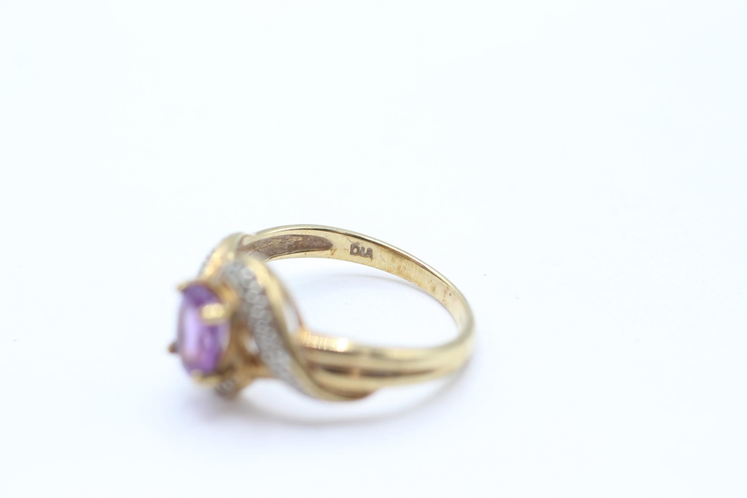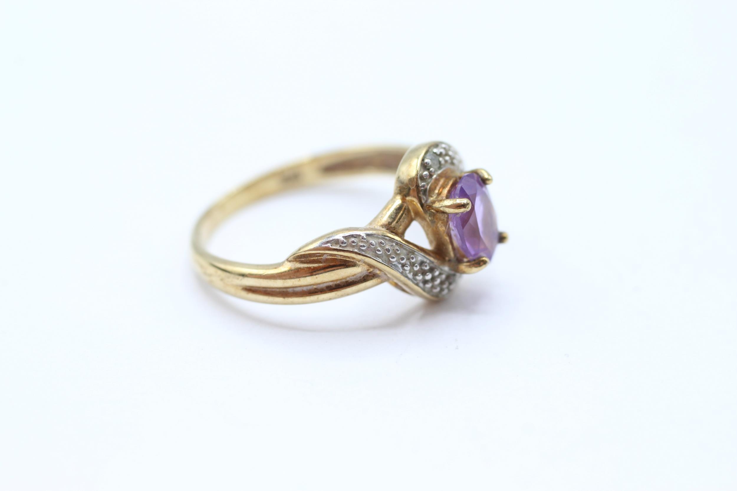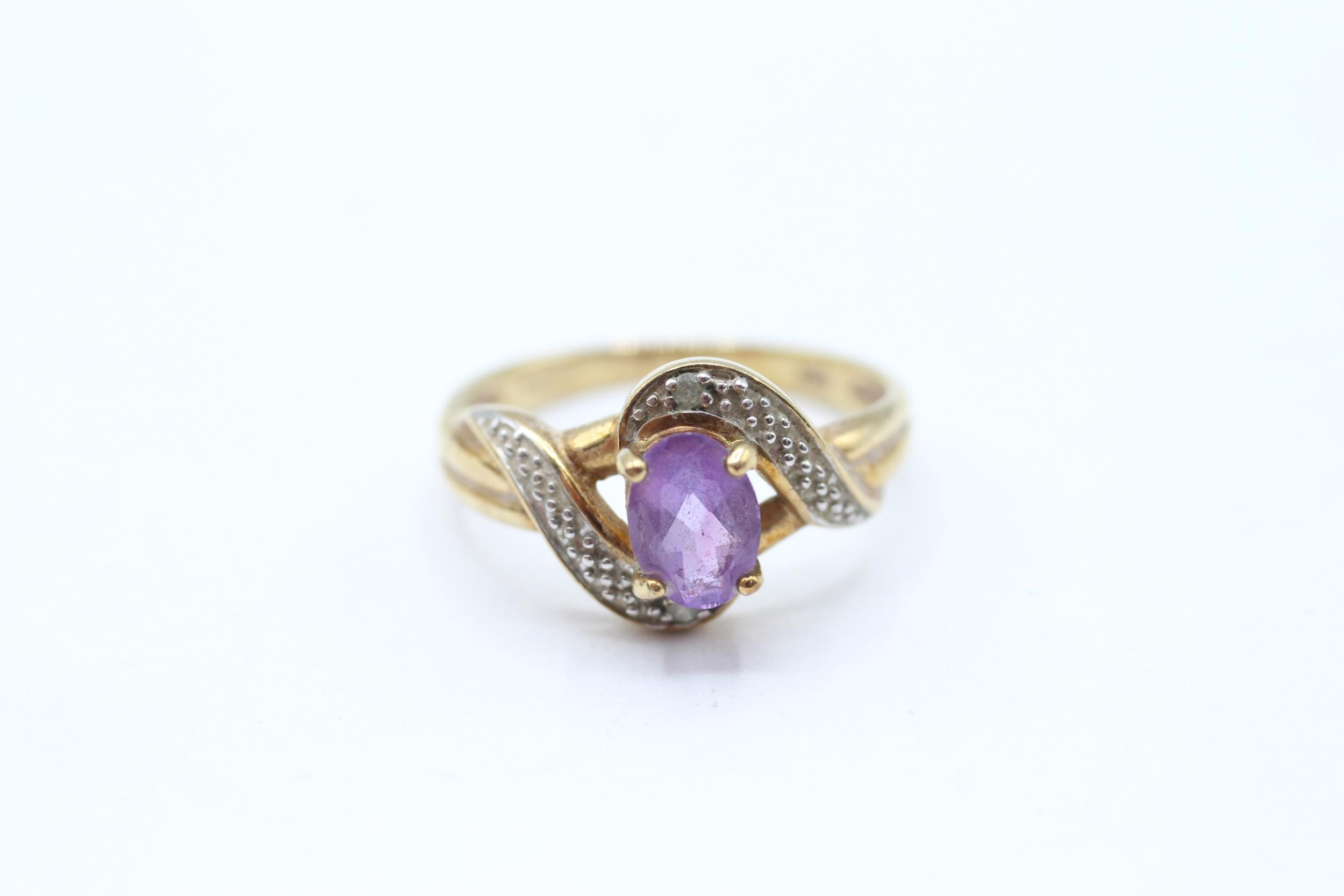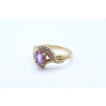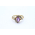 9ct gold amethyst single stone twist ring with diamond accent Size M 2.3 g