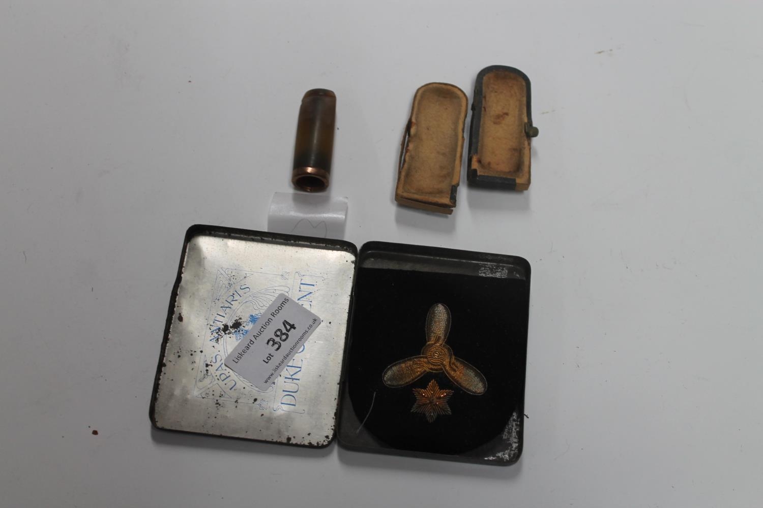 VINTAGE TIN , BADGE AND CASED CHEROOT HOLDER