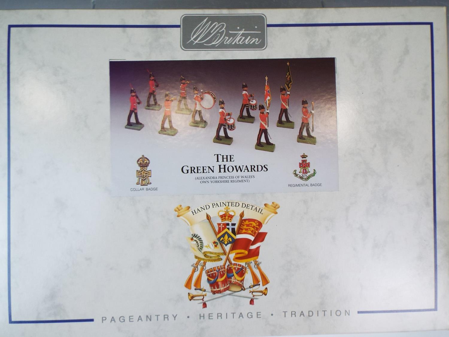 Boxed, Full set of Britains hand painted Soldiers of the Green Howards. Boxed and unused condition.