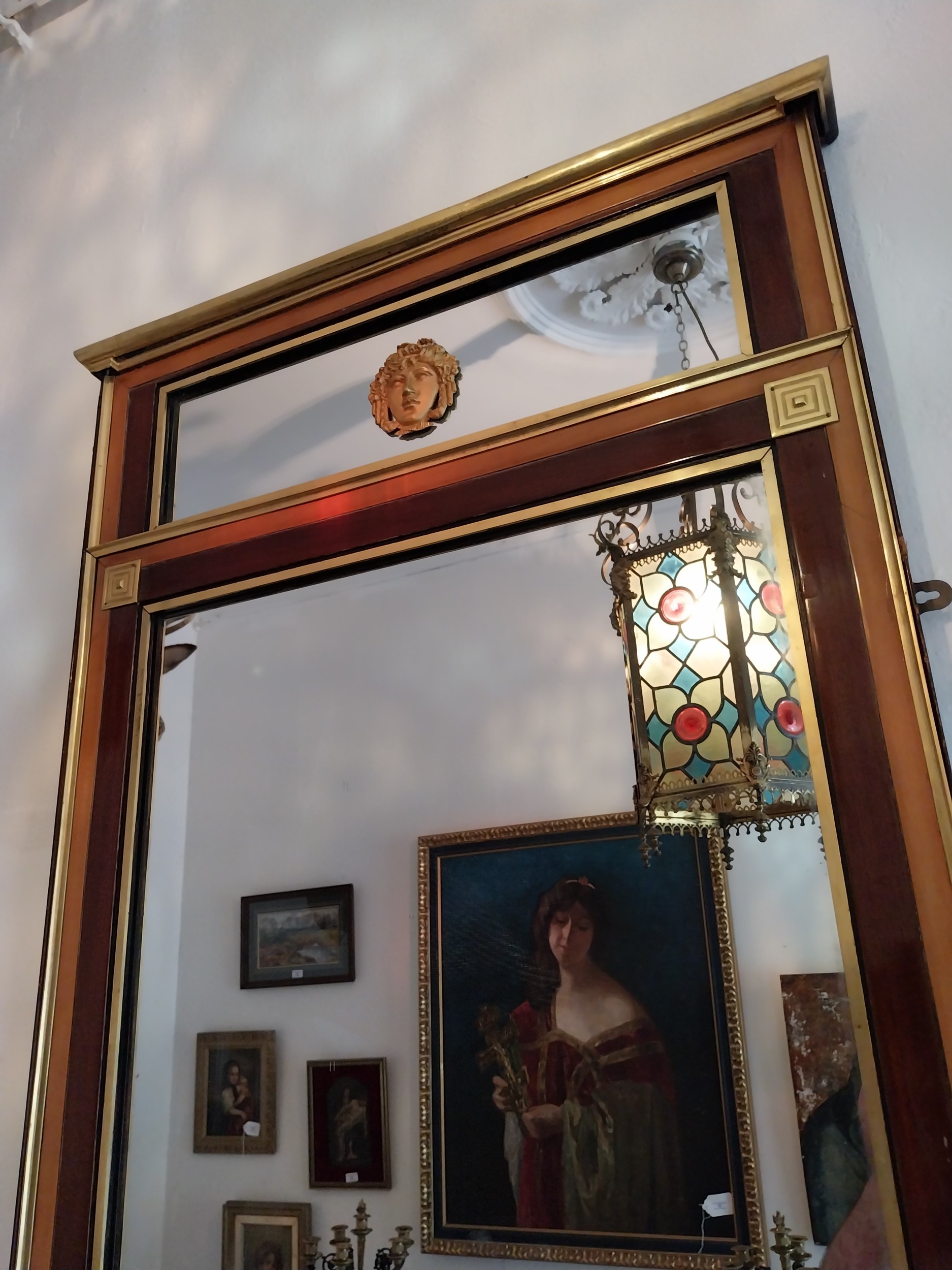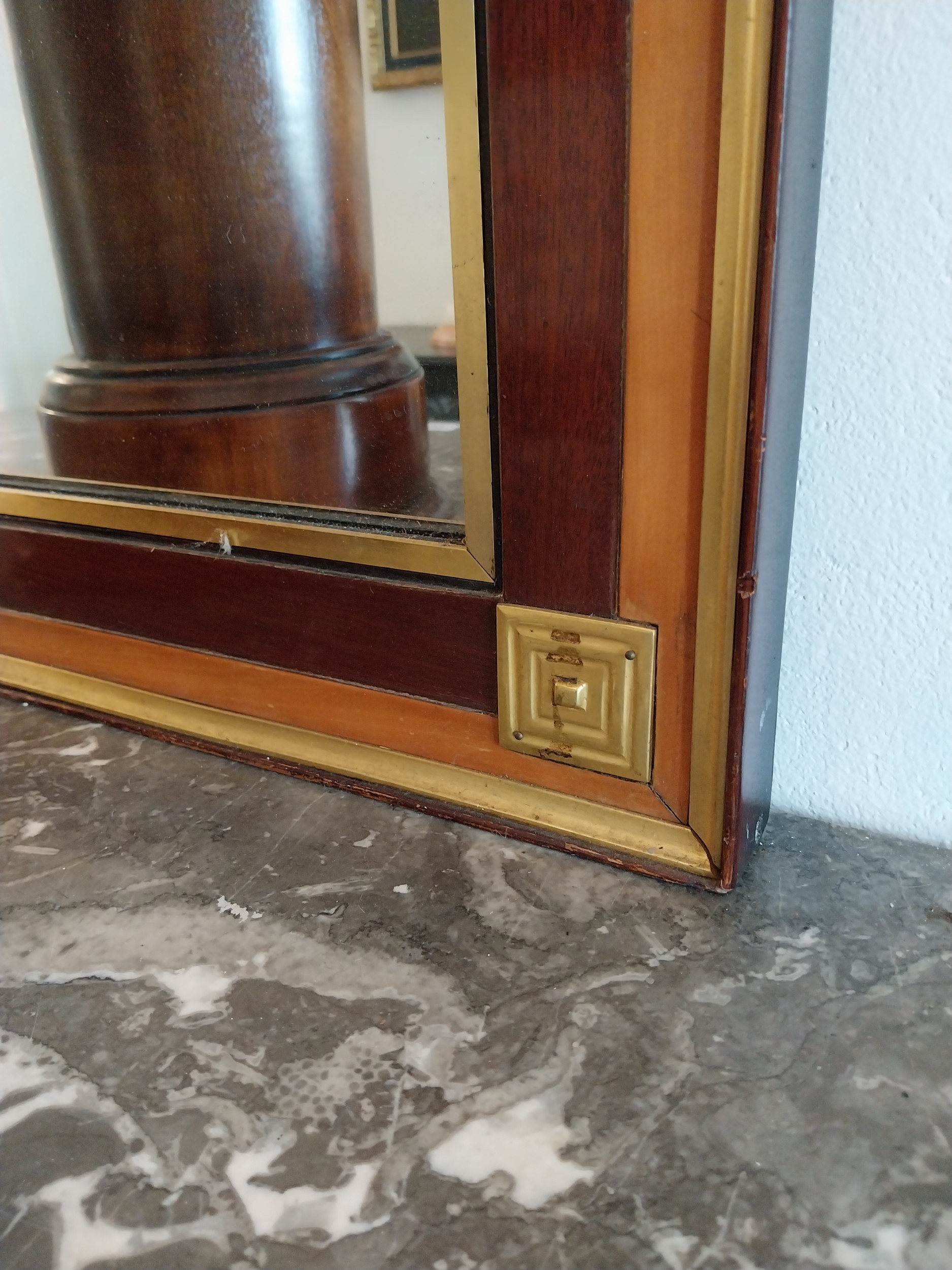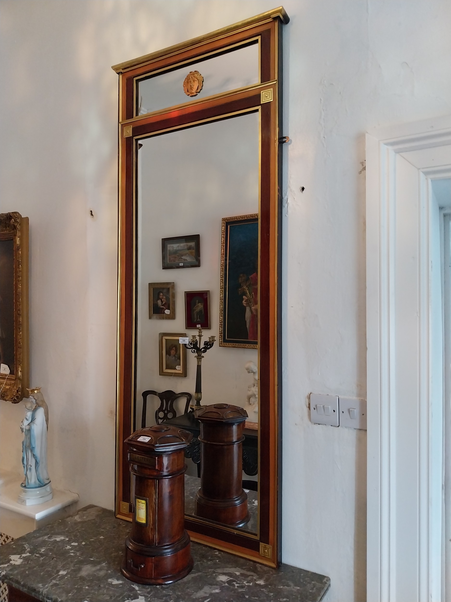 Good quality Regency brass and rosewood pier mirror. { 170cm H X 71cm W }.