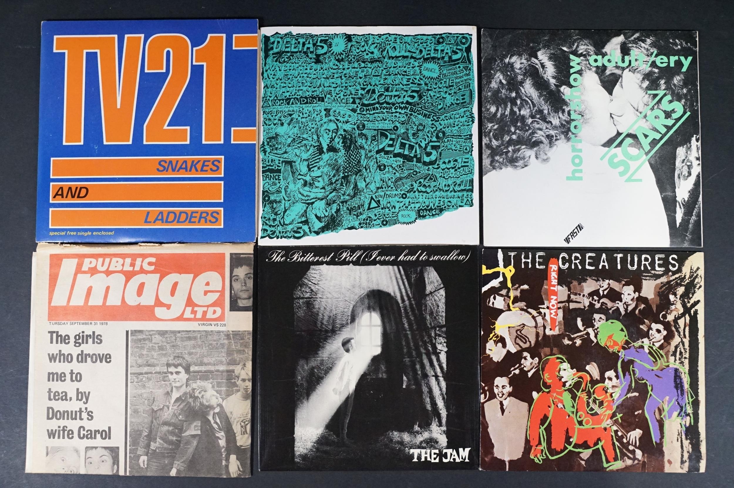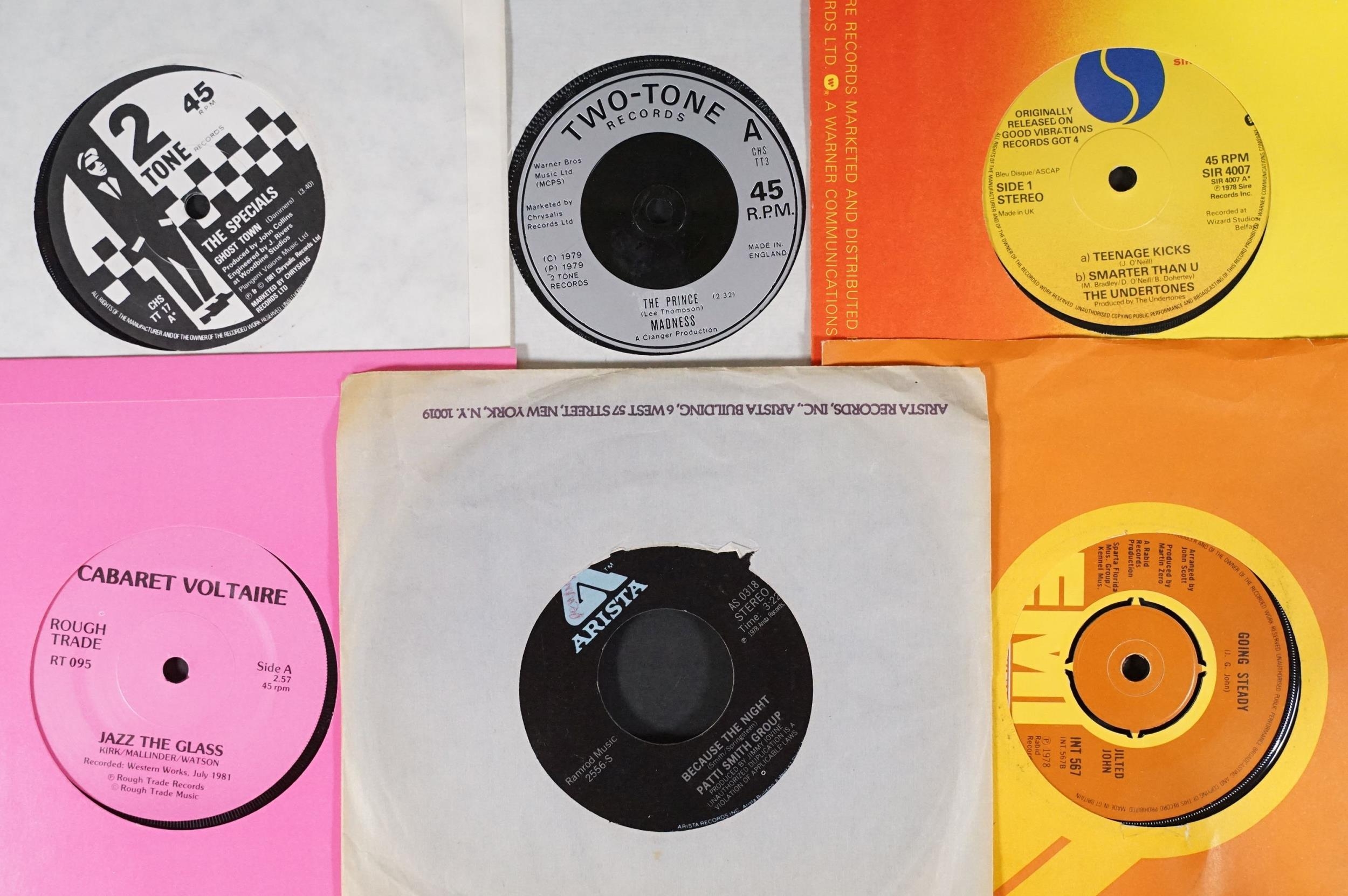 Vinyl - 35 Rock, Punk, New Wave & Pop 7" singles to include X-Ray Spex, Sex Pistols, Joy Division, The Fall, Gang Of Four, The Undertones, The Mekons, Public Image Ltd (newspaper sleeve), The Scars, Delta 5, TV21, The Jam, Madness (debut on 2 Tone), The Specials, The Creatures x 2, The Normal, Patti Smith, Cabaret Voltaire and more. At least Vg+ overall
