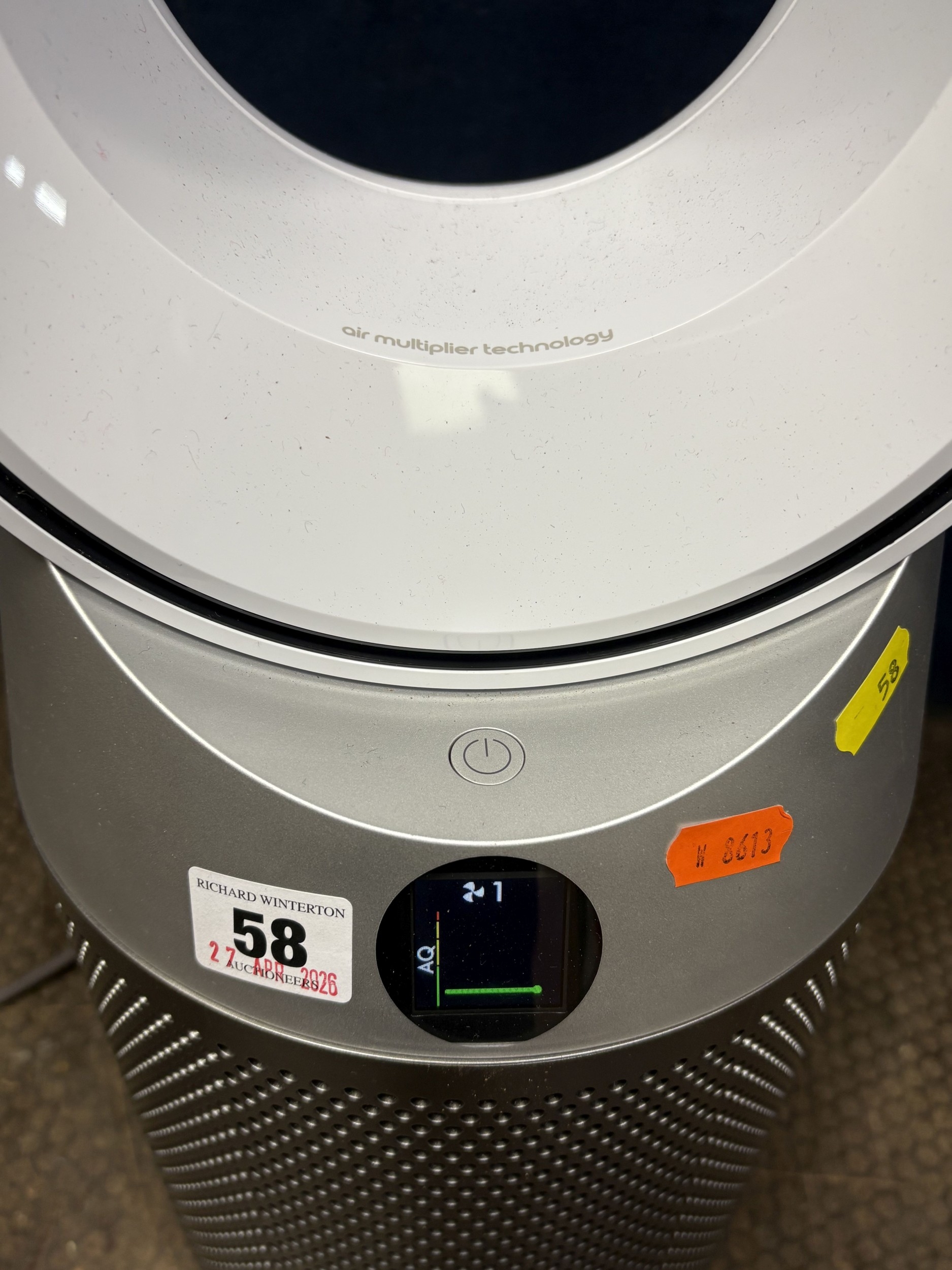 A DYSON HM1-10 AIR PURIFIER / COOLING FAN, condition report: PAT pass and working, with remote, but not working, which is likely due to a dead battery