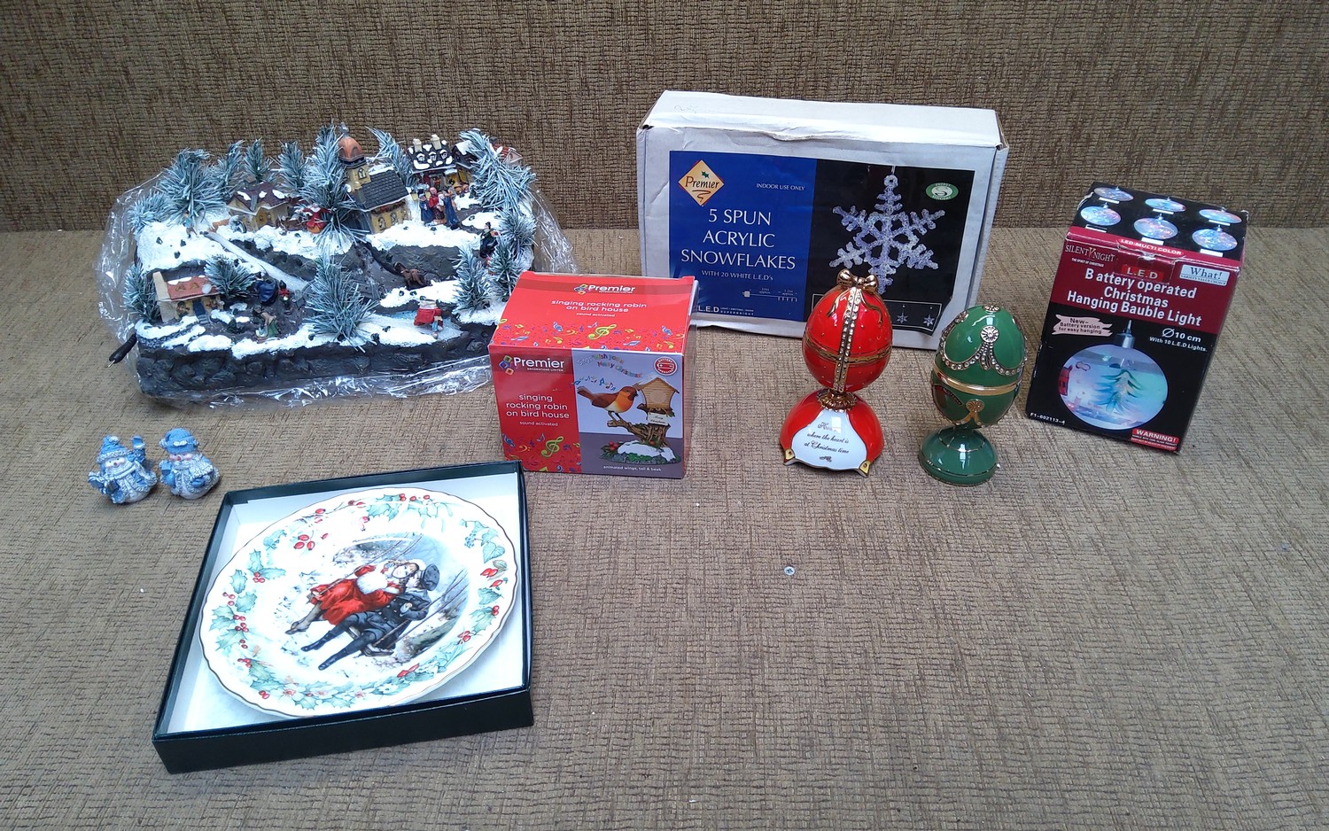 Lot of Christmas decorations.