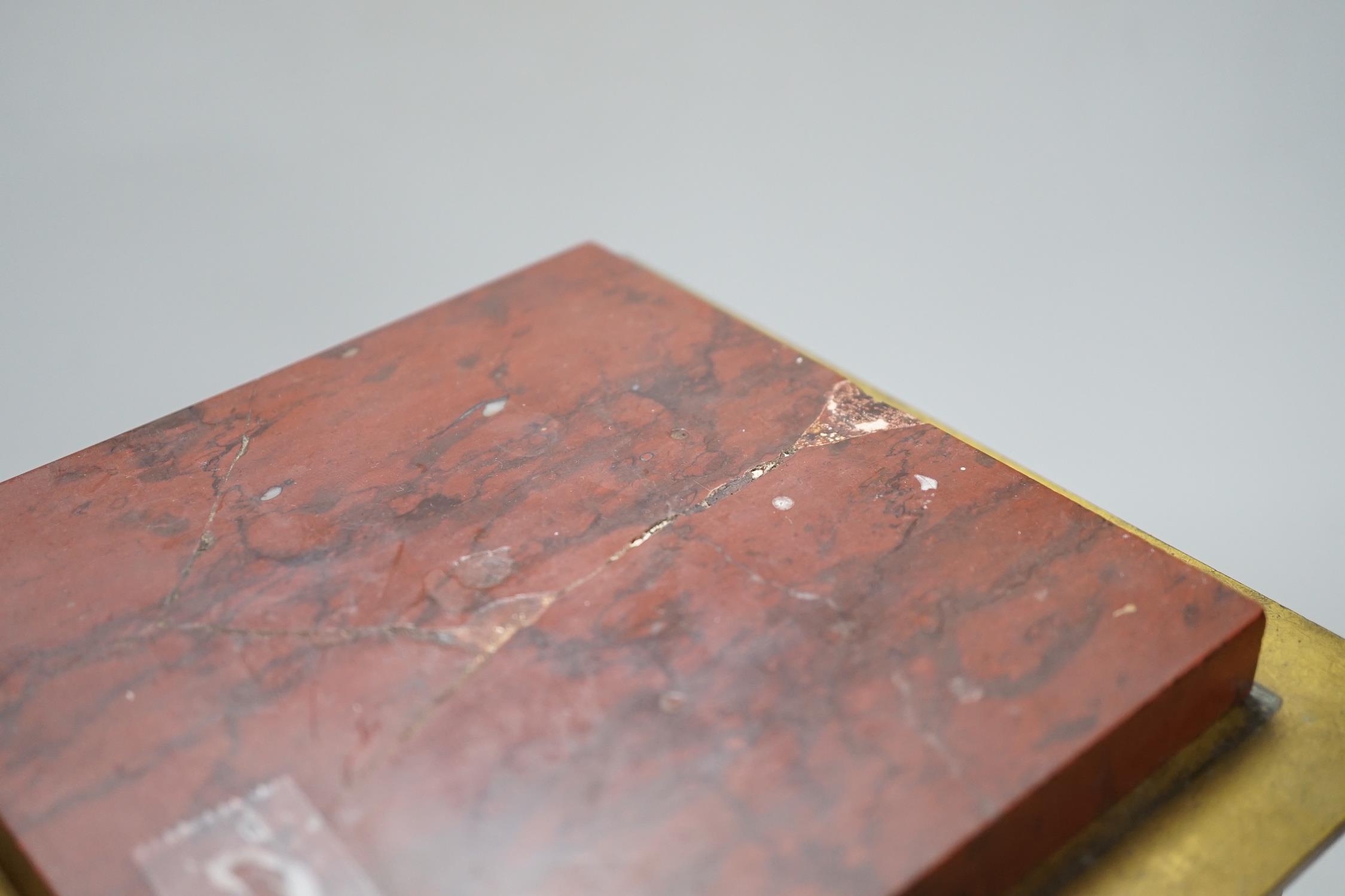 A French gilt metal mounted rouge marble mantel clock, first half 19th century, engine turned dial, 27cm high