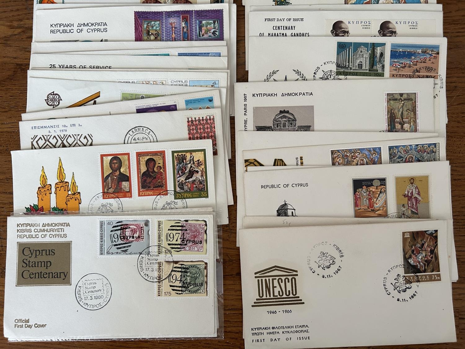 Collection of 50 Vintage Cyprus First Day Covers (FDCs)