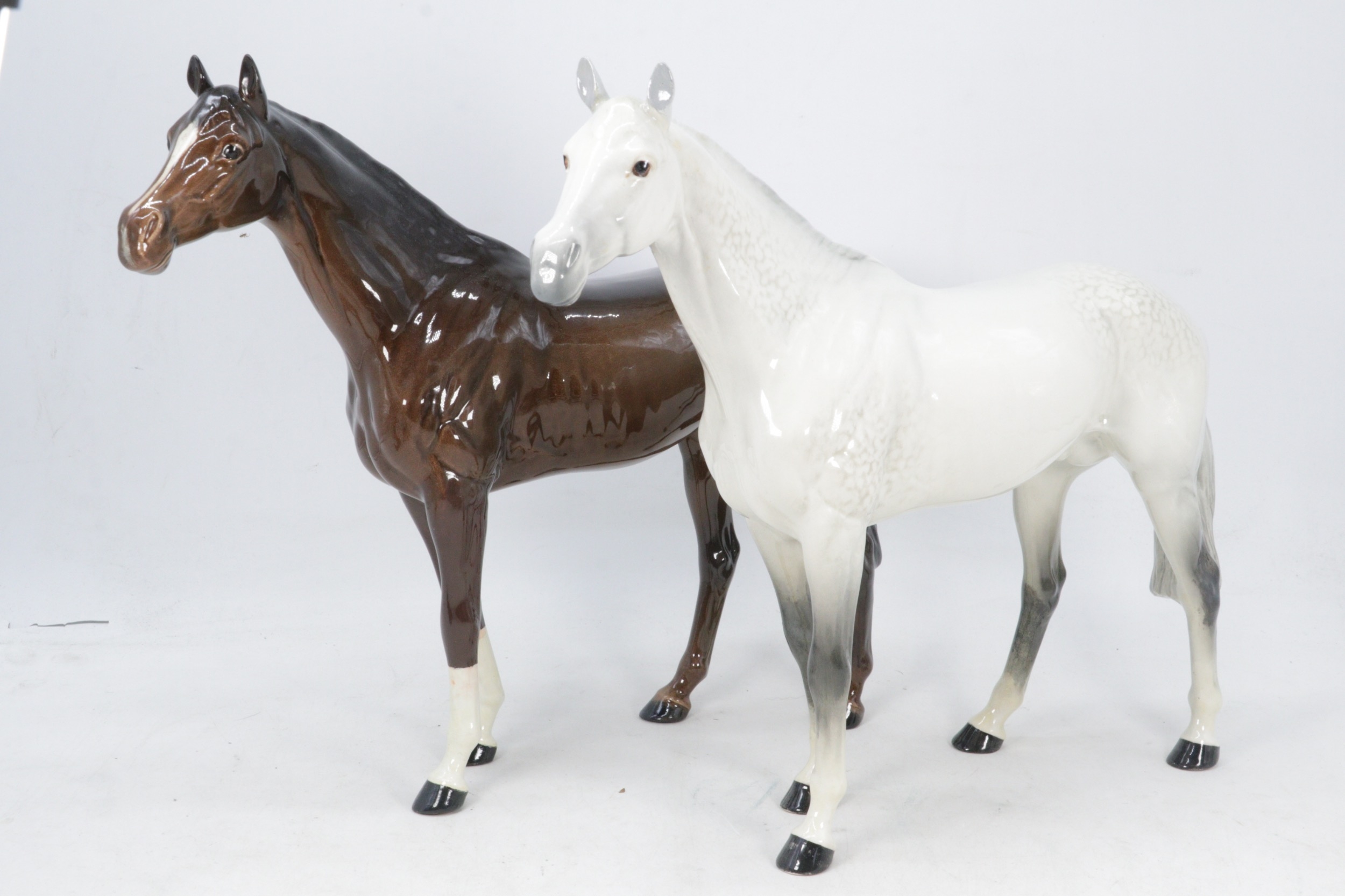 A Beswick Dapple Grey horse together with a brown horse