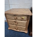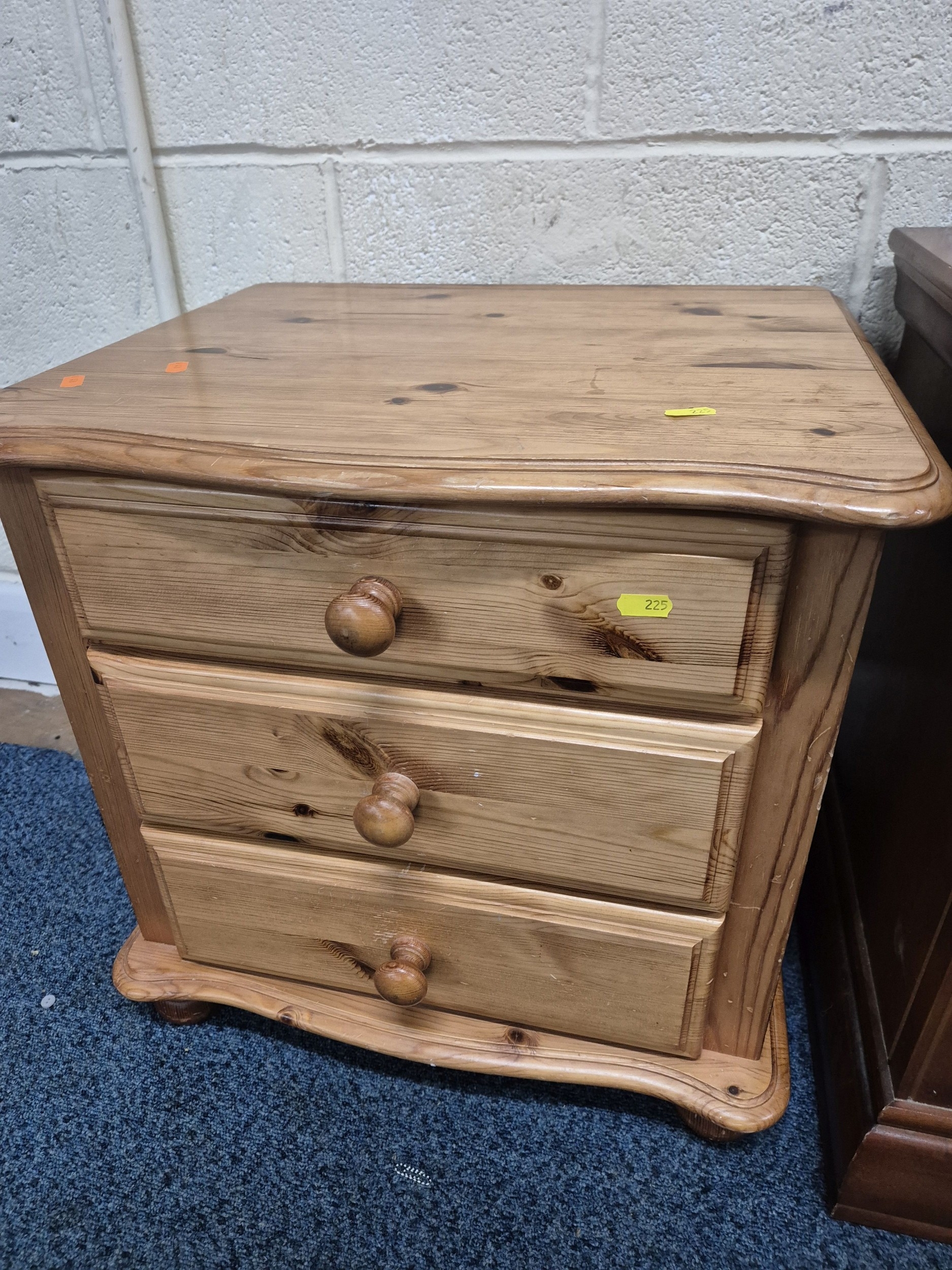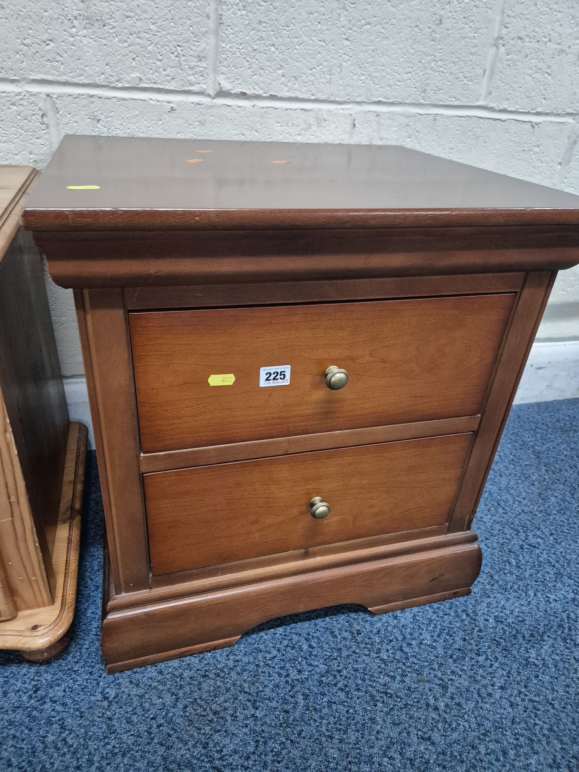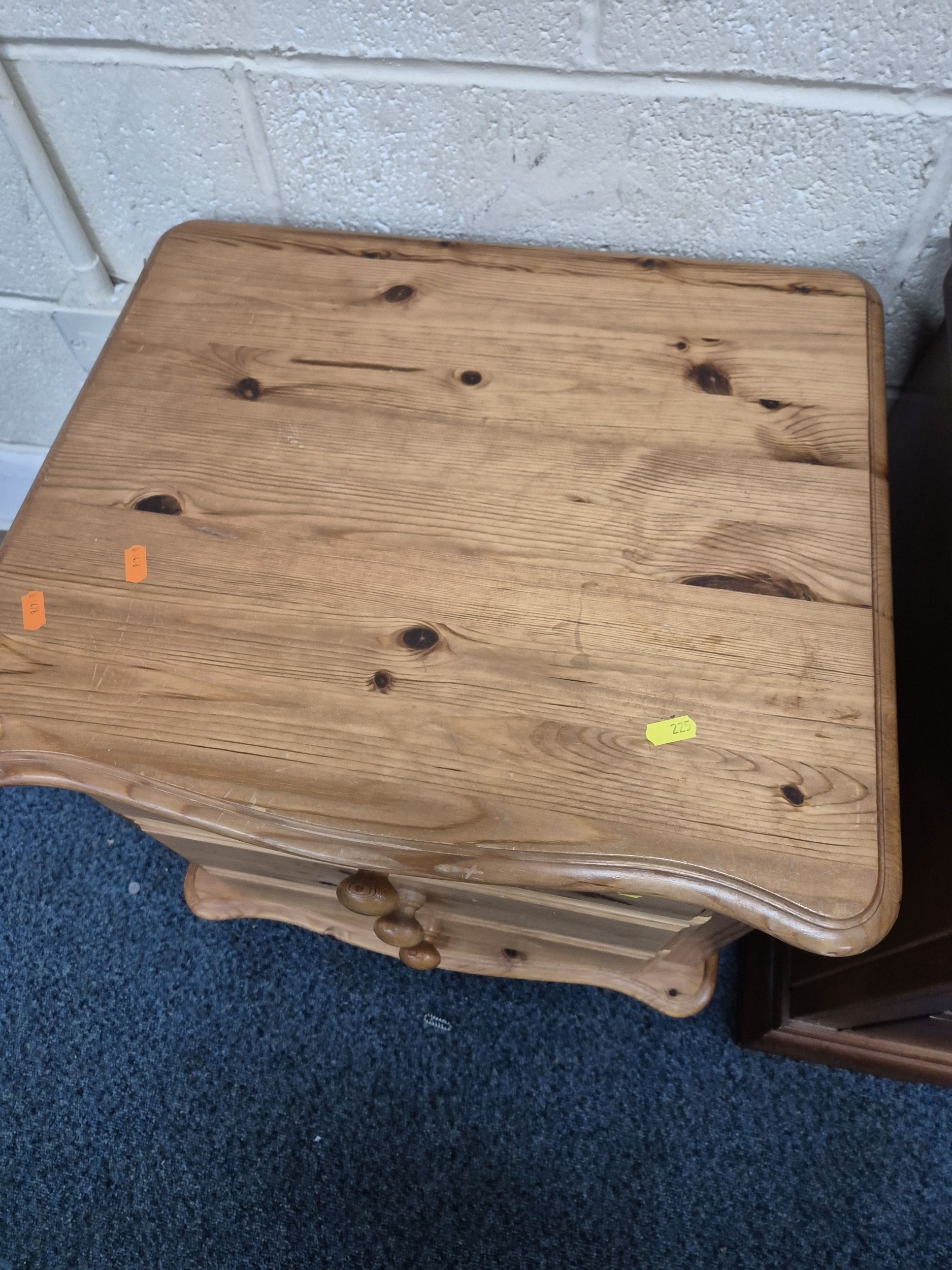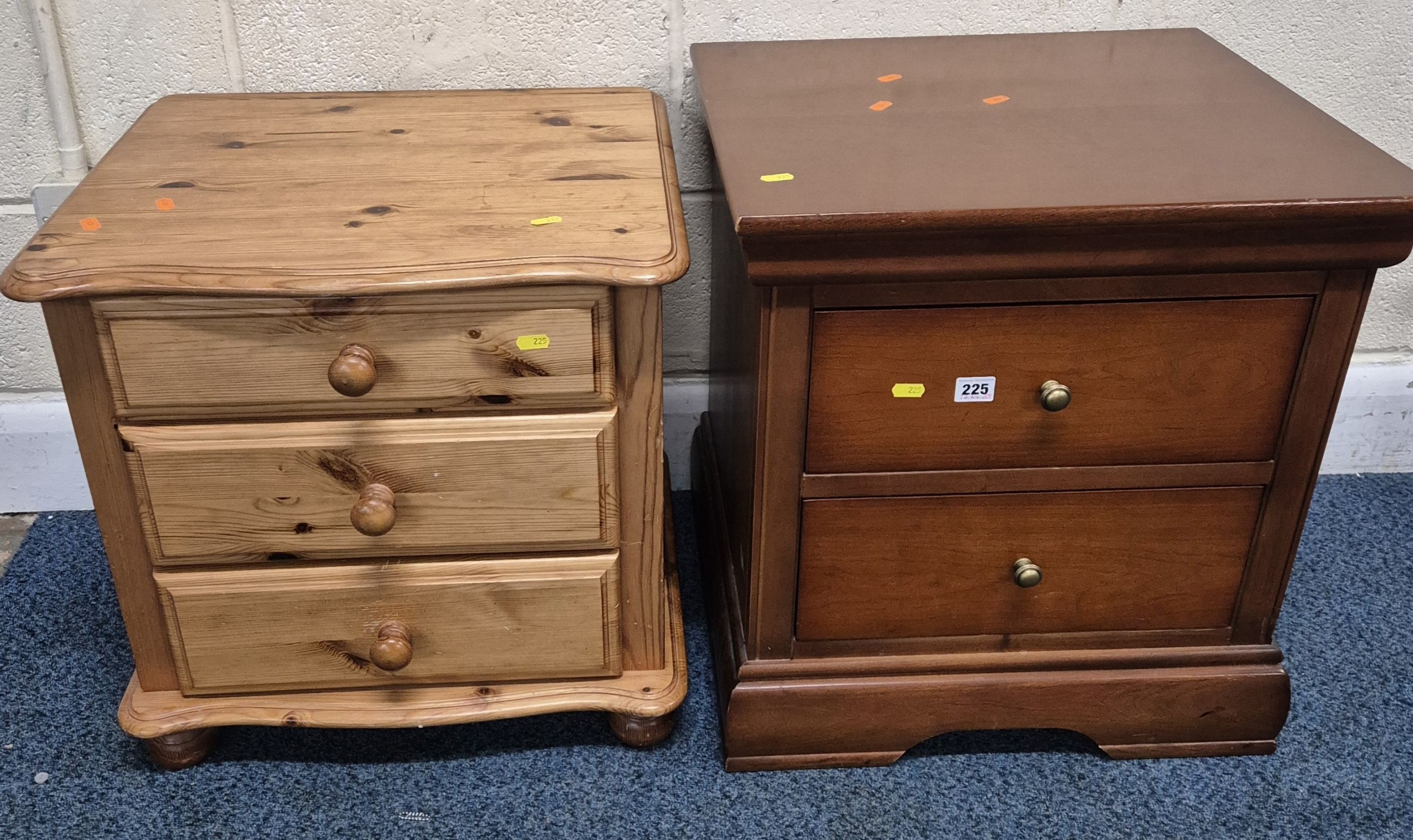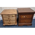 A MODERN HARDWOOD TWO-DRAWER BEDSIDE CHEST, width 53cm x depth 47cm x height 57cm, along with a pine three drawer bedside chest, condition report: both with general signs of wear and usage (2)