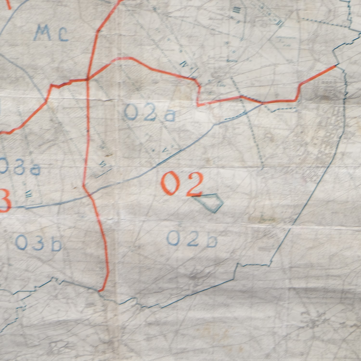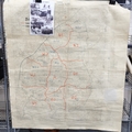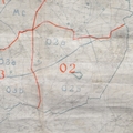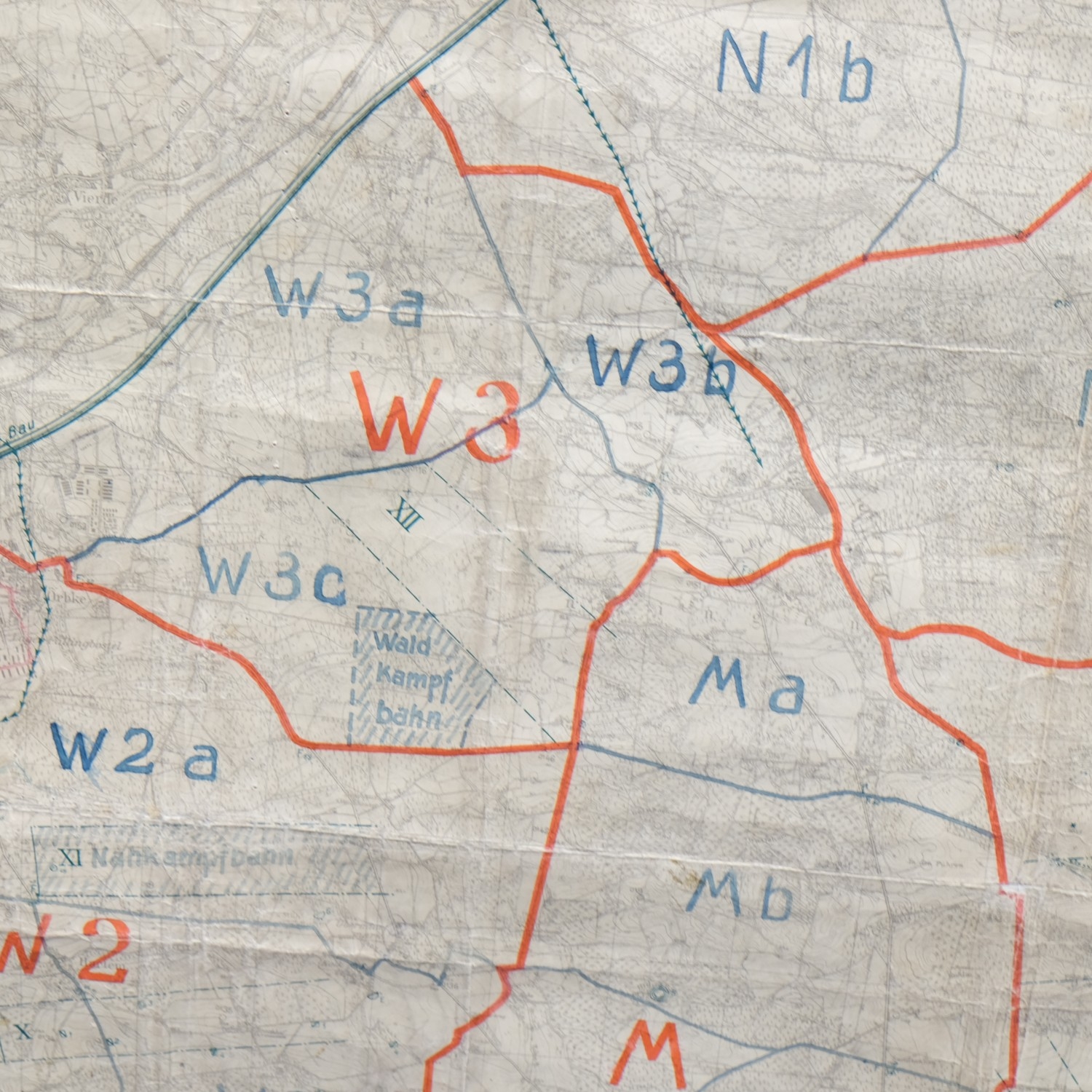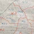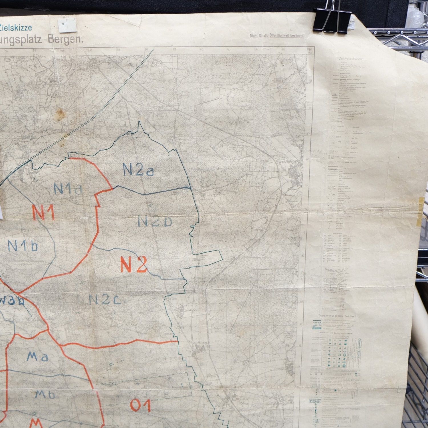 German WWI-II paper map, subdivided into sectors, with a photograph of collated images relating to the Einsatzgruppen Death Squad