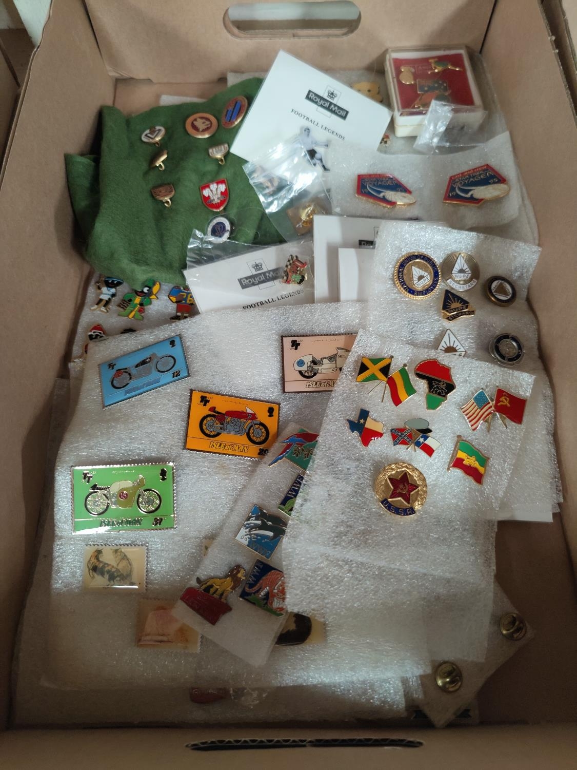 A collction of enamel badges, motorbike stamps etc
