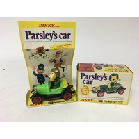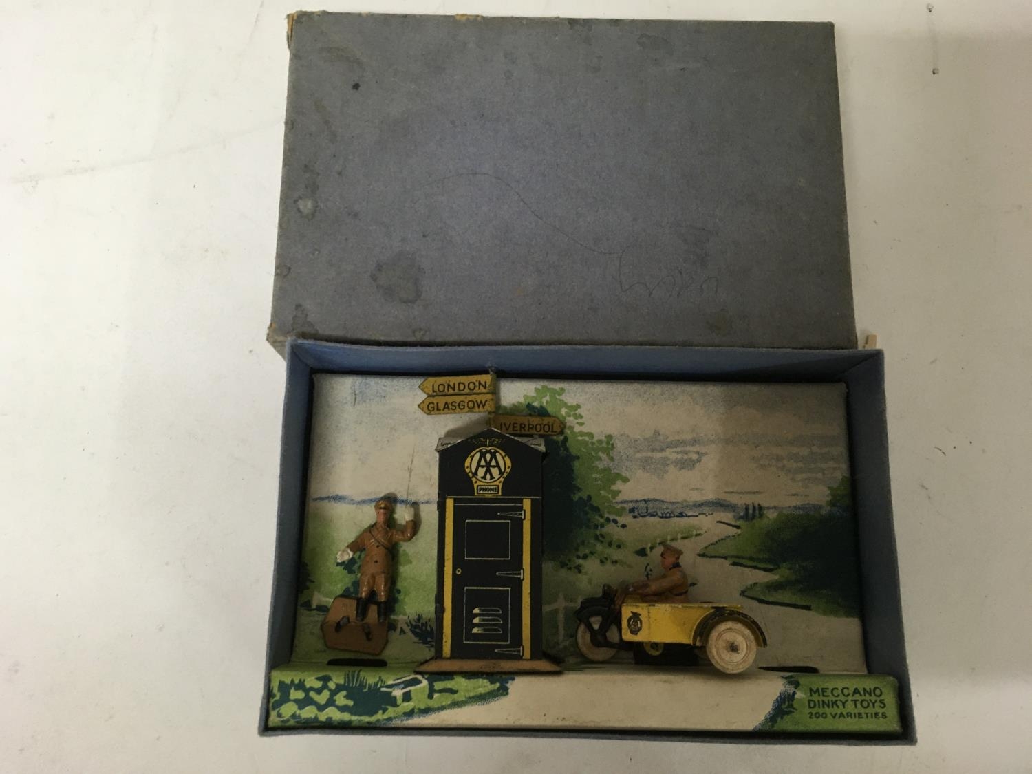 Dinky toys, #44 AA box, Motor cycle patrol and guides, one figure missing