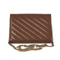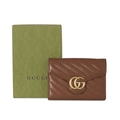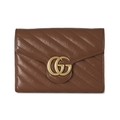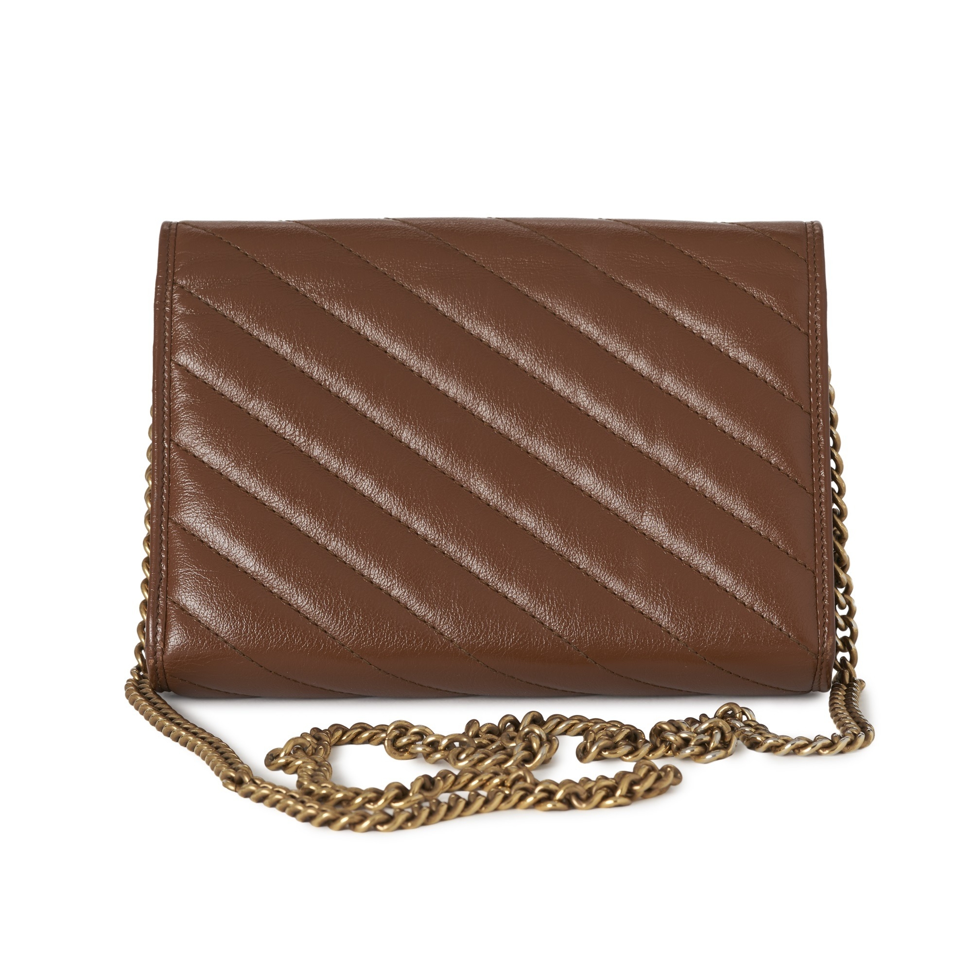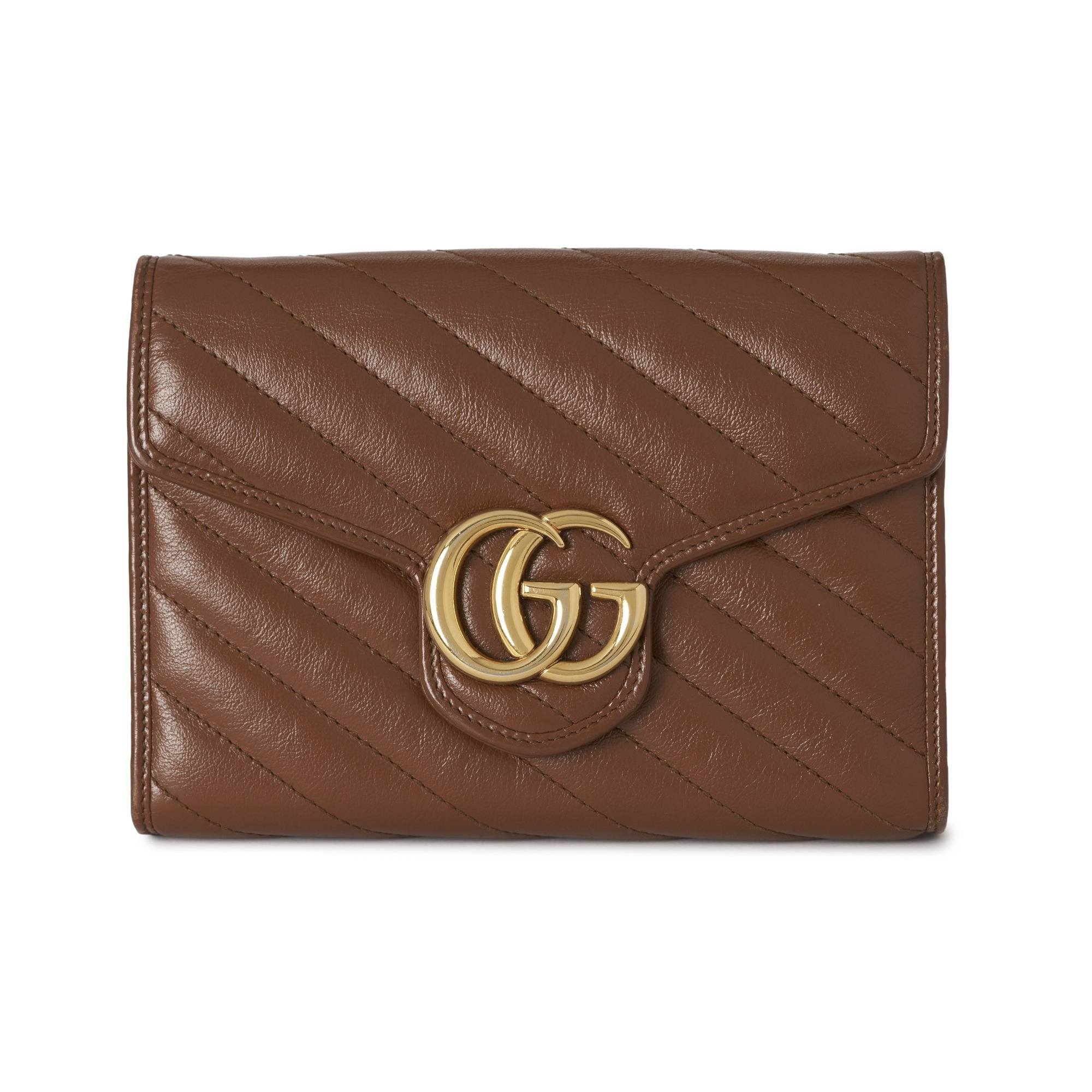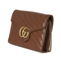 Gucci, a brown leather Marmont chain clutch, designed with a diagonal quilted leather exterior, with gold-tone hardware, flap closure with double G front plaque fastener, detachable chain-link crossbody strap, opening to multiple interior slip pockets and compartments, measuring 4 by 14 by 20cm, with maker's dust bag, box, receipt and care guide