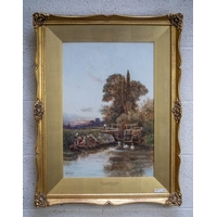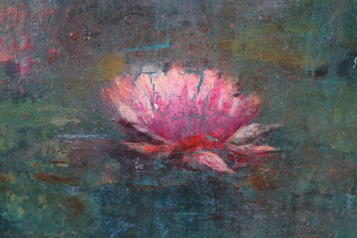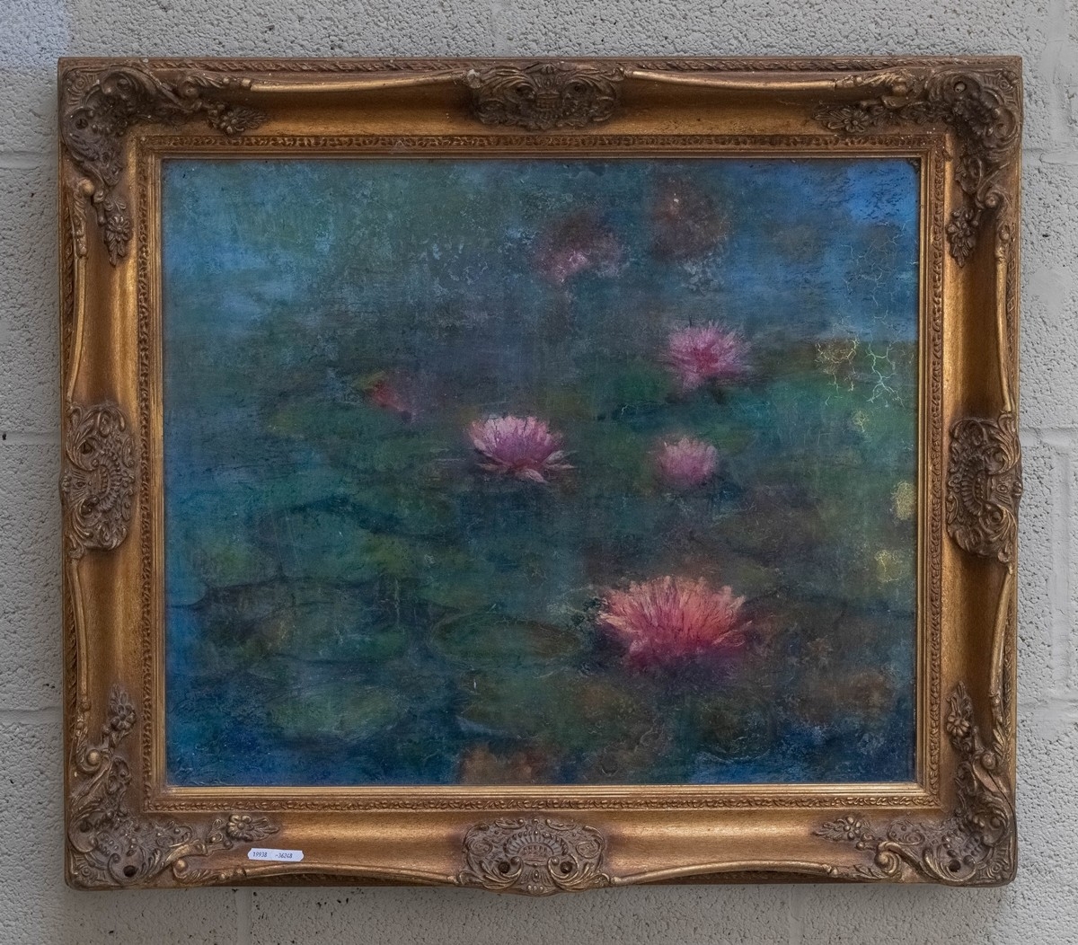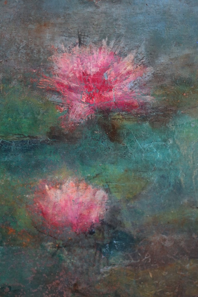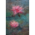 Oil on board of waterlily flowers in gilt frame - Approx IS 60cm x 50cm