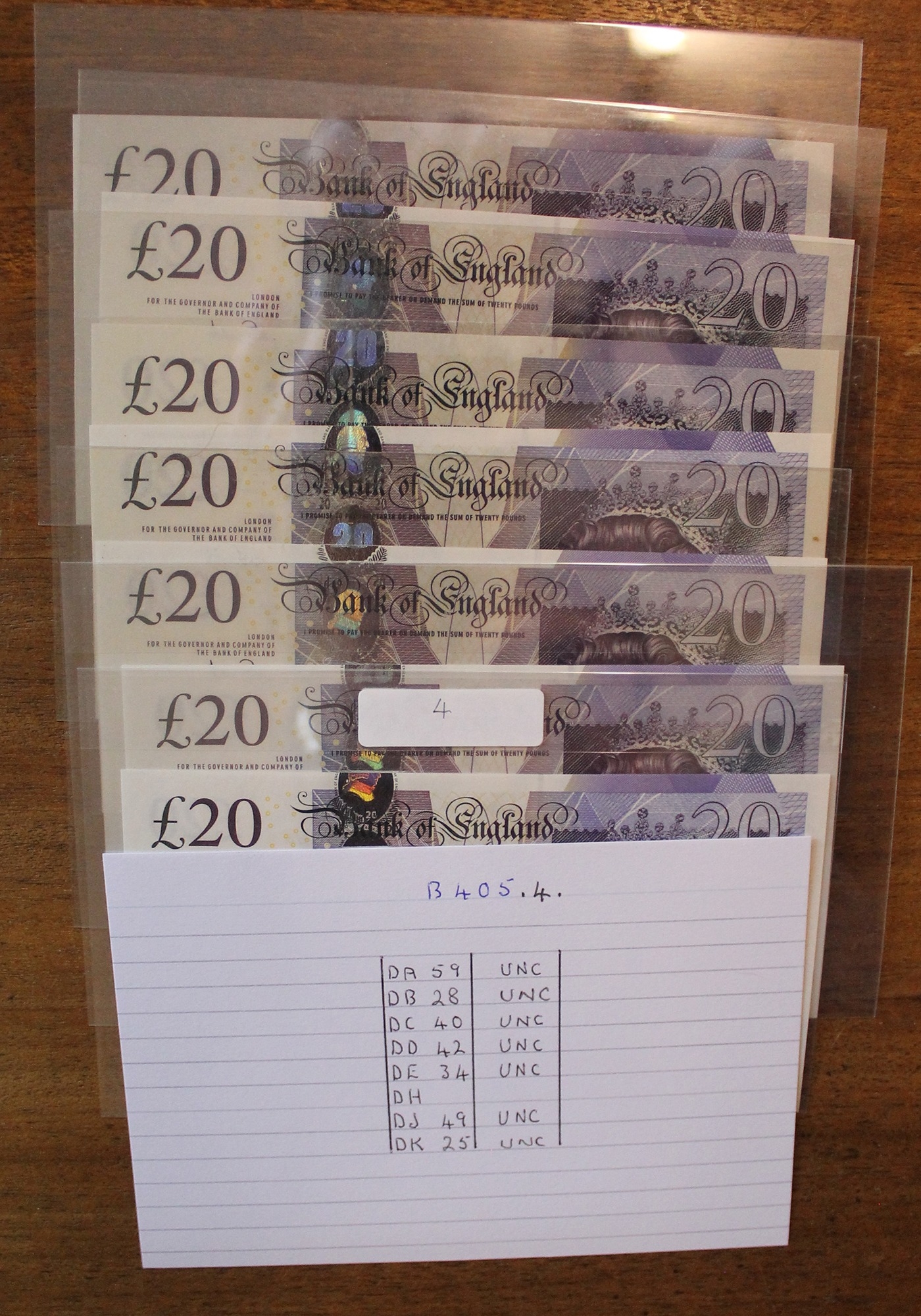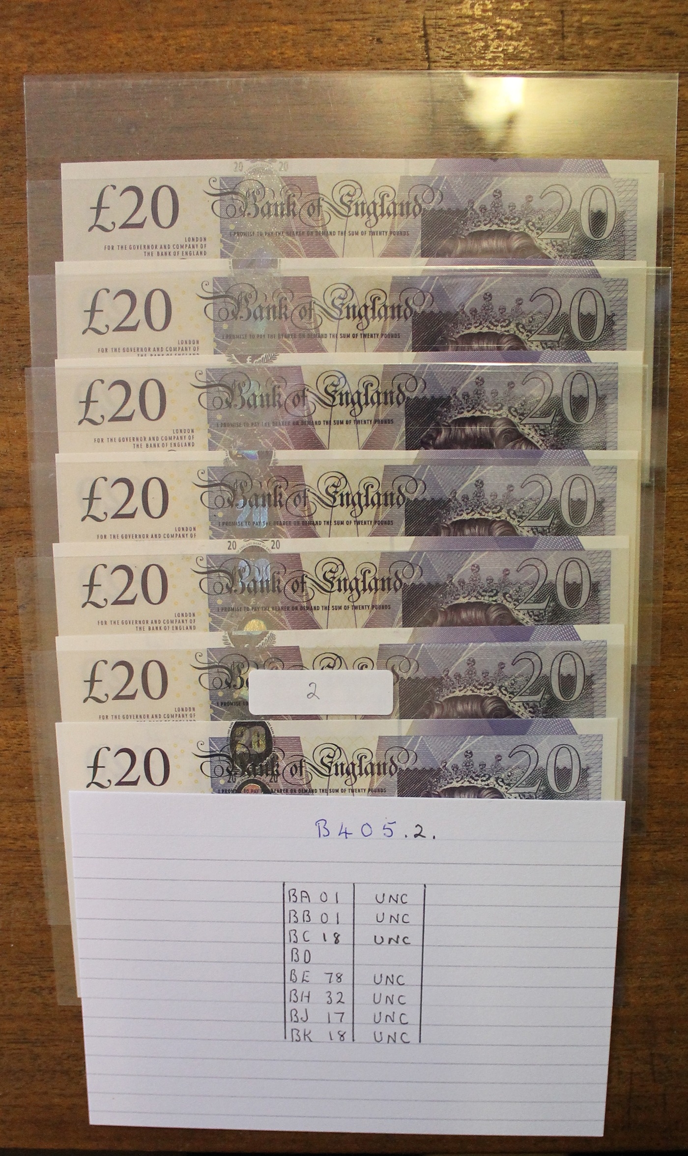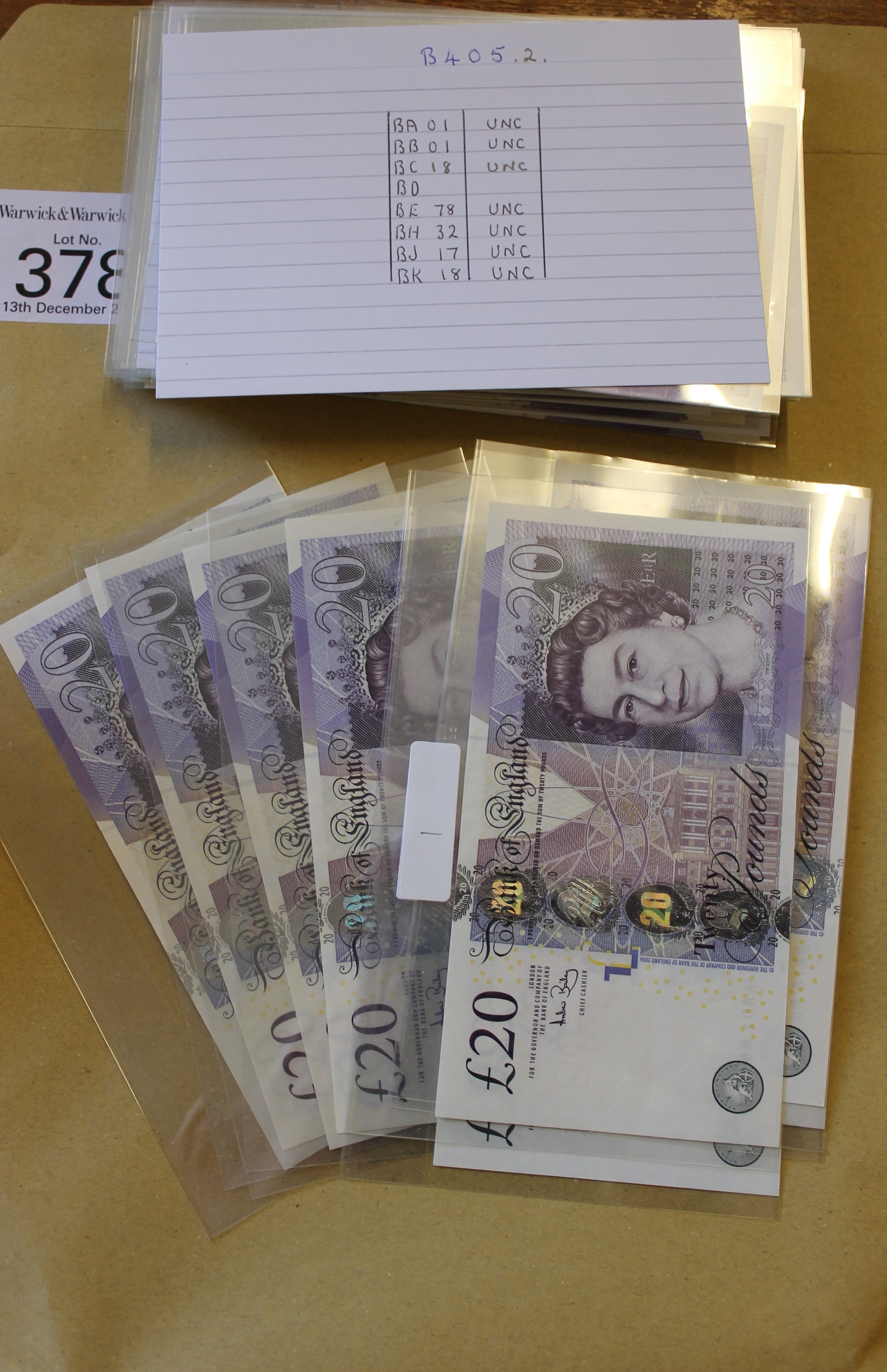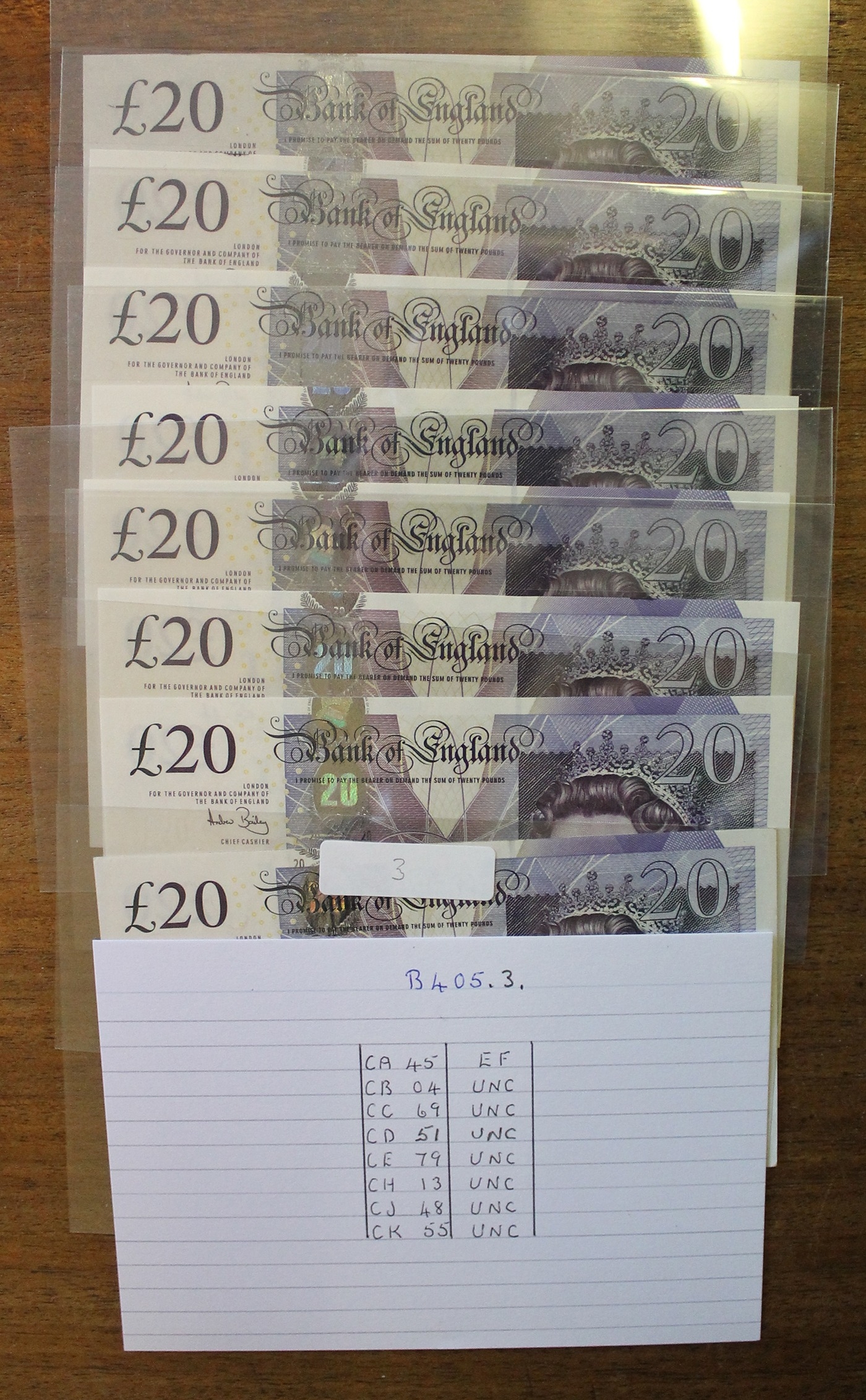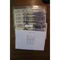 A.J. Bailey. £20 Adam Smith collection, generally uncirculated with AA01 first run, AA16 first series, column sort AL01, AL21, AL40 extremely fine, LL35 replacement etc. Qty 46 (Duggleby B405) (R)