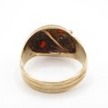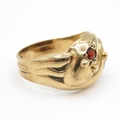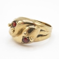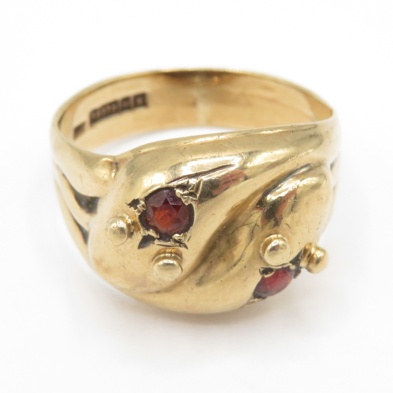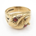 Chunky vintage 9ct gold garnet set double snake ring (5.6g) size U