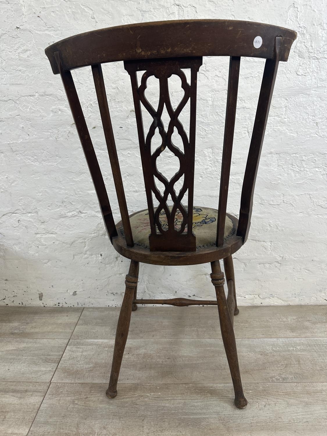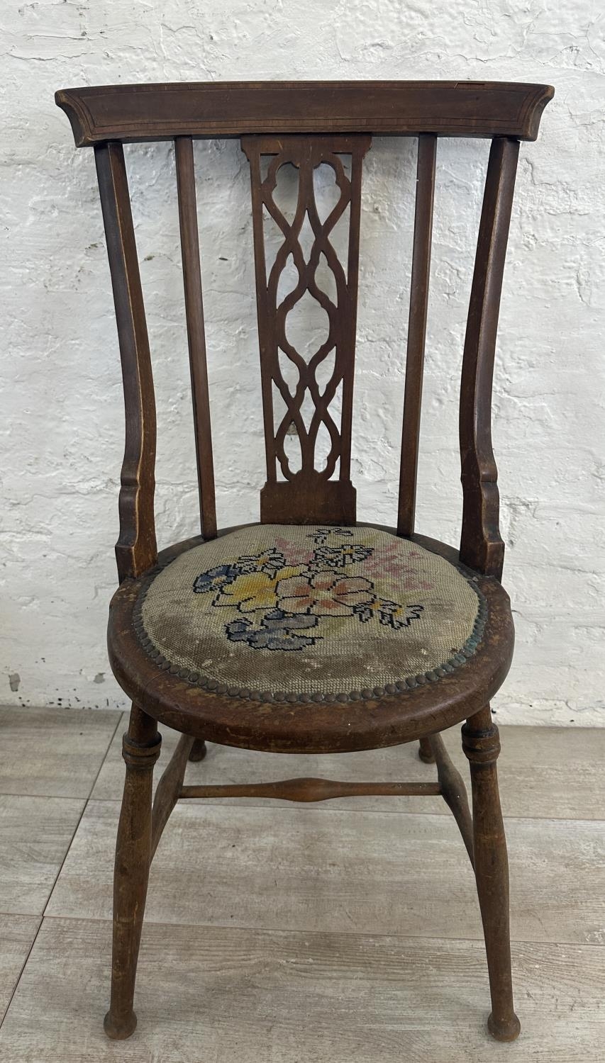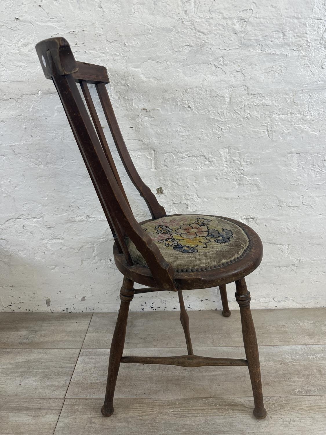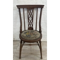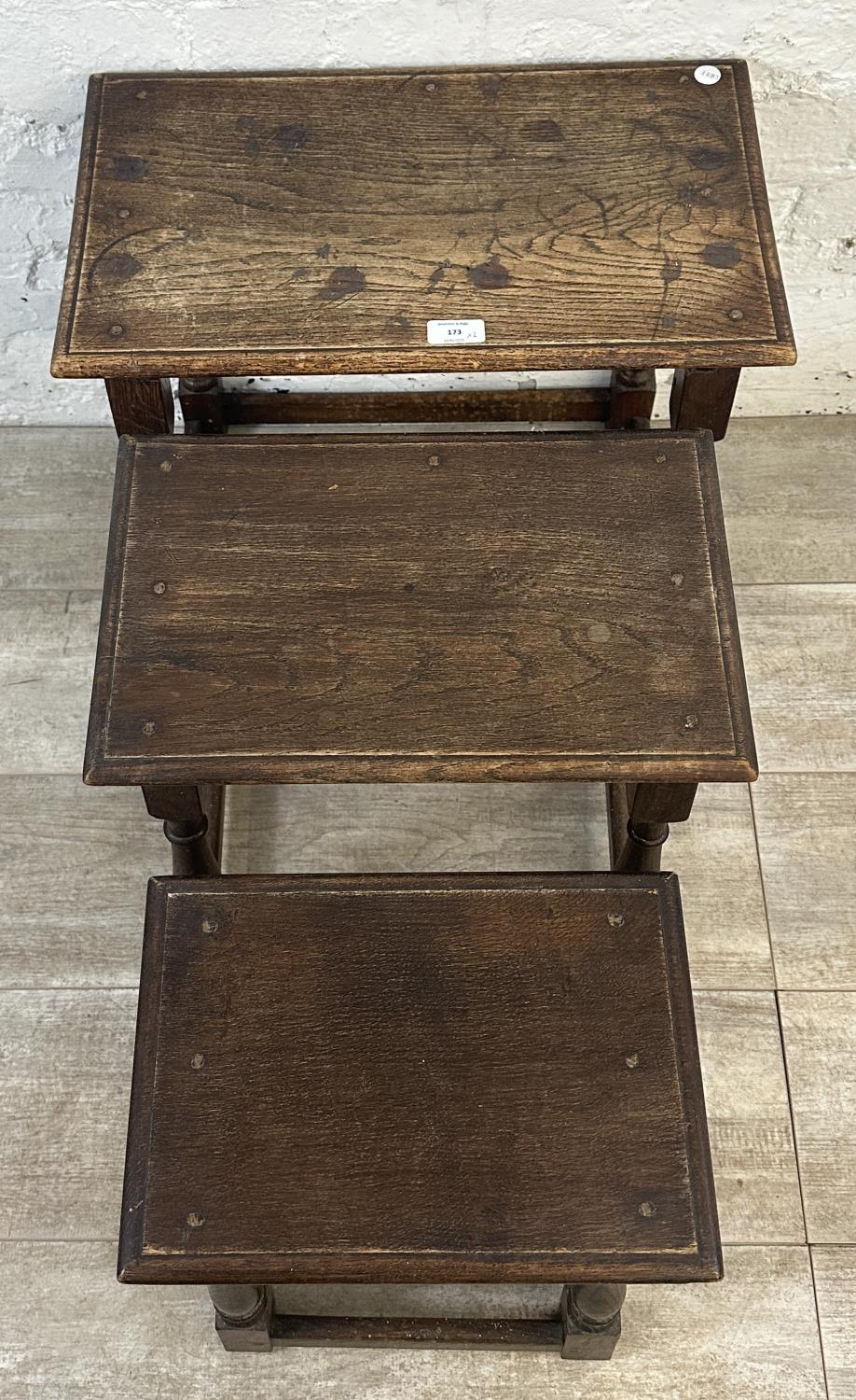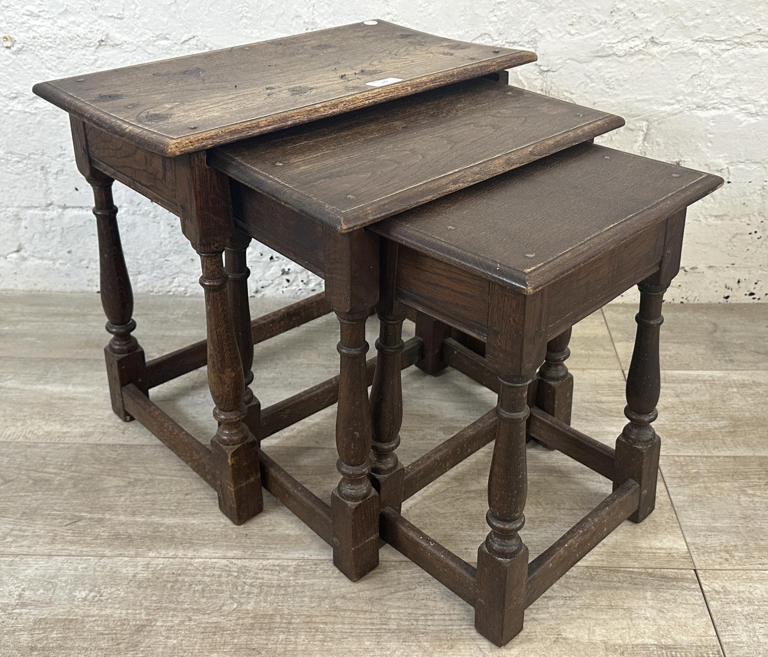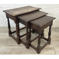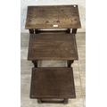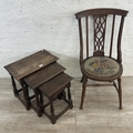 Two pieces of furniture, one 17th century style oak nest of tables and one Edwardian inlaid mahogany and tapestry upholstered penny seat occasional chair