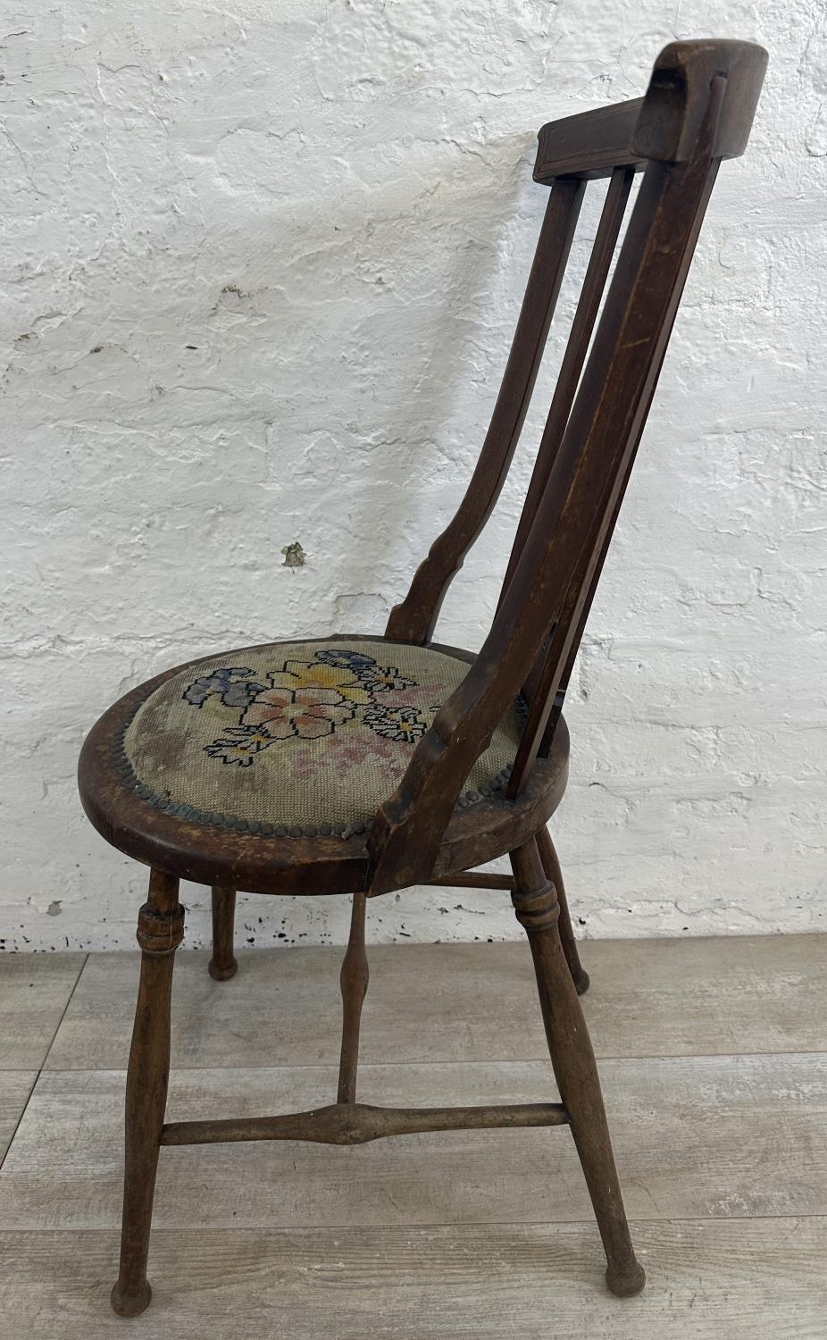 Both items show extensive signs of wear and tear, the chair is in need of reupholstering and has signs of previous woodworm